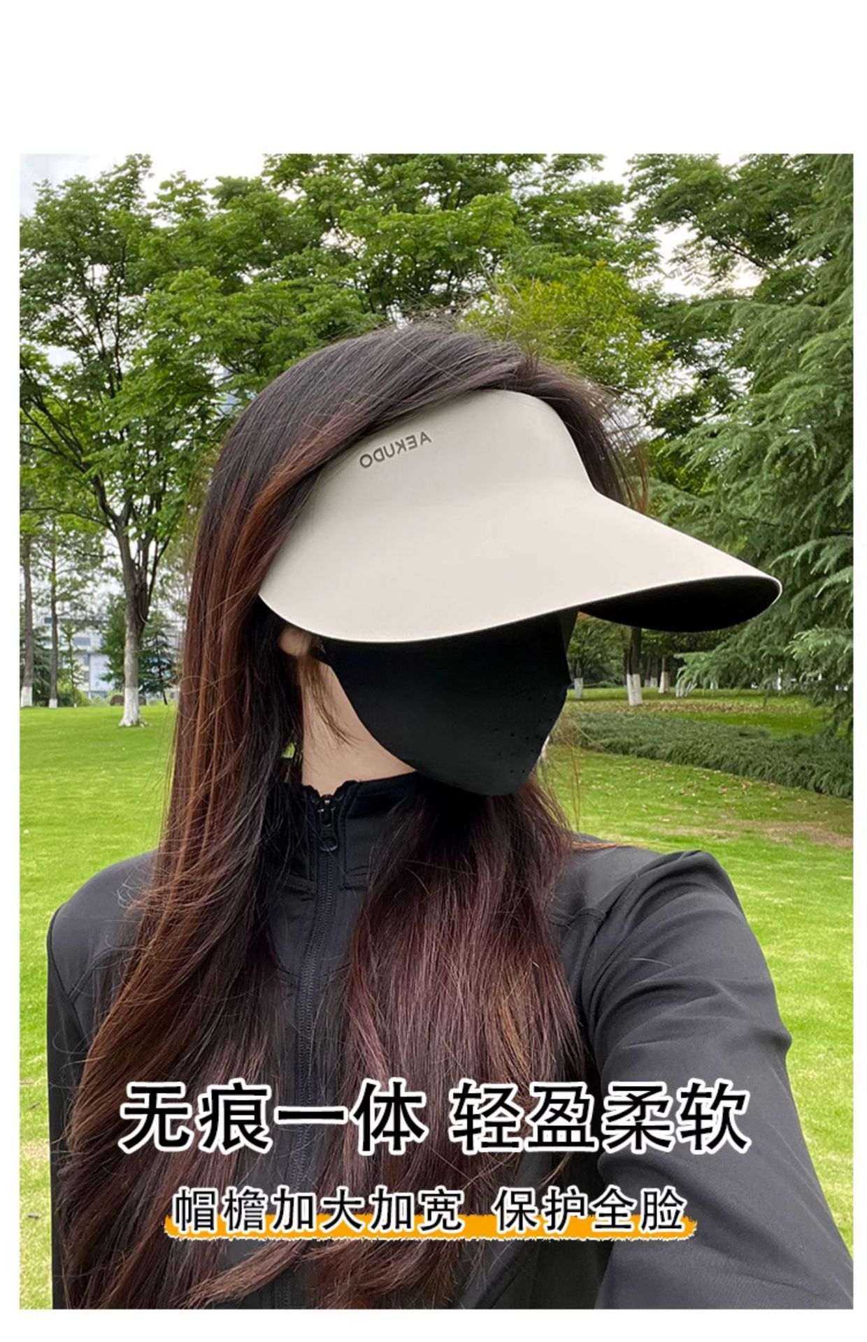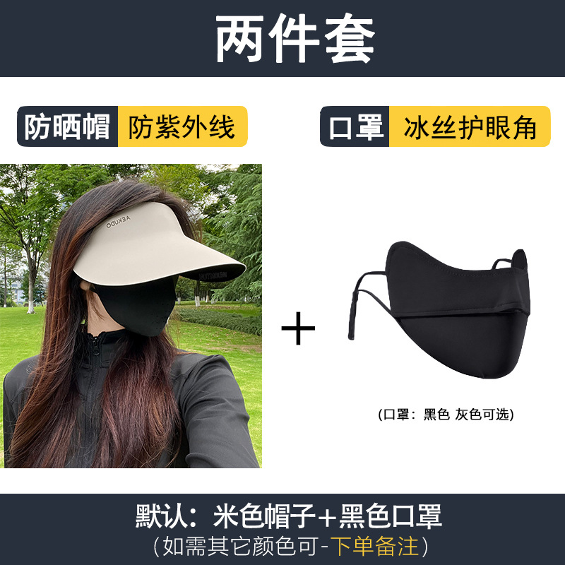 • 마스크가있는 선 스크린 모자 모델 (아이보리)