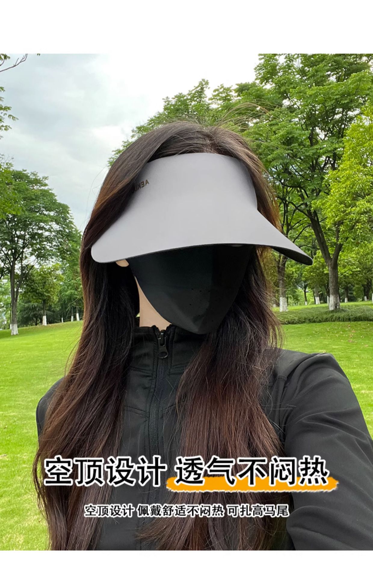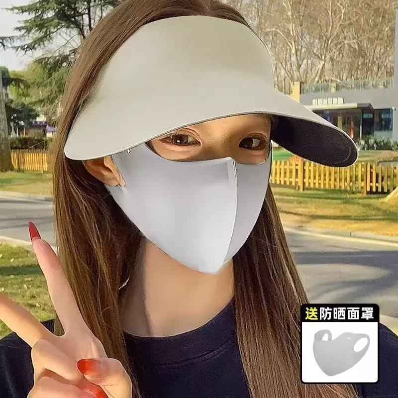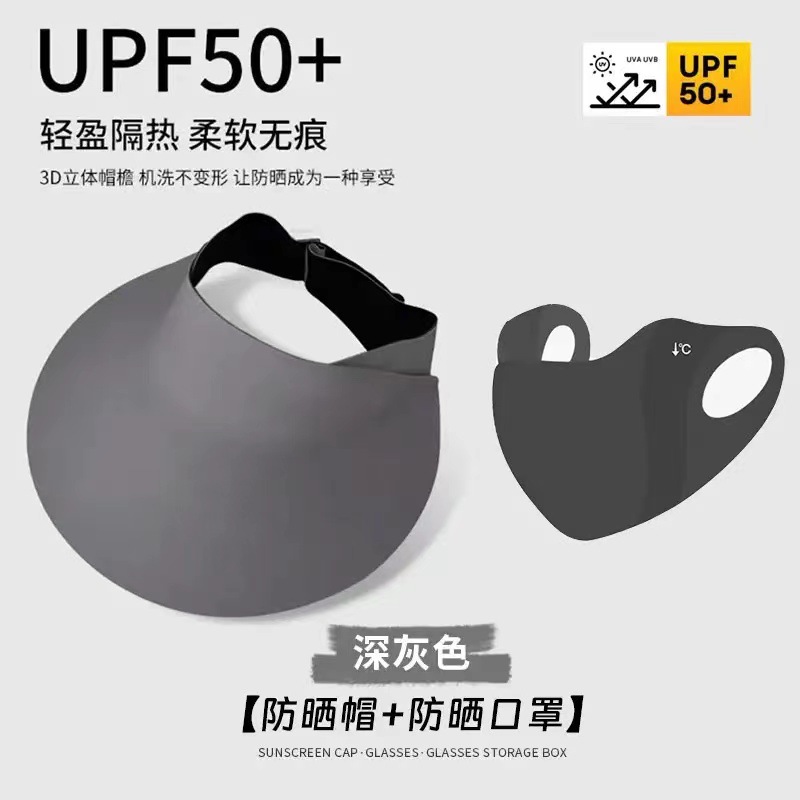 • 마스크가있는 선 스크린 모자 모델 (다크 그레이)