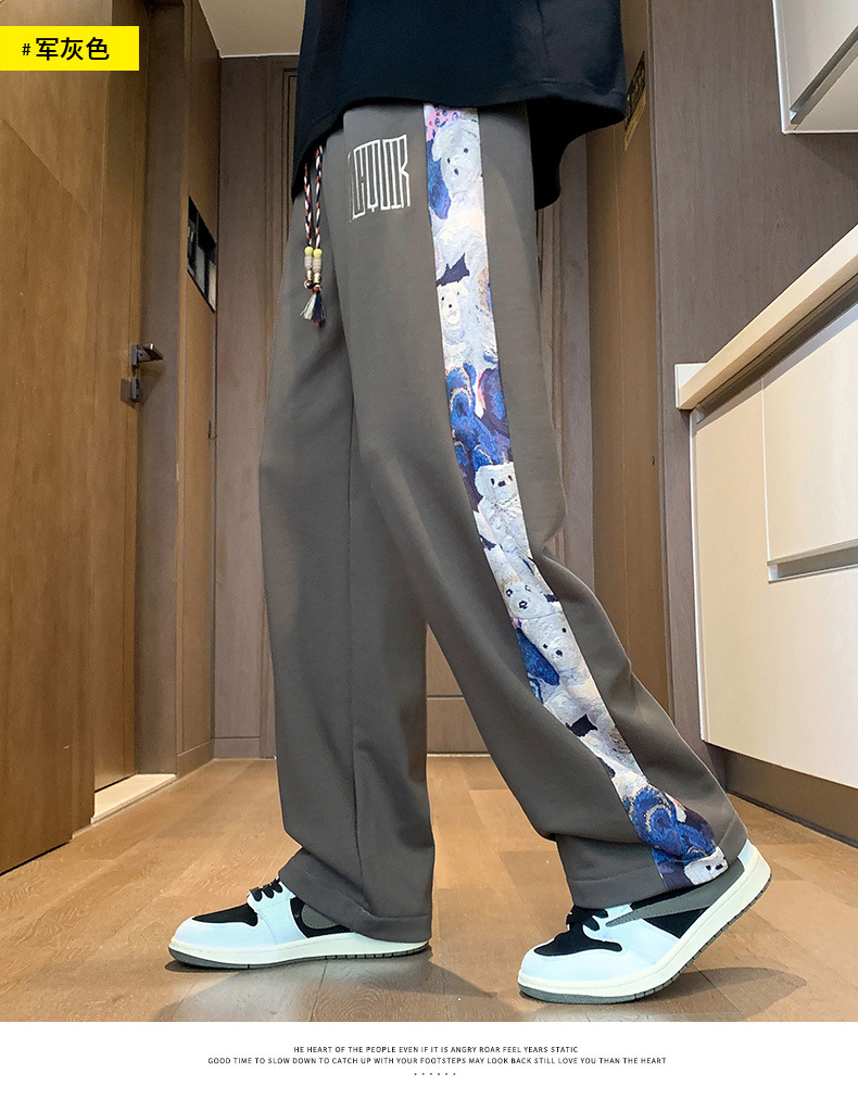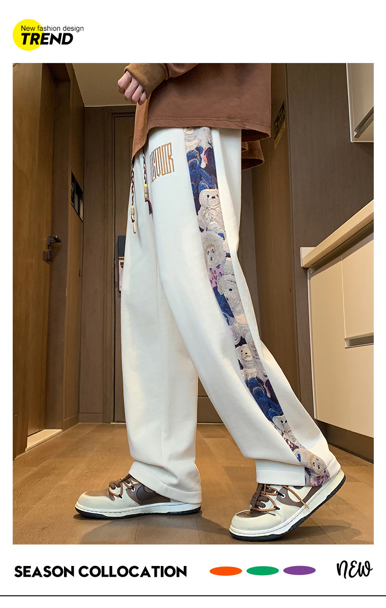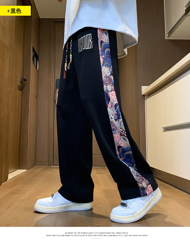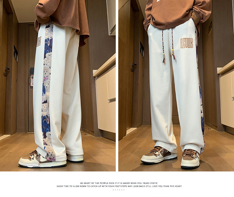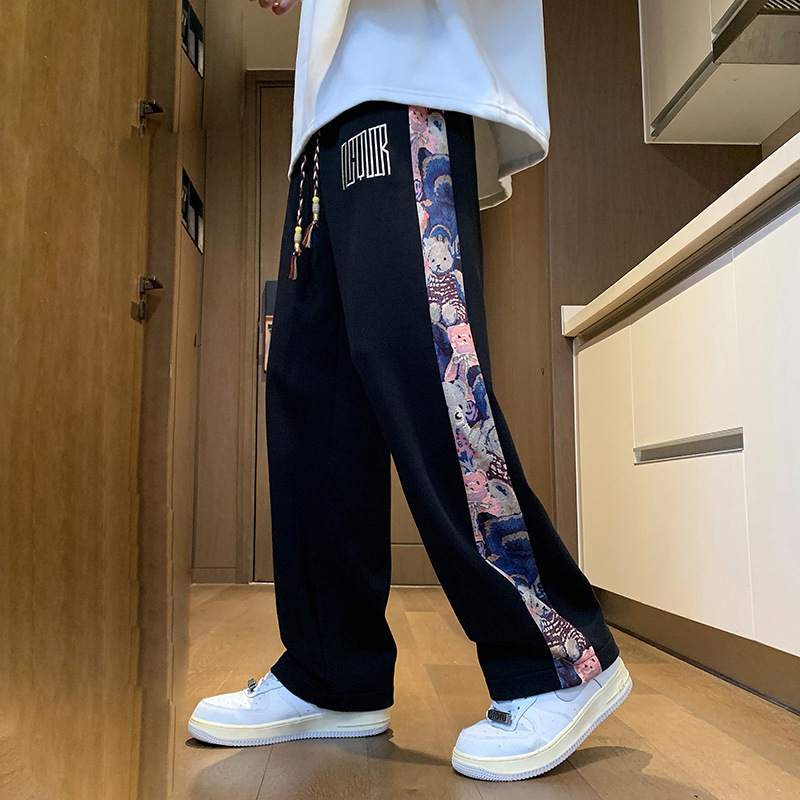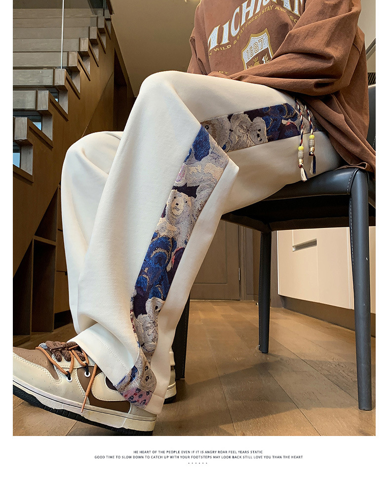 NASA 트렌디 한 브랜드 중국 스타일 바지 남자 봄과 가을 새 곰 자수 스트레이트 바지 미국 캐주얼 바지