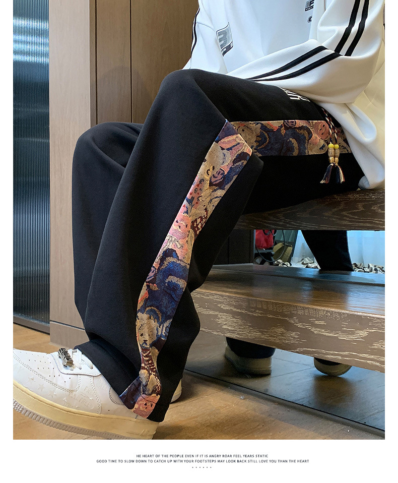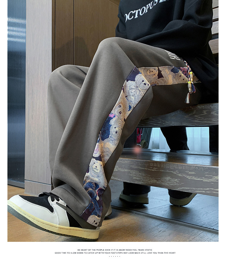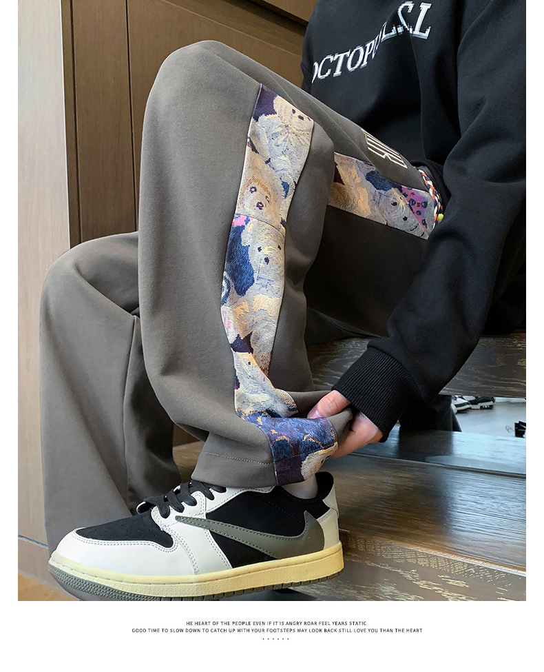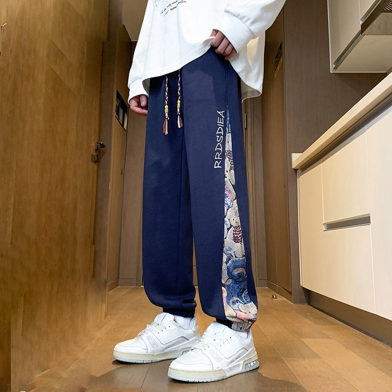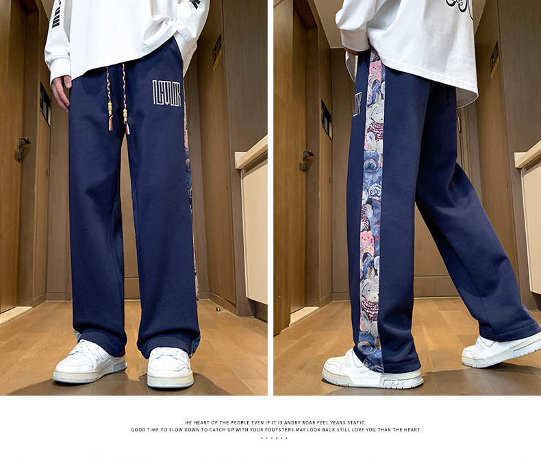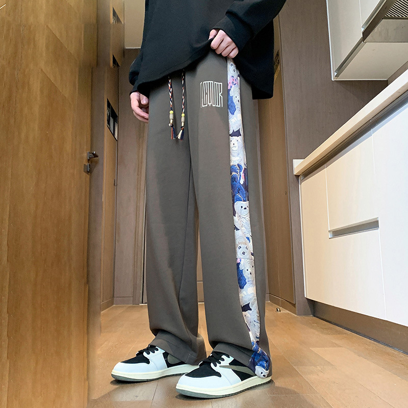 NASA 트렌디 한 브랜드 중국 스타일 바지 남자 봄과 가을 새 곰 자수 스트레이트 바지 미국 캐주얼 바지