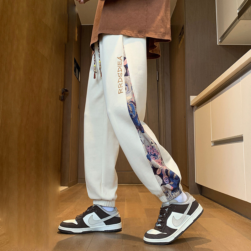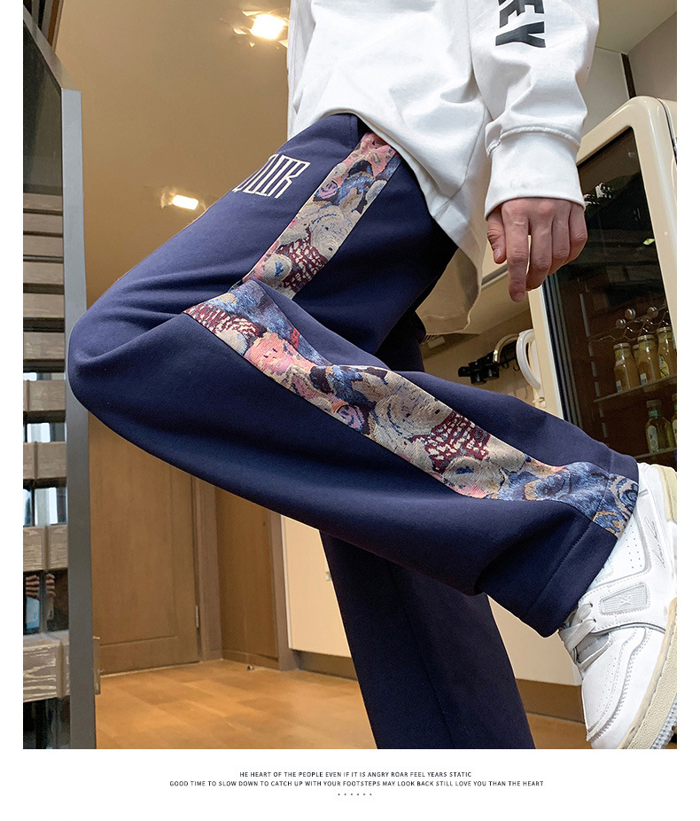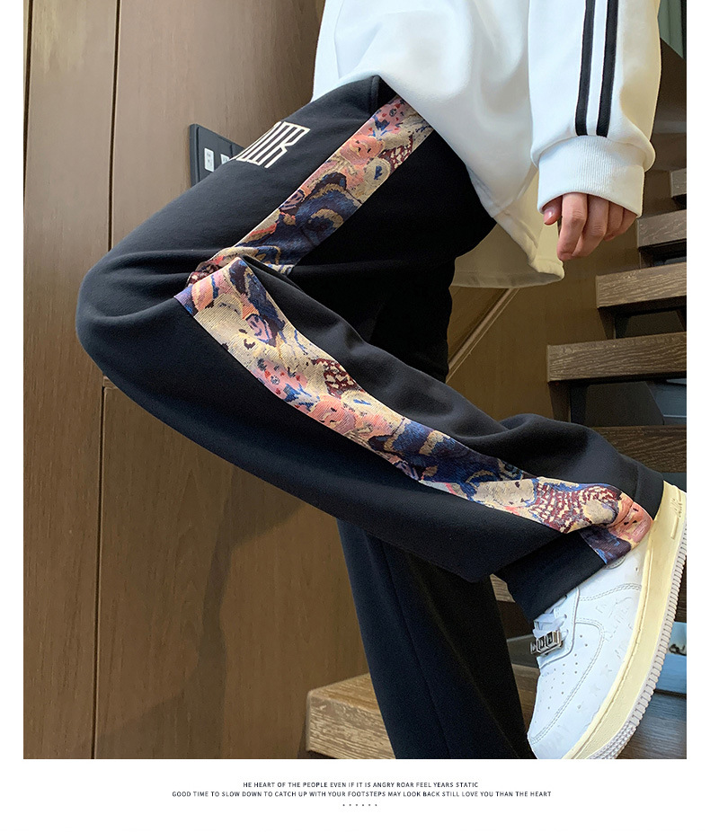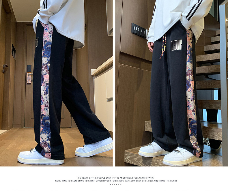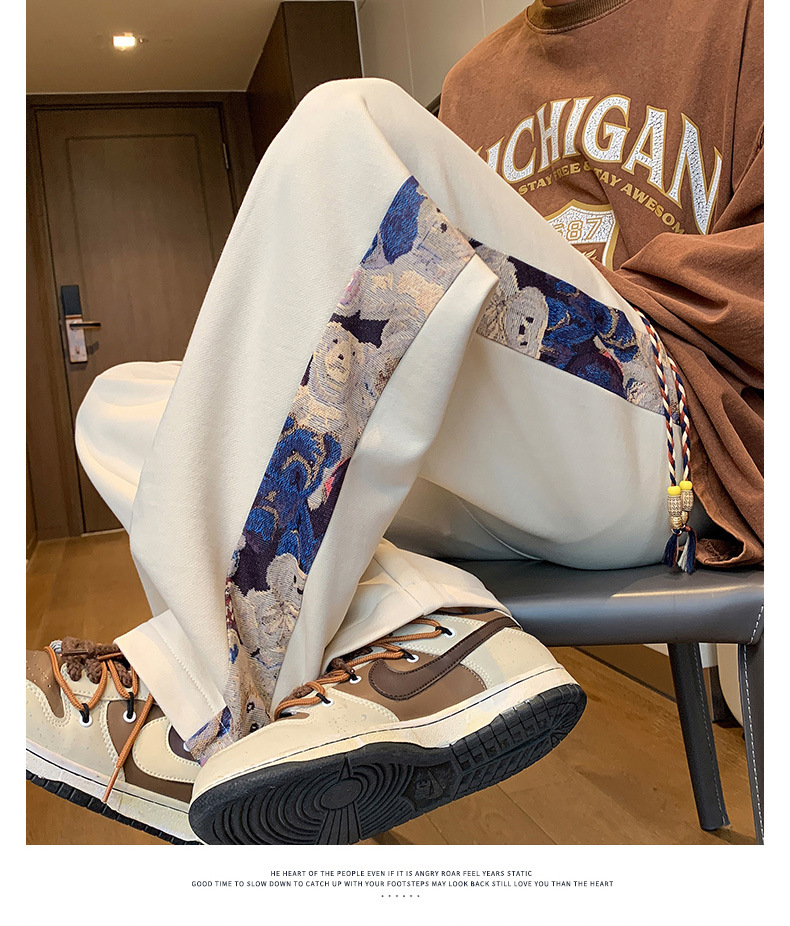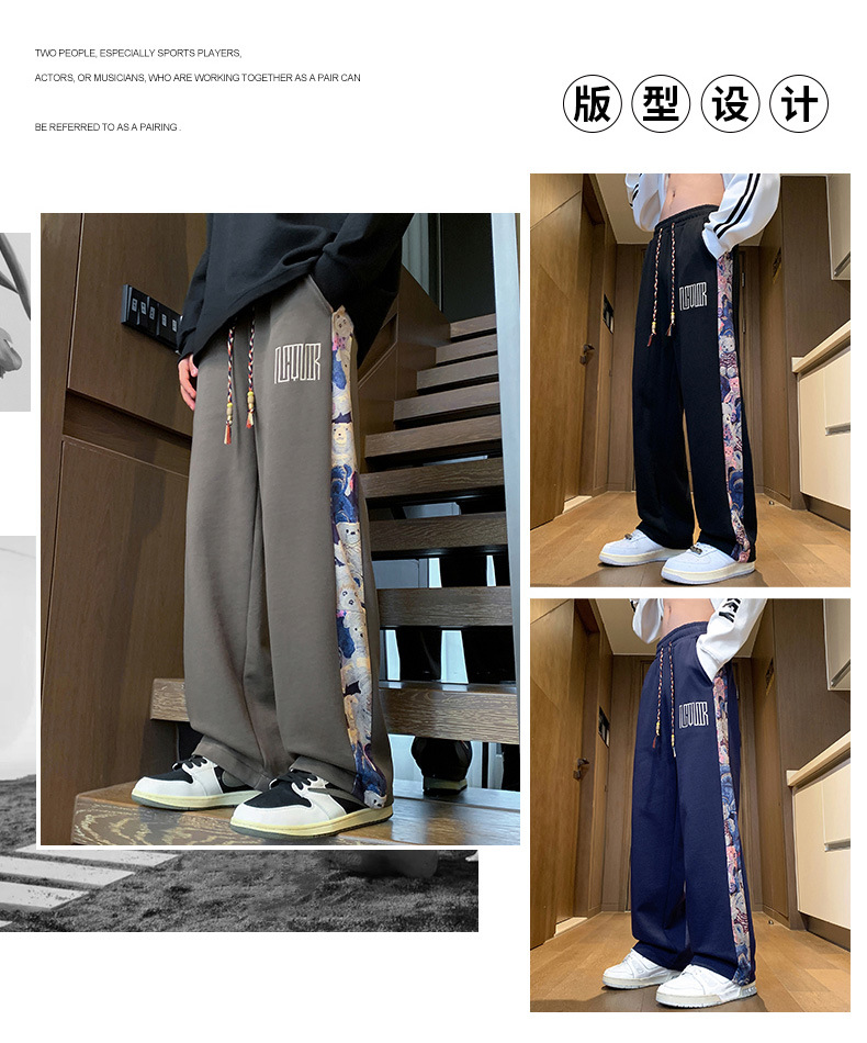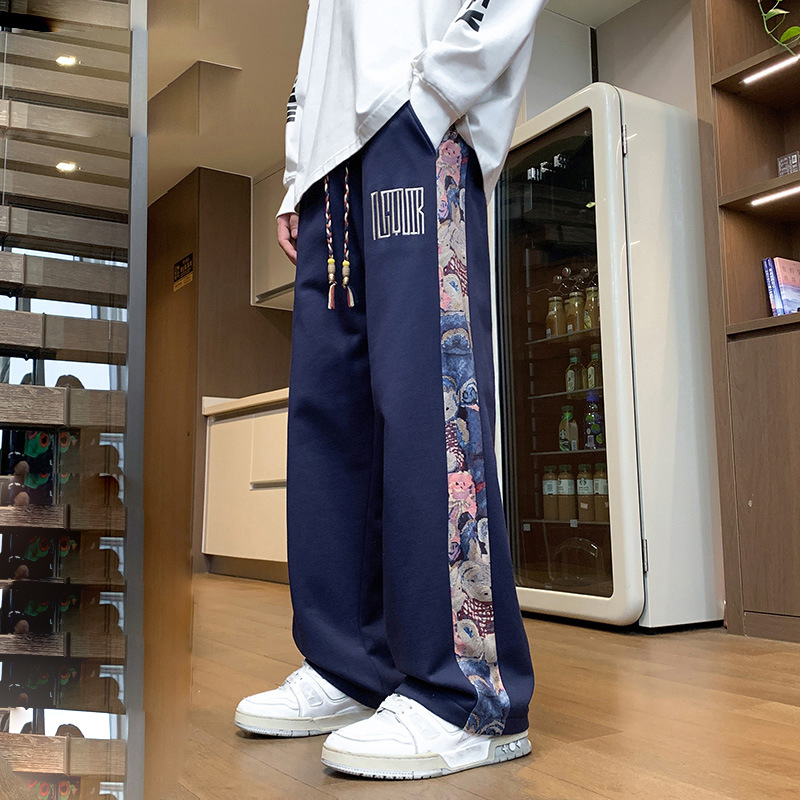 NASA 트렌디 한 브랜드 중국 스타일 바지 남자 봄과 가을 새 곰 자수 스트레이트 바지 미국 캐주얼 바지