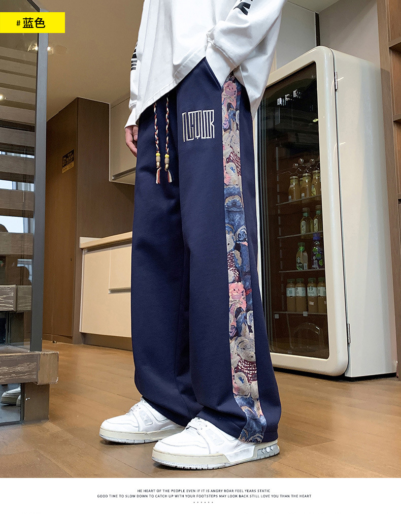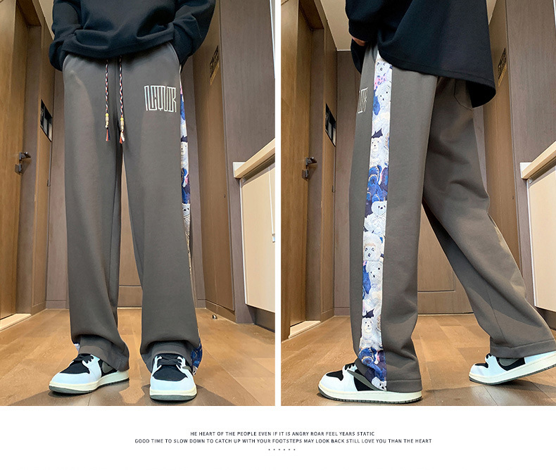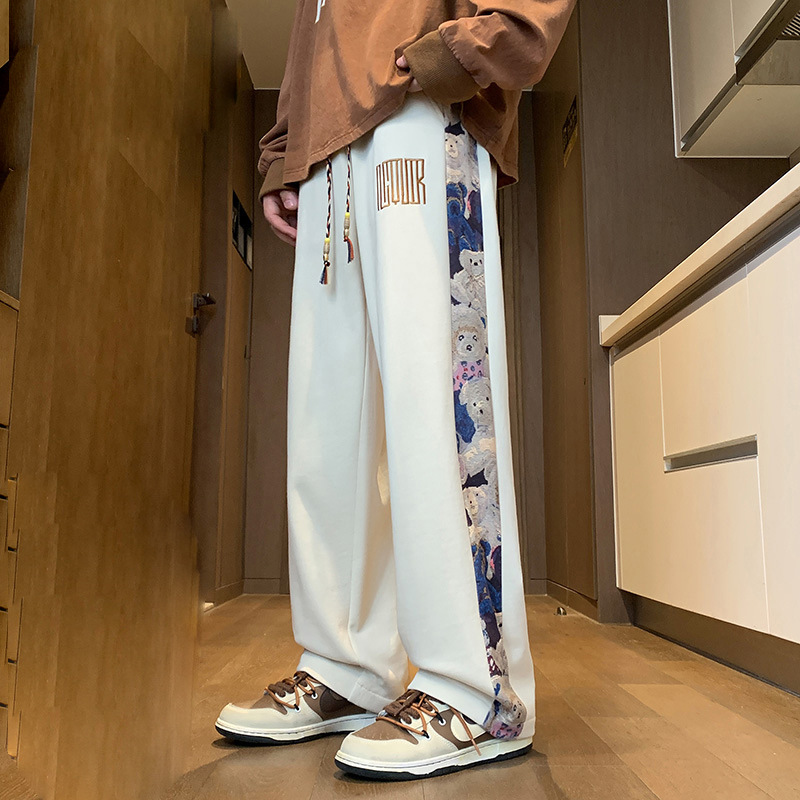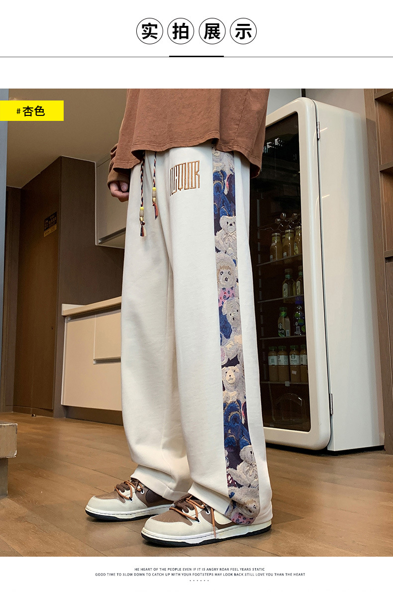 NASA 트렌디 한 브랜드 중국 스타일 바지 남자 봄과 가을 새 곰 자수 스트레이트 바지 미국 캐주얼 바지스토어 가기