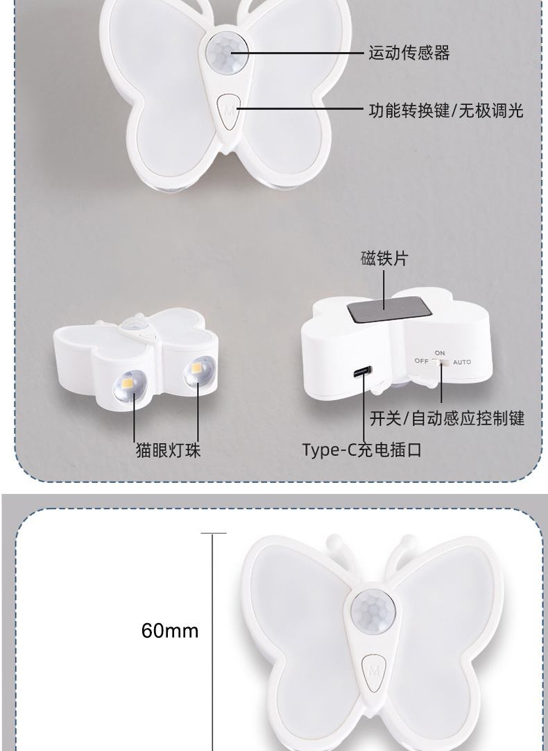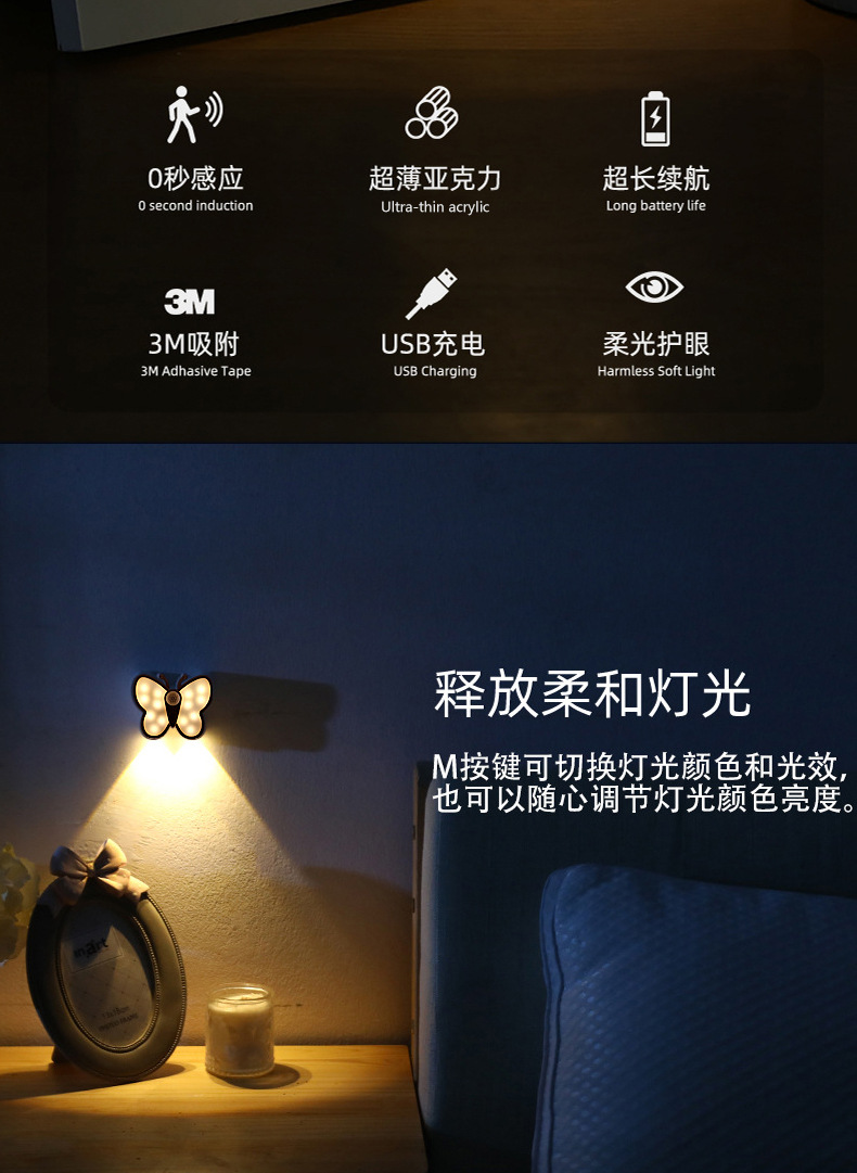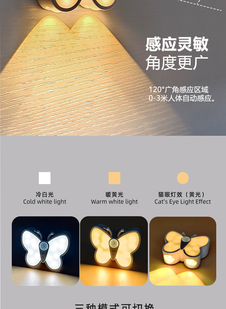 지능형 인체 유도 램프 충전 자기 무선 유도 통로 계단 램프 야간 조명 고양이 눈 조명 효과