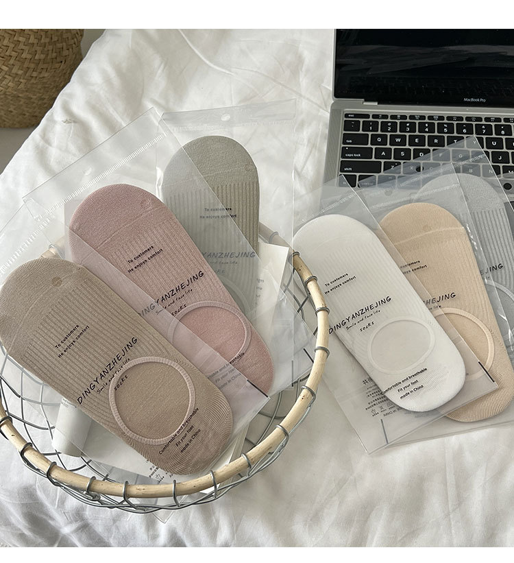 봄과 여름 미니 마이 스타일 양말 여성의 얇은 순수 코튼 보이지 않는 양말 수직 줄무늬 뼈없는 얕은 입 미끄럼 미끄럼 방지 힐 보트 양말