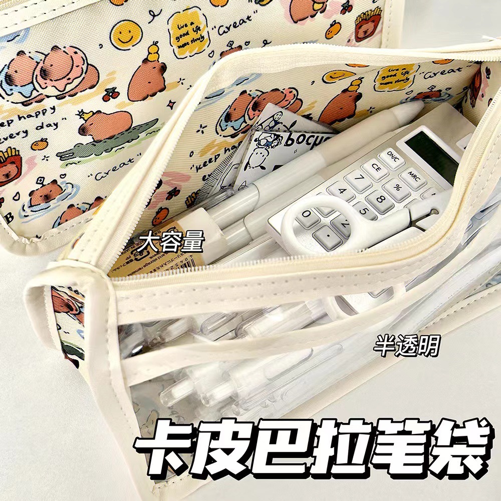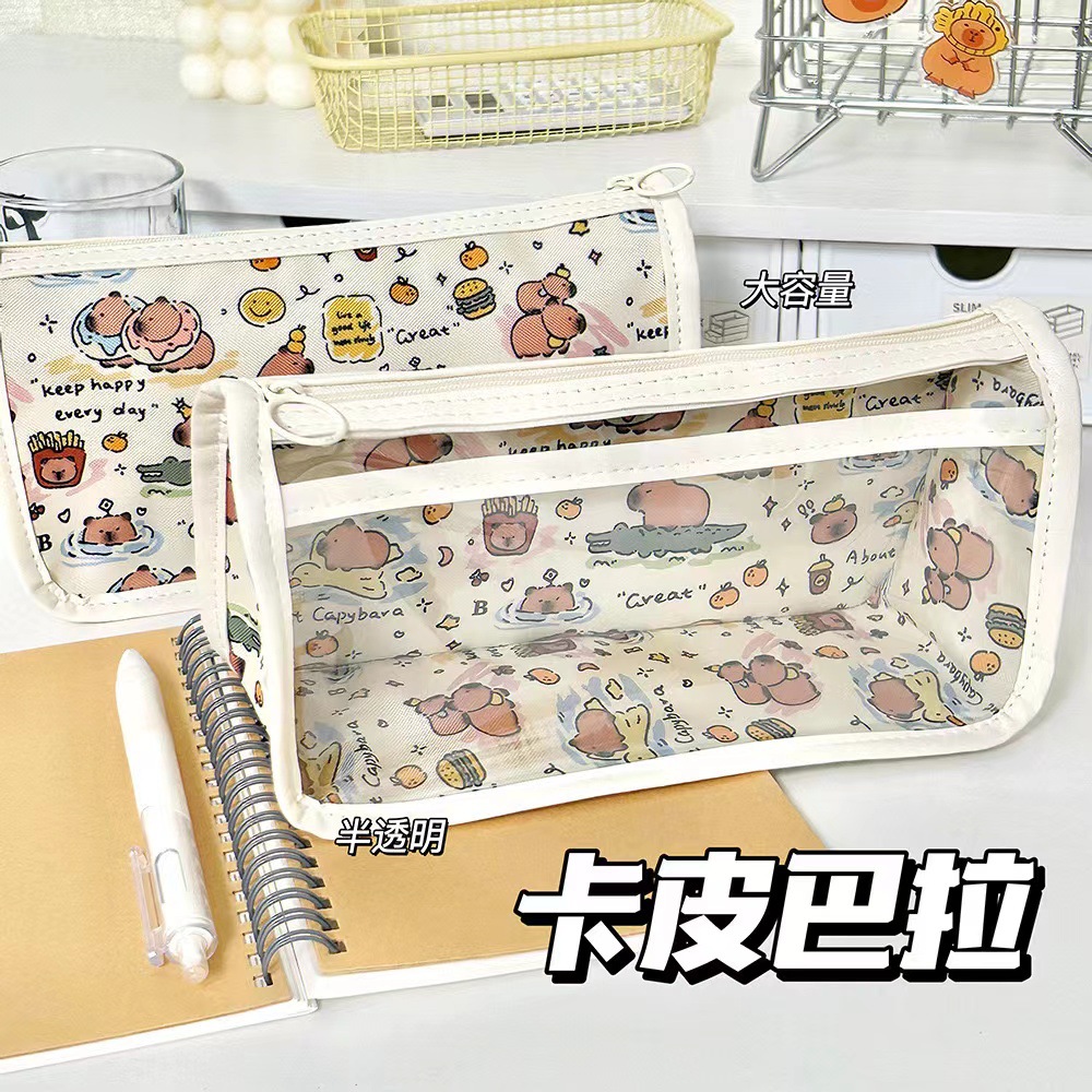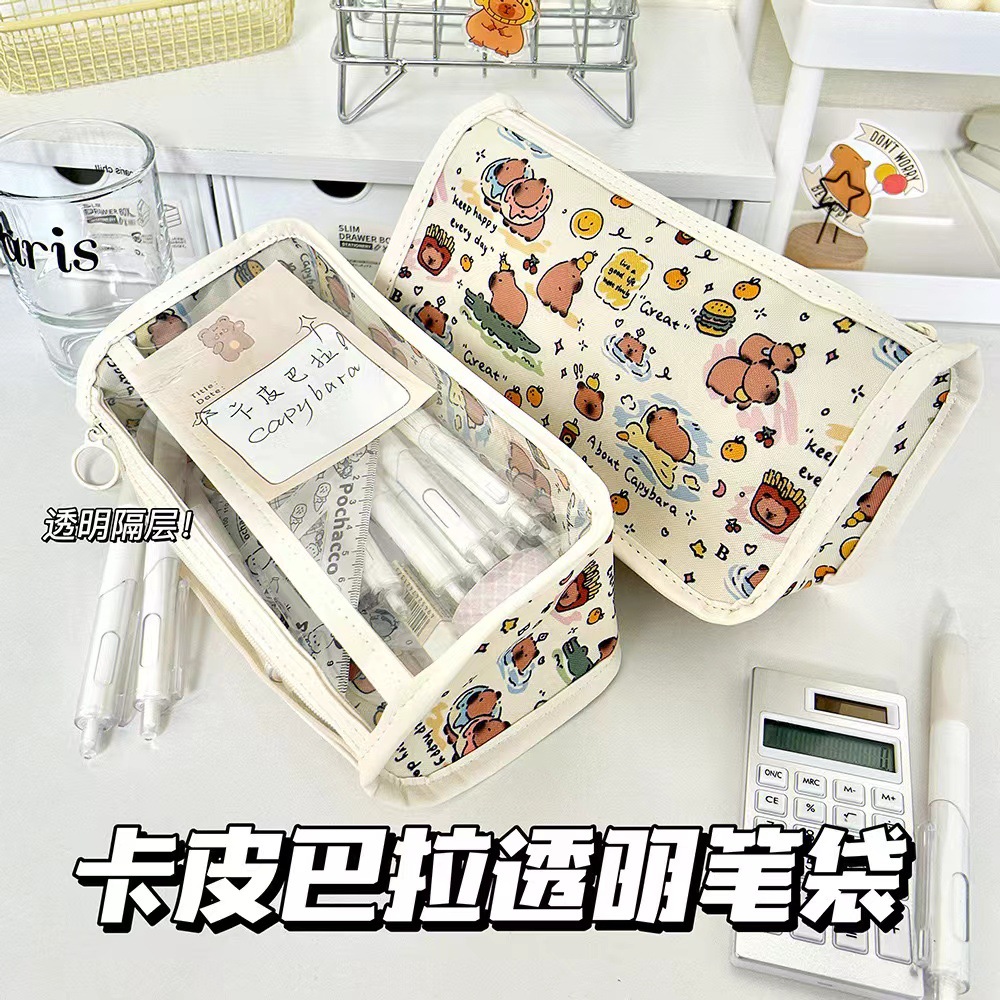 새로운 Kapi Barra 투명한 삼각형 대용량 연필 케이스 높은 색상 가치 귀여운 간단한 Ins 스타일 저장 가방스토어 가기