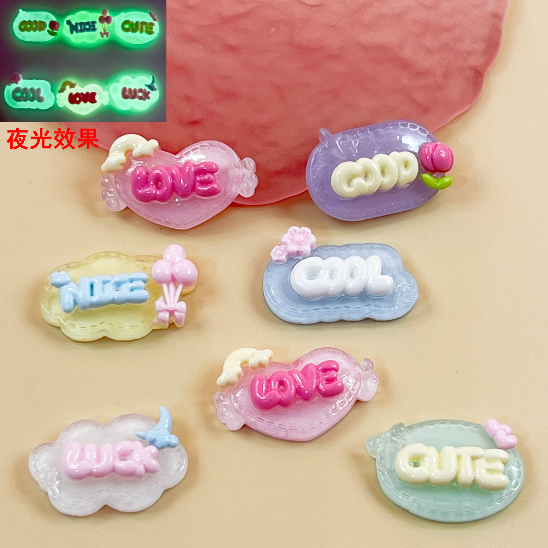빛나는 투명한 사랑 타원형 영어 플레이트 LUCK 쿨 컷 헤어핀 헤어 코드 그립 수지 액세서리