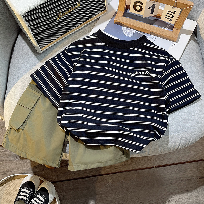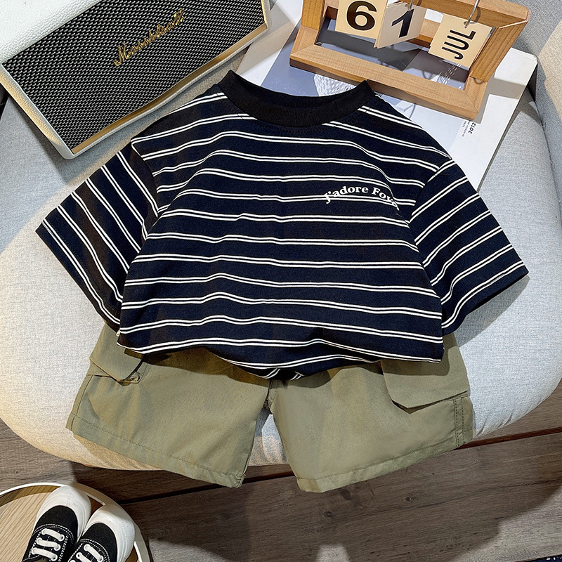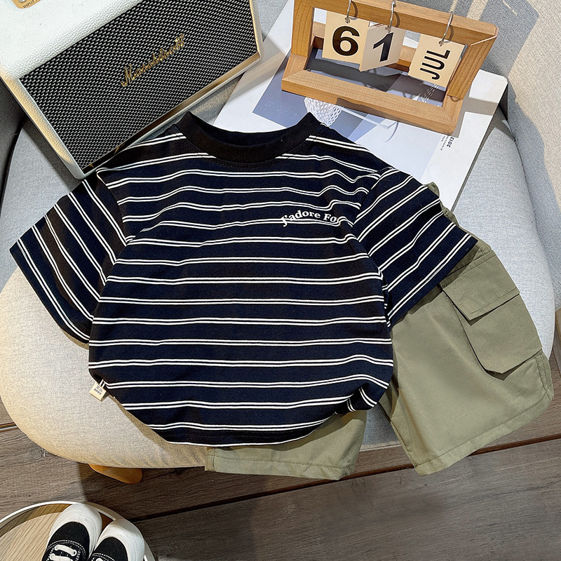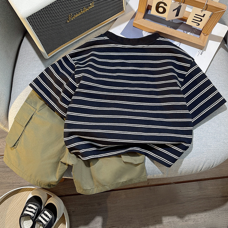 아동복 여름옷 남아 반팔 티셔츠 아기 스트라이프 세트 2025 신상 남자아이 캐주얼 세트스토어 가기