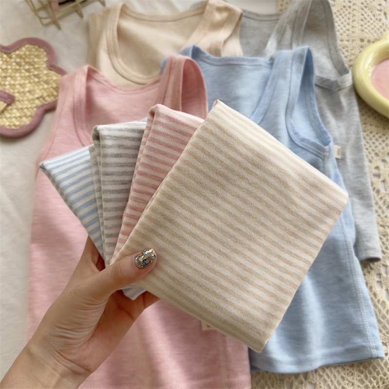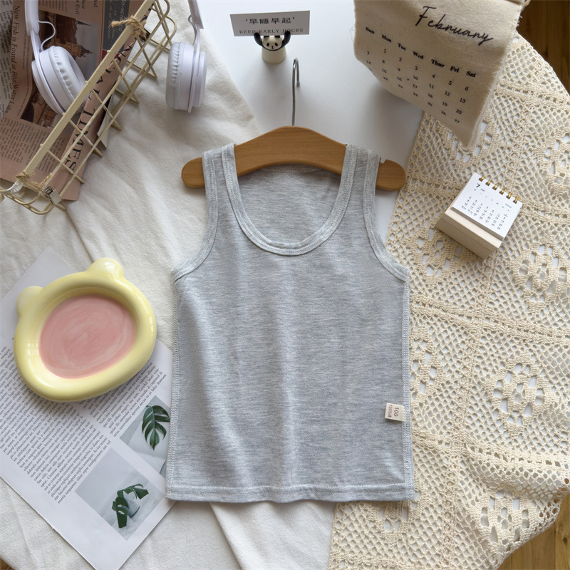 어린이용 무봉제 사계절 면조끼, 남아 여아용 속옷, 몸에 꼭 맞는 민소매 가을 겨울 보온 잠옷