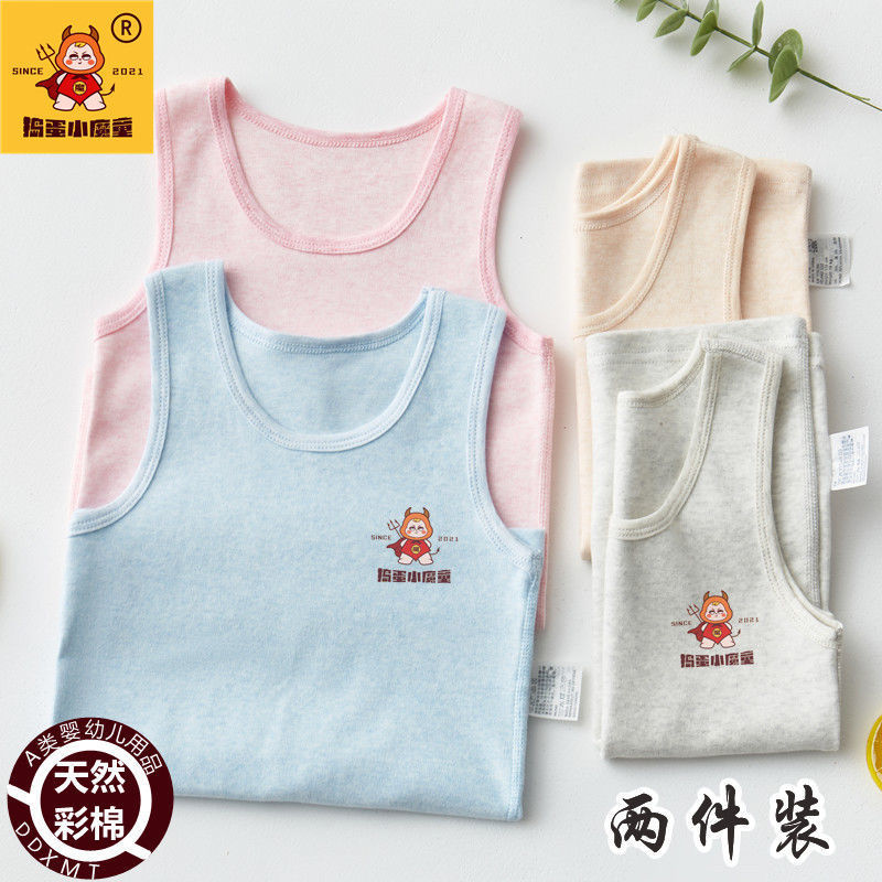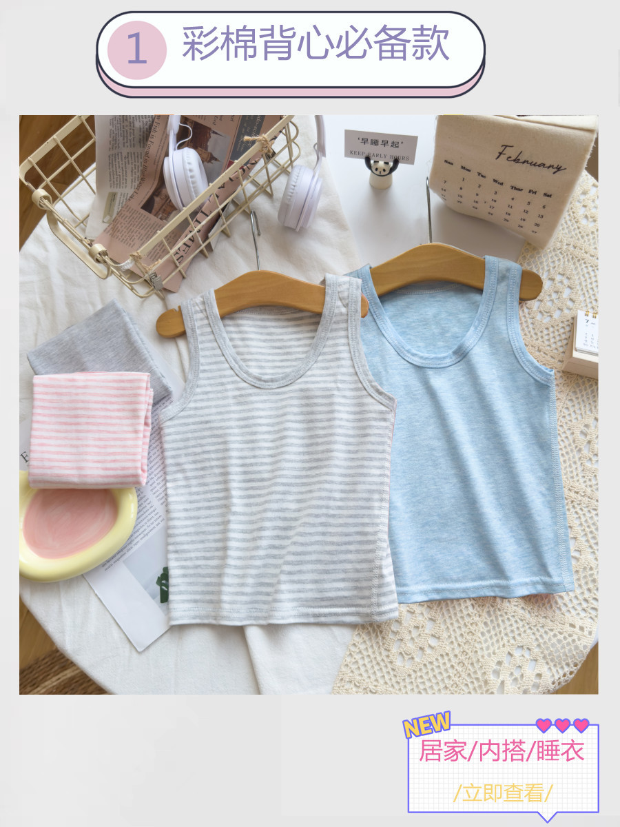 어린이용 무봉제 사계절 면조끼, 남아 여아용 속옷, 몸에 꼭 맞는 민소매 가을 겨울 보온 잠옷스토어 가기