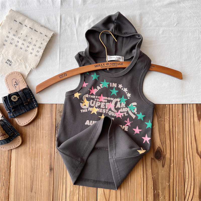 일본 아동복 중고 틈새 여름 아동용 후드 아메리칸 조끼 민소매 탑스토어 가기