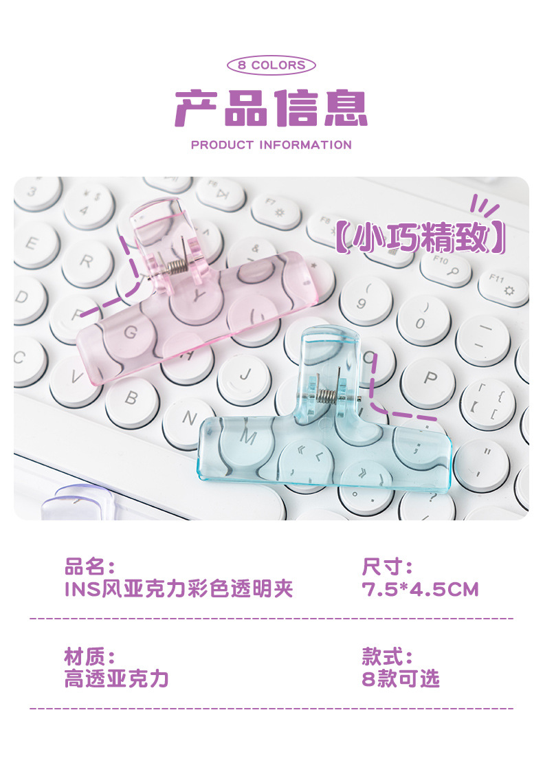 컬러 클립 아크릴 다기능 긴 꼬리 클립 학생 테스트 종이 도브 테일 클립 책 문구 클립 데이터 마무리 클립