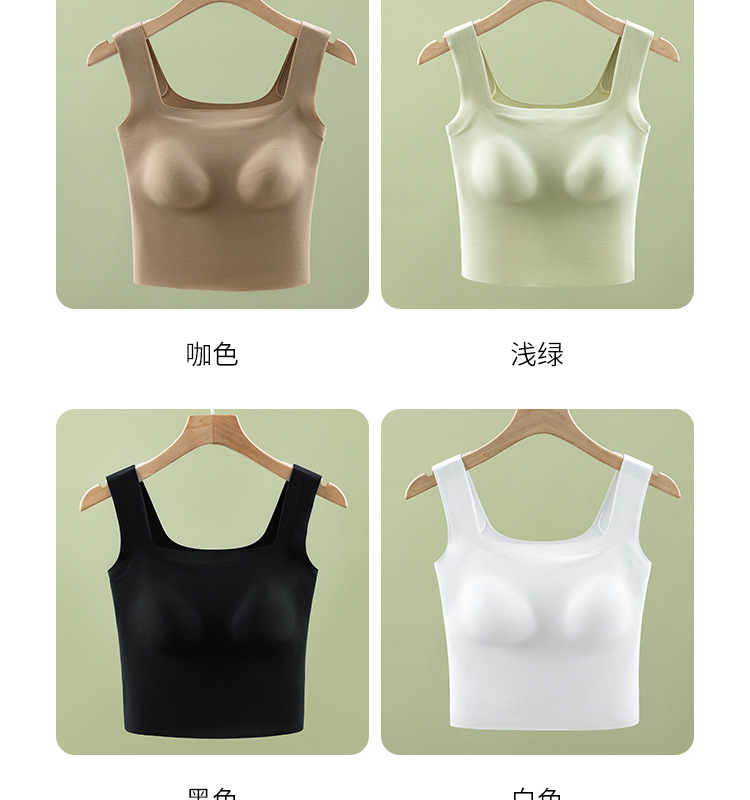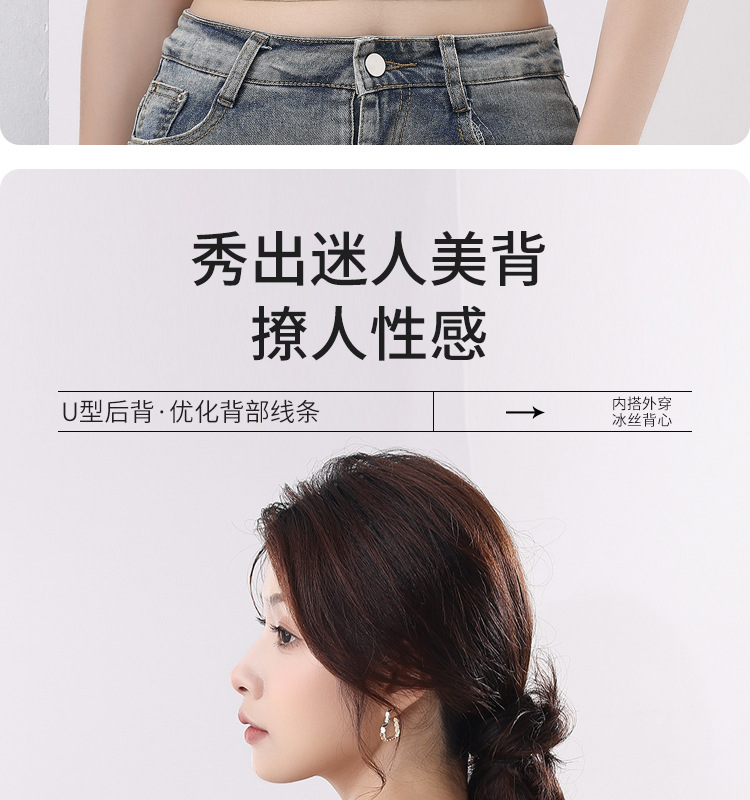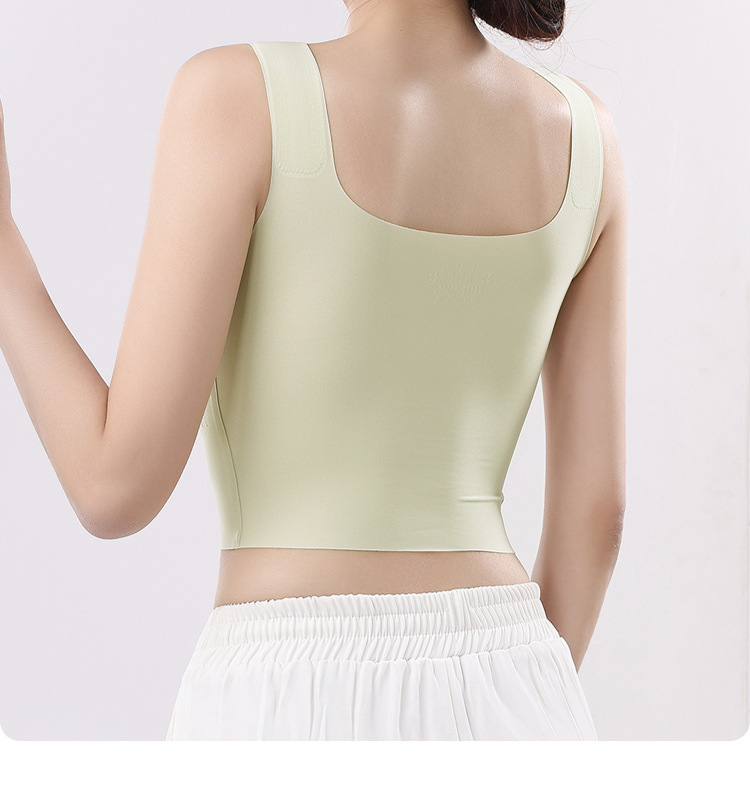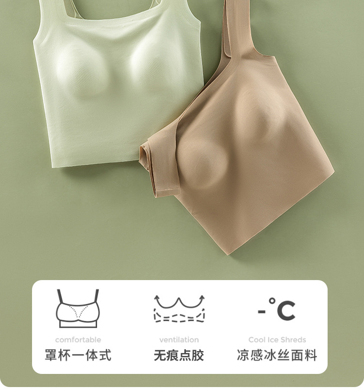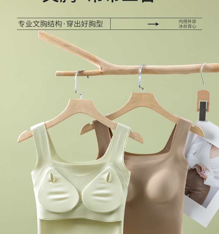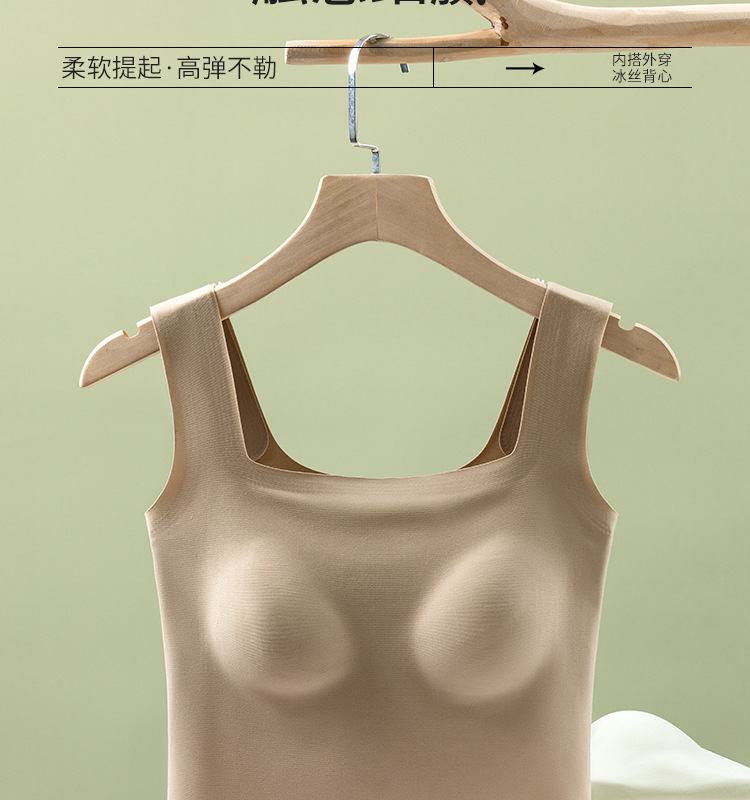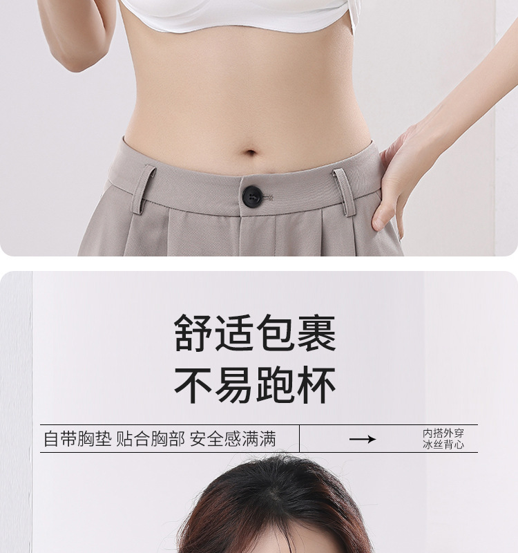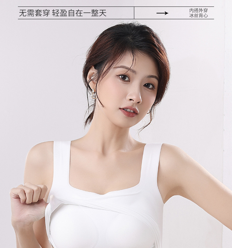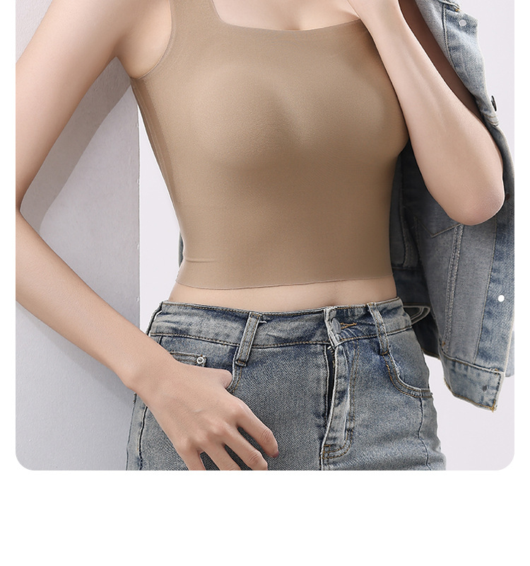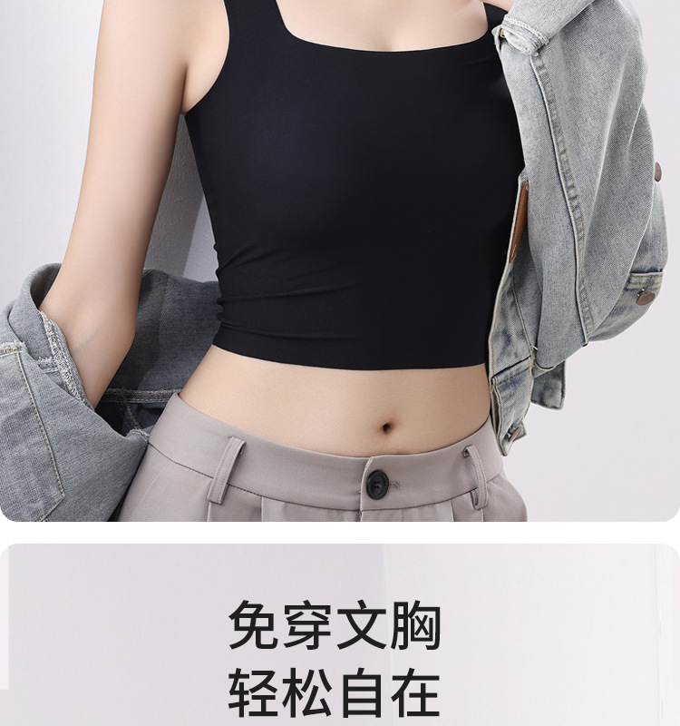 가슴 패드가 달린 반바디 스퀘어 칼라 슬링 조끼 여자 플러스 사이즈 아이스 실크 비 마킹 배꼽 탑 쇼트 여름 2024 새로운스토어 가기