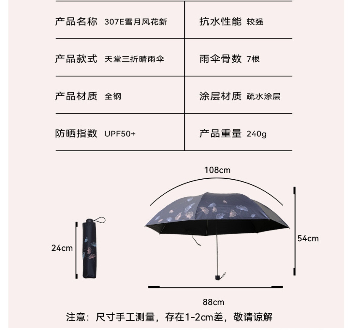파라다이스 우산 307E 자외선 차단 블랙 글레이즈 선우산 도매 자외선 차단 우산 70% off 경량 UPF50+스토어 가기
