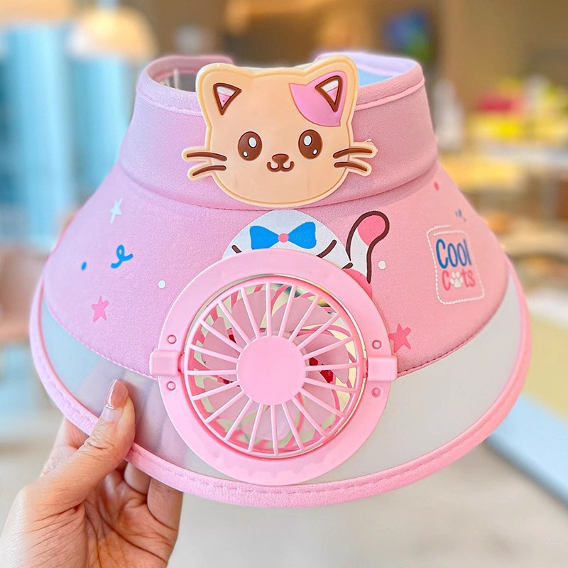 • 프리 사이즈 핑크 고양이 선 스크린 캡 [조절 가능한 크기 SUB 충전식] 3-12 세