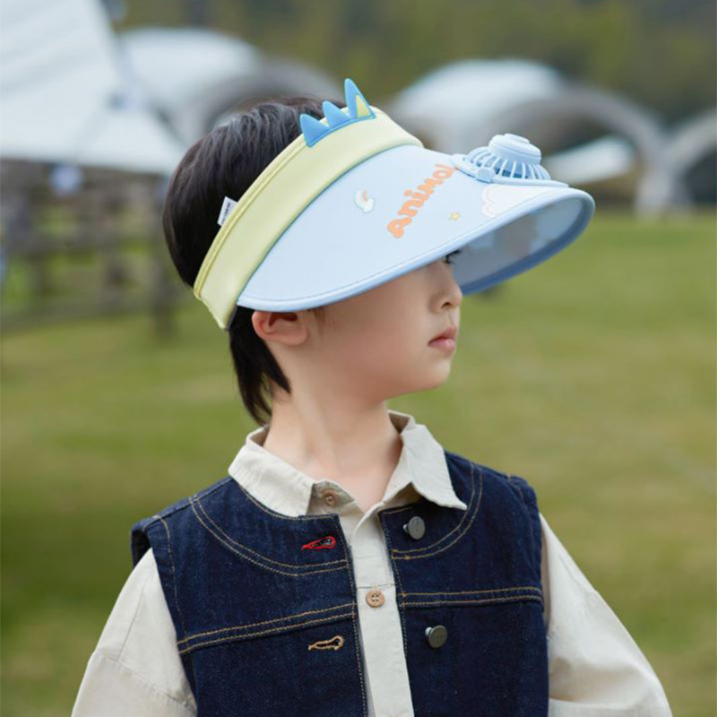 • 프리 사이즈 블루 공룡 선 스크린 캡 [조절 가능한 크기 SUB 충전식] 3-12 세
