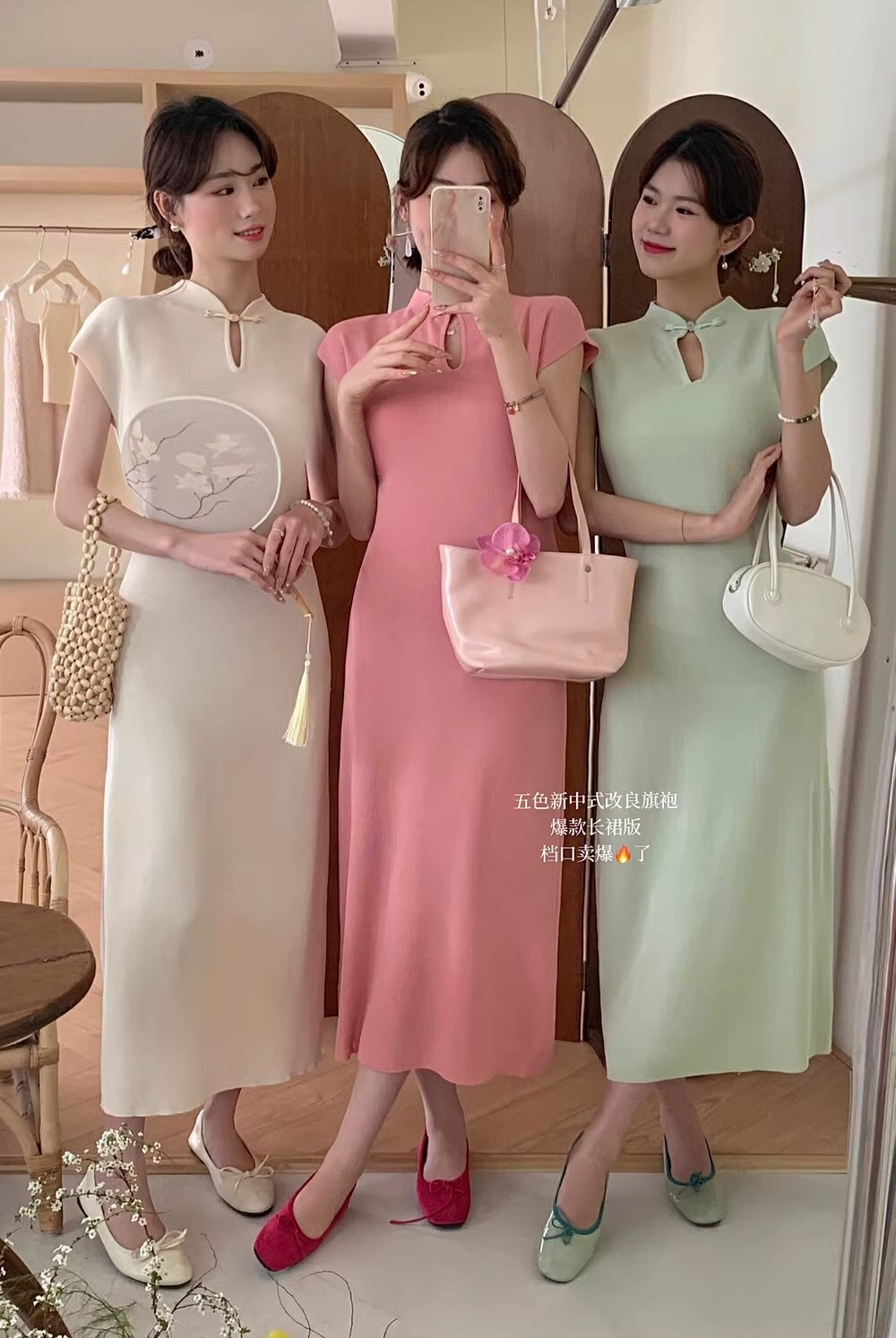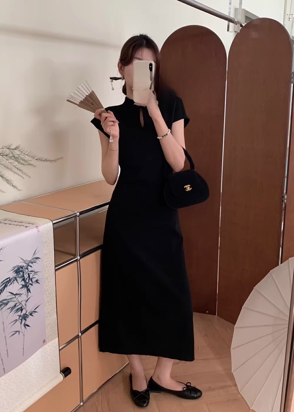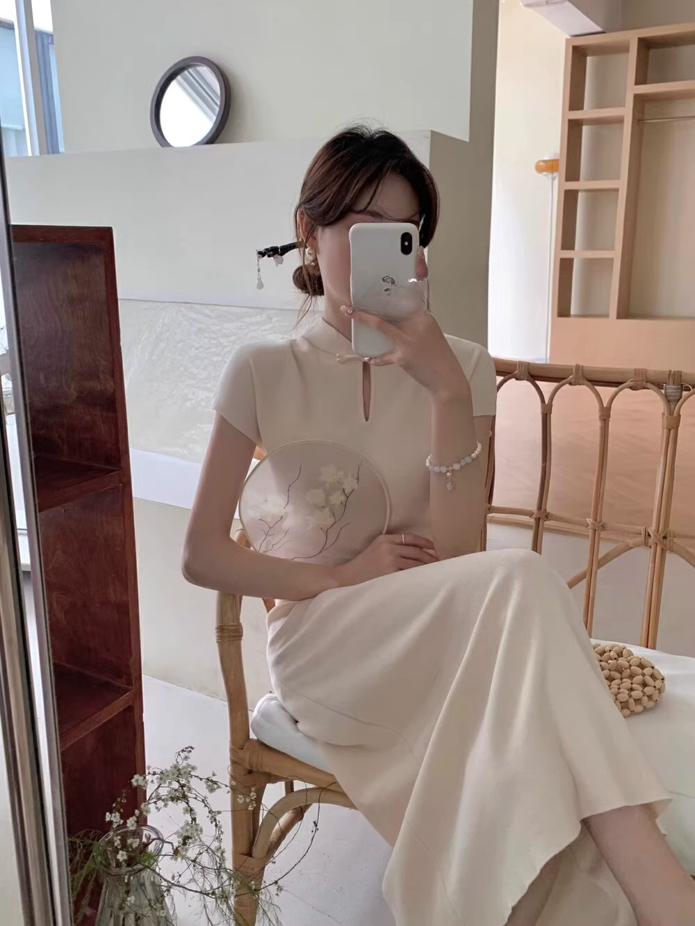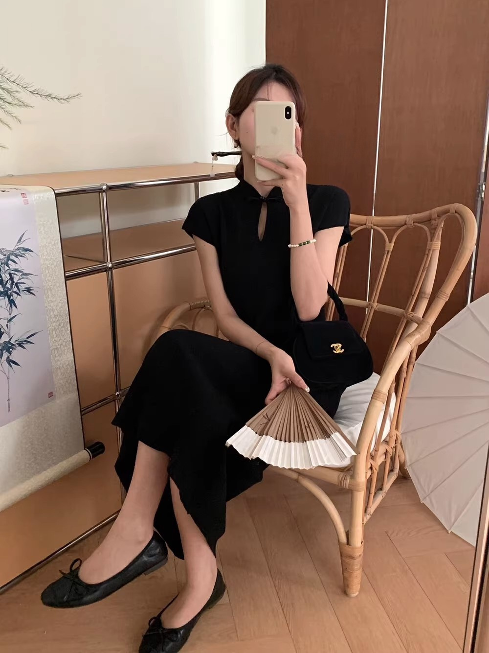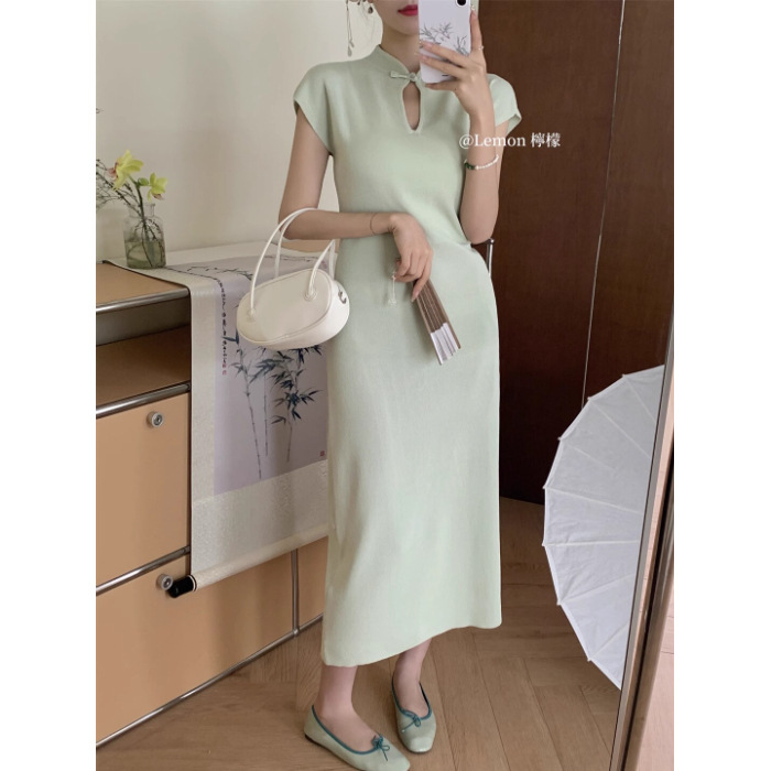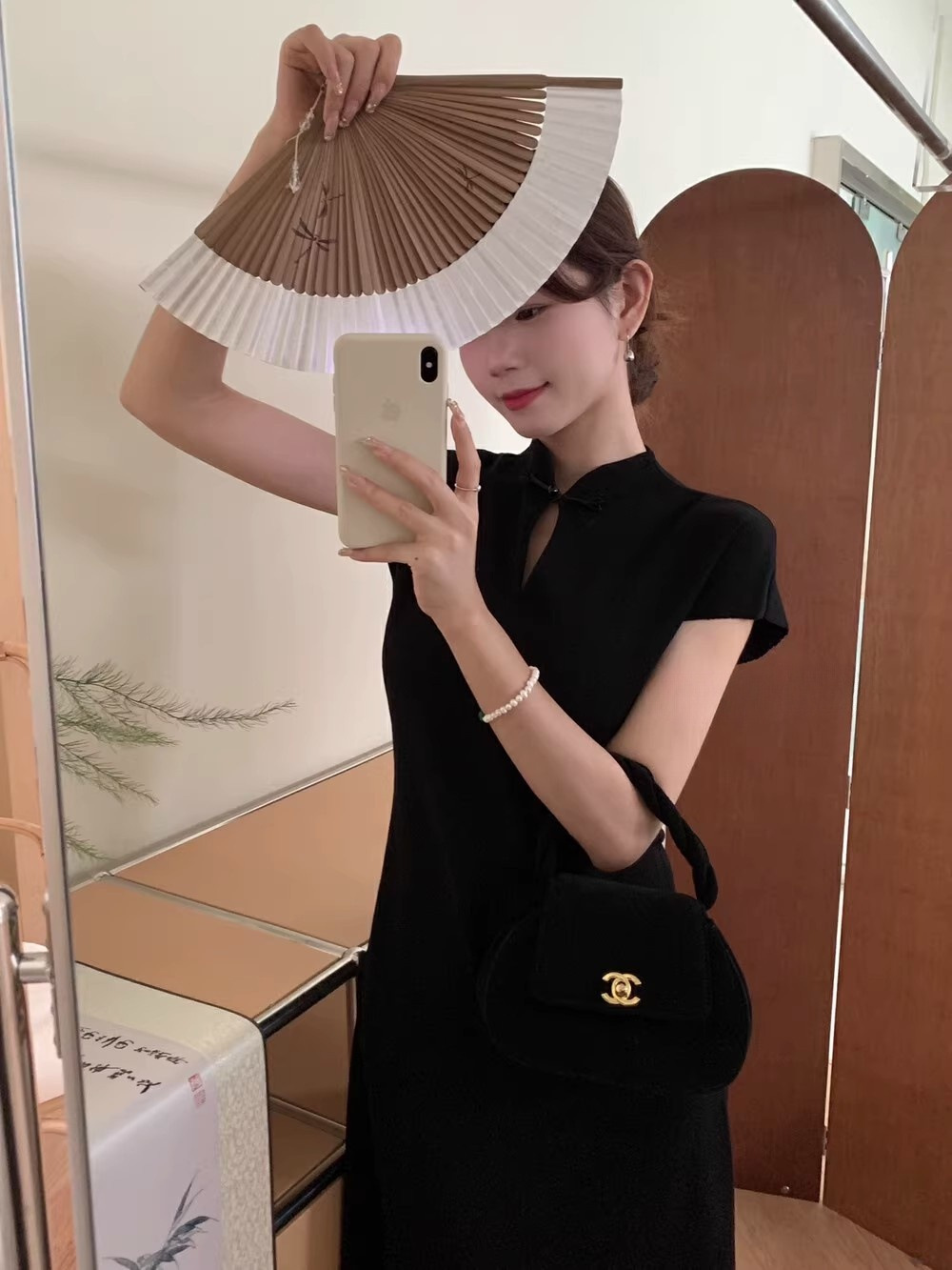 2024 여름 새로운 패션 국가 스타일 중국 개선 청삼 우아한 슬리밍 허리 우아한 원피스 긴 치마스토어 가기