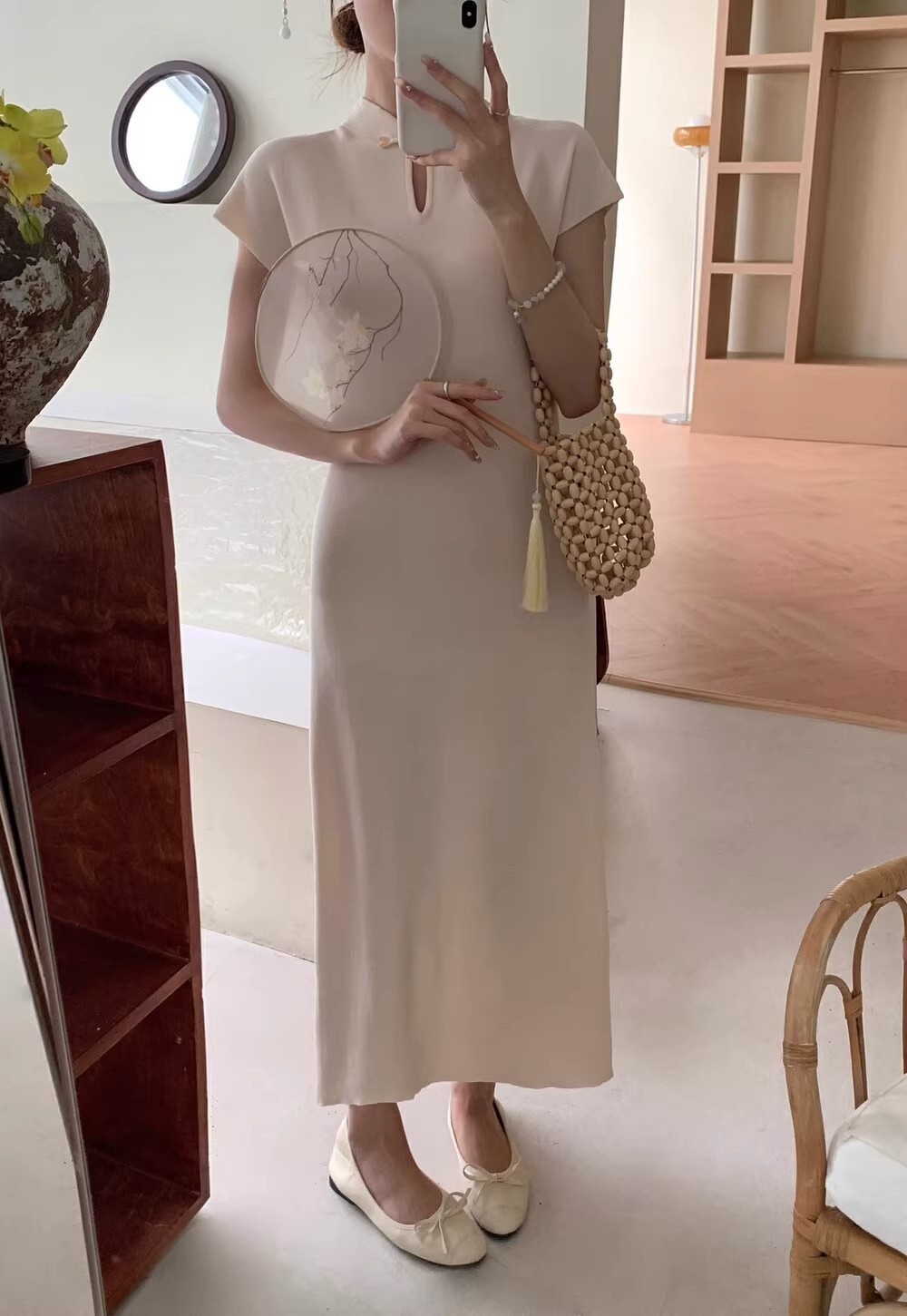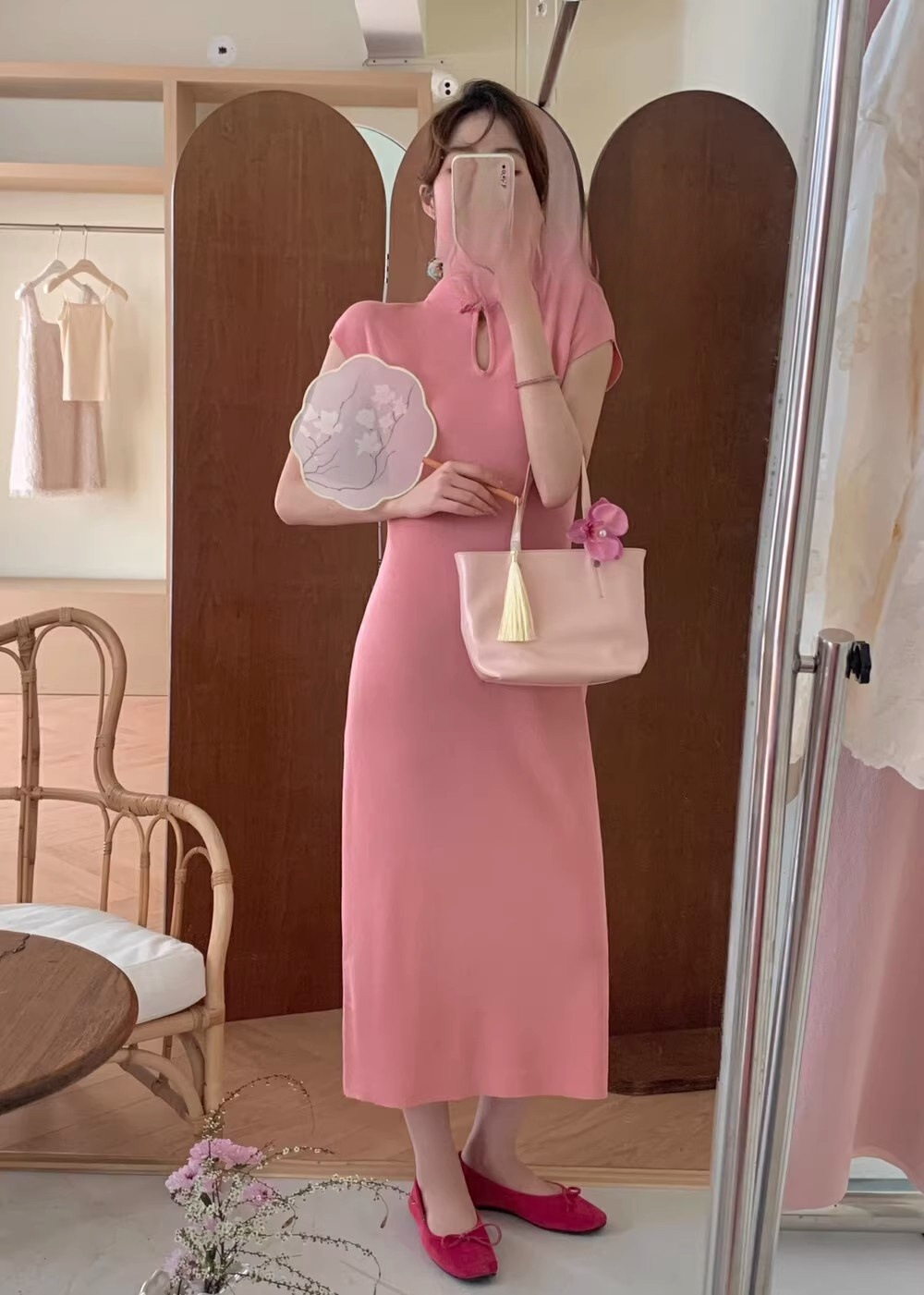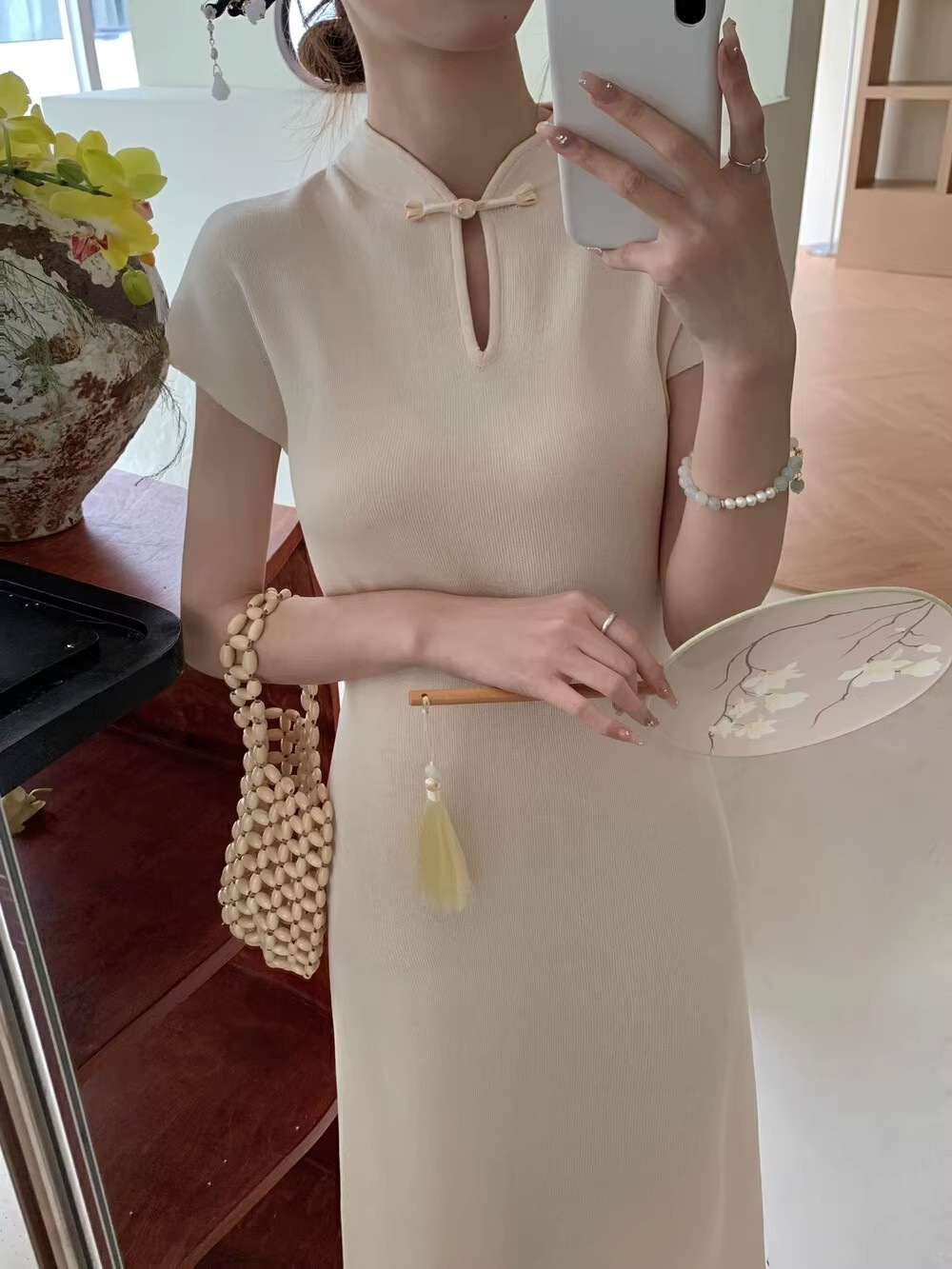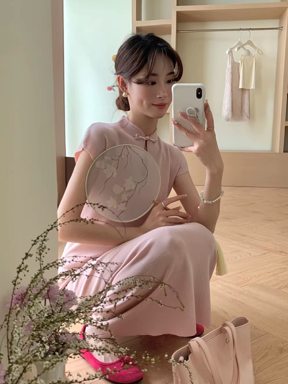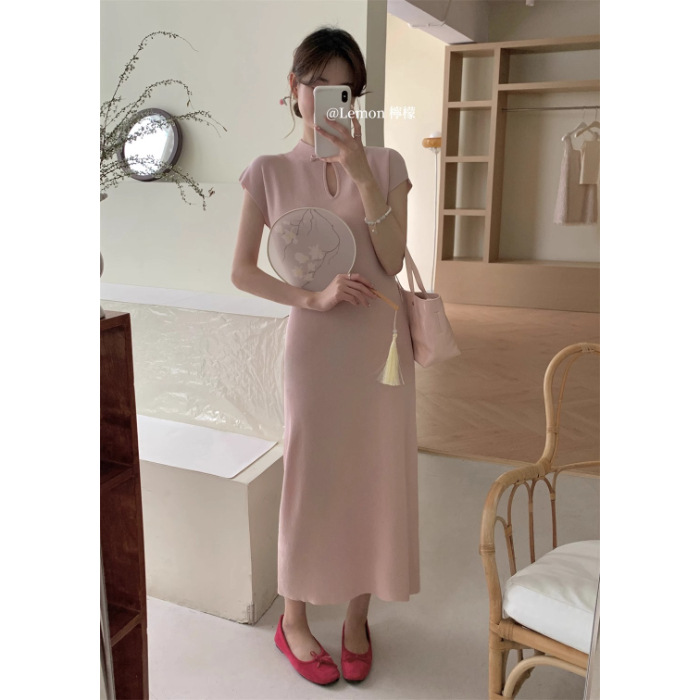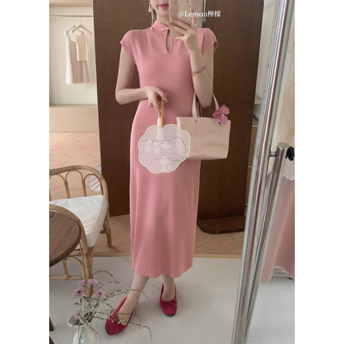 2024 여름 새로운 패션 국가 스타일 중국 개선 청삼 우아한 슬리밍 허리 우아한 원피스 긴 치마스토어 가기