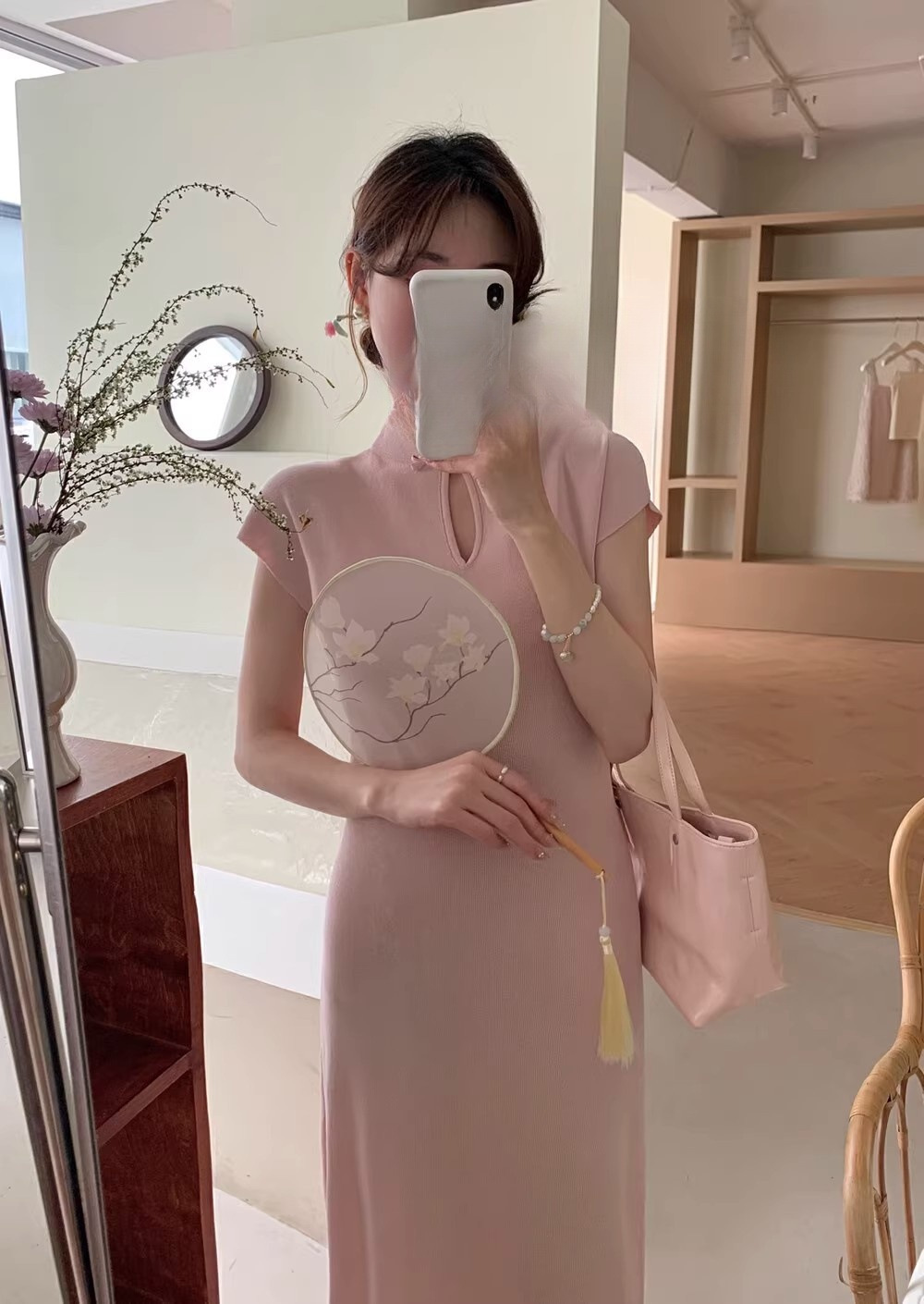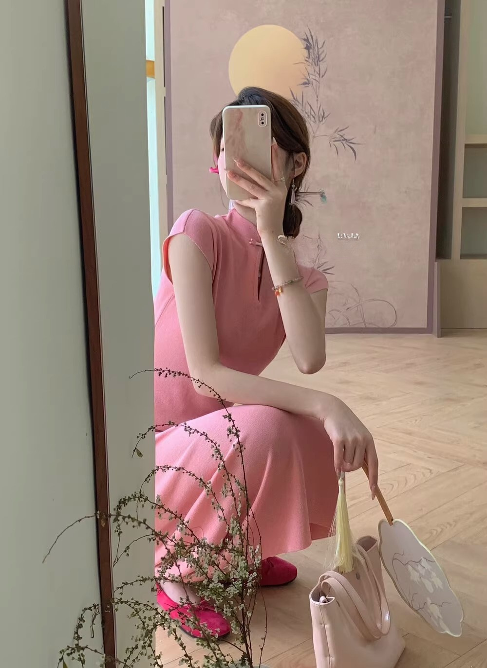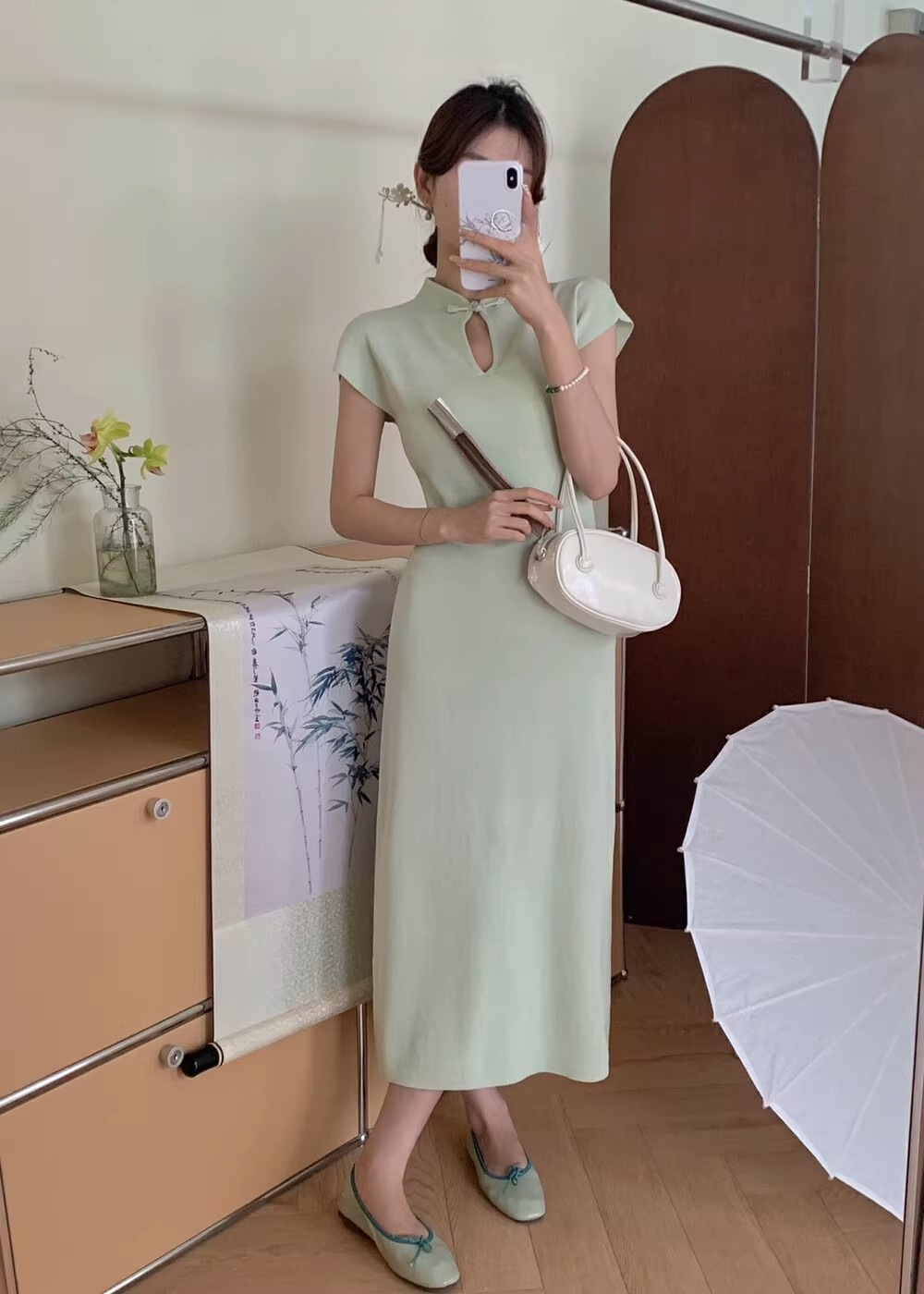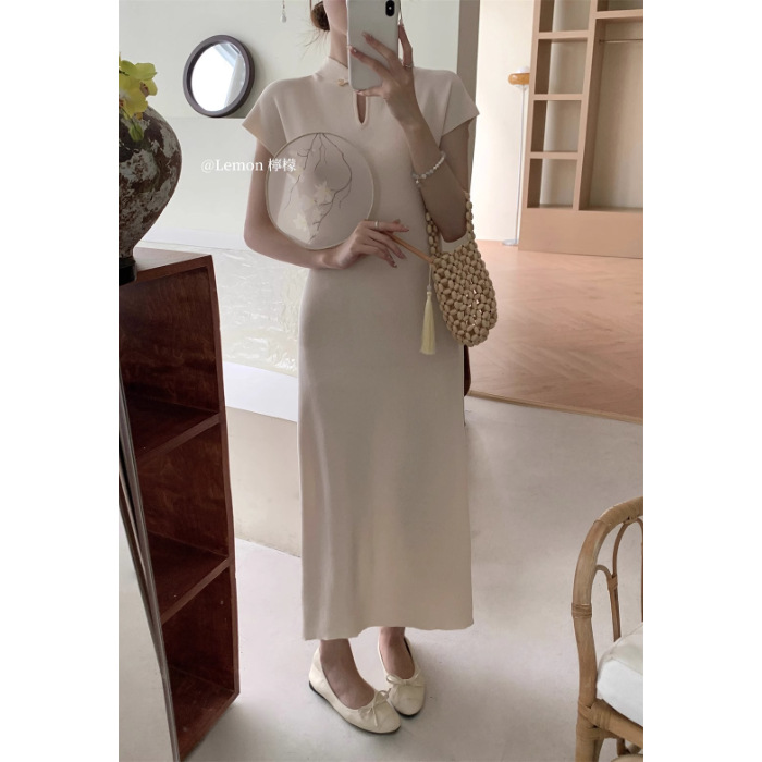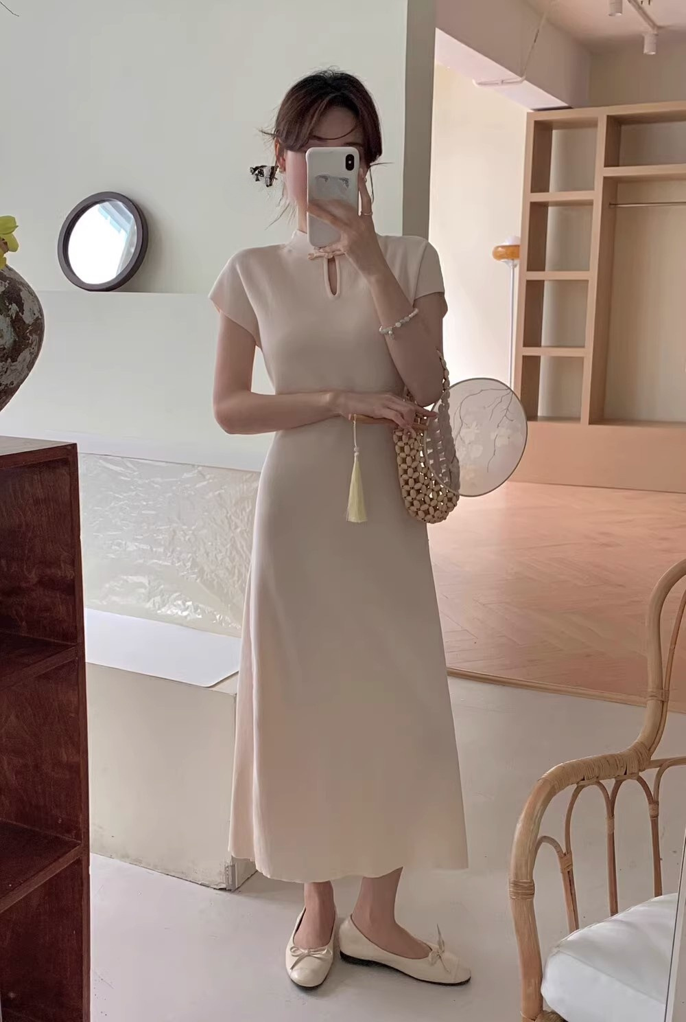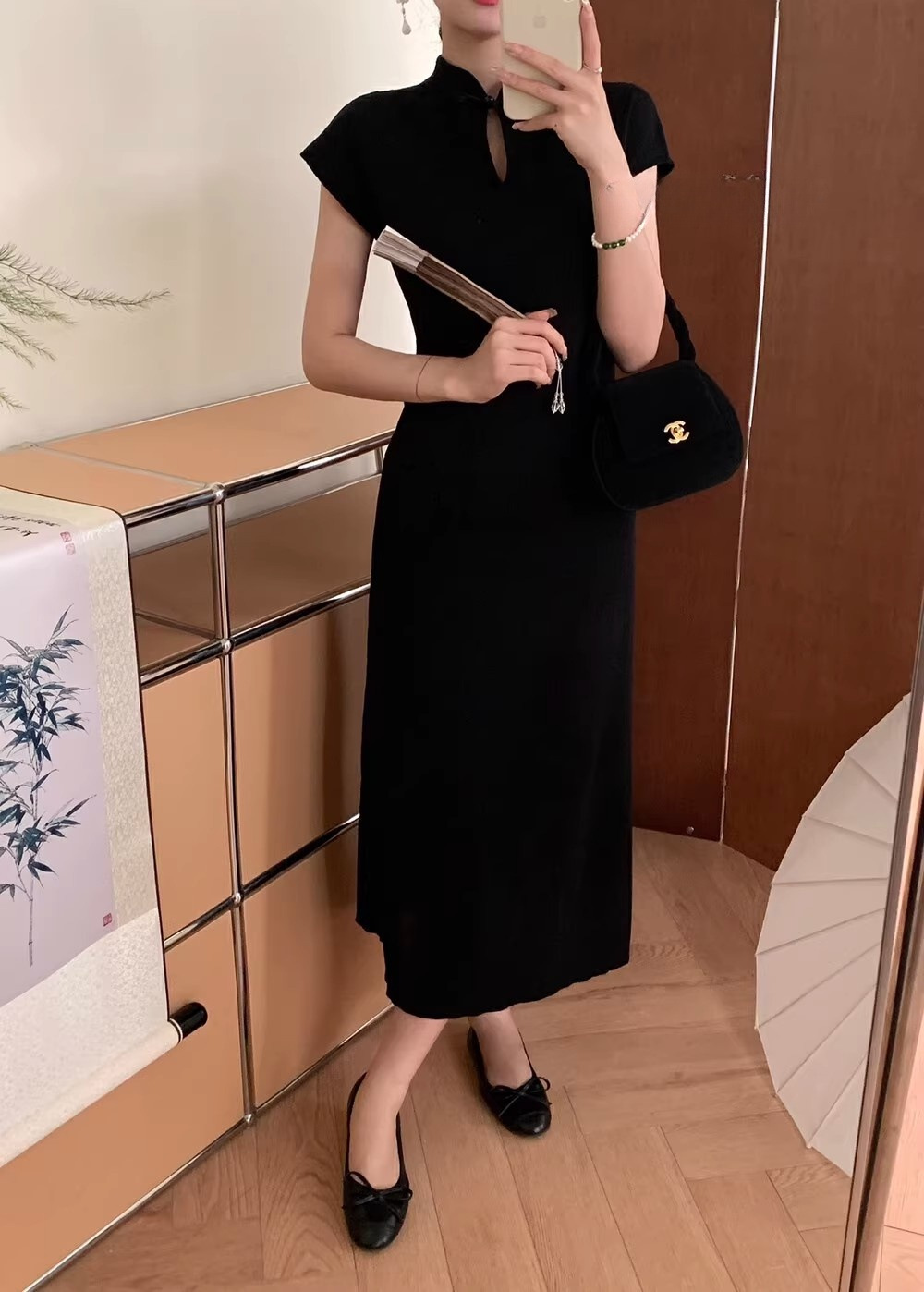 2024 여름 새로운 패션 국가 스타일 중국 개선 청삼 우아한 슬리밍 허리 우아한 원피스 긴 치마스토어 가기