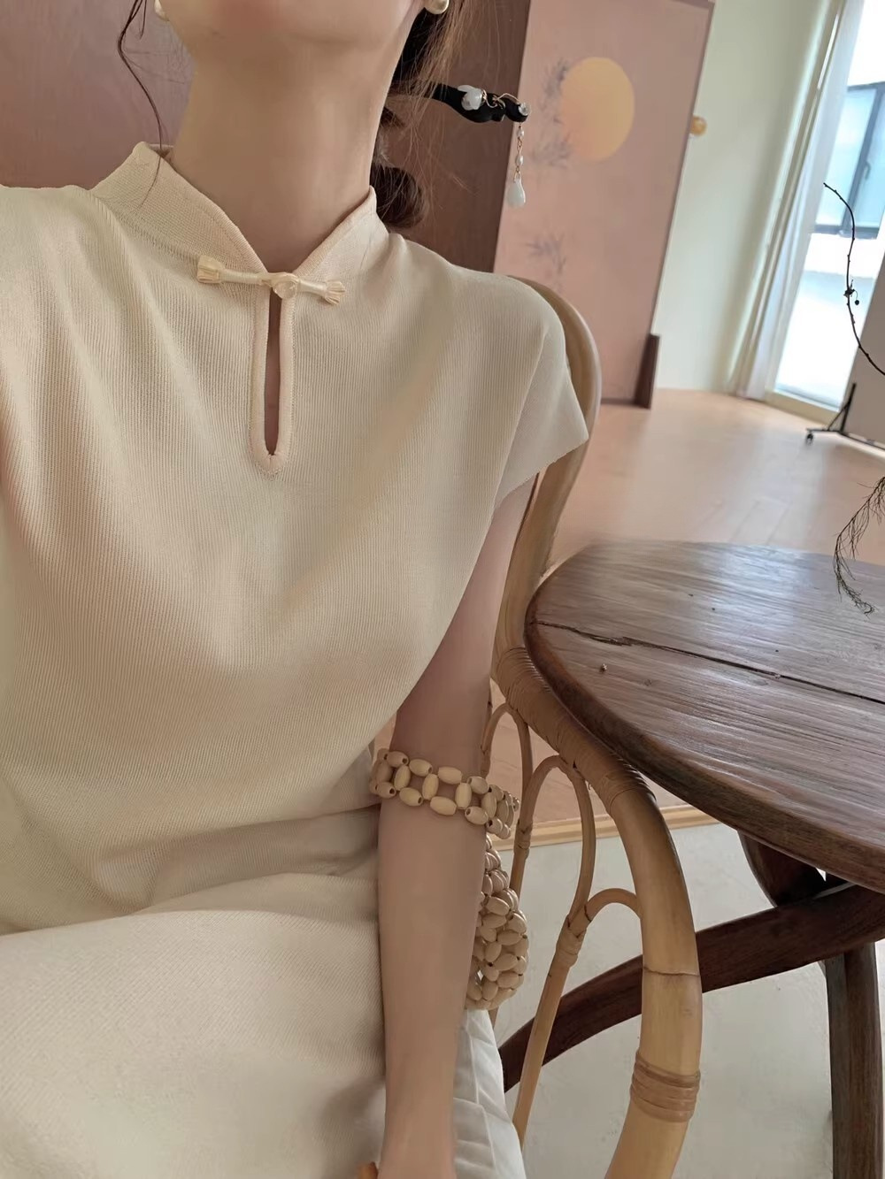 2024 여름 새로운 패션 국가 스타일 중국 개선 청삼 우아한 슬리밍 허리 우아한 원피스 긴 치마
