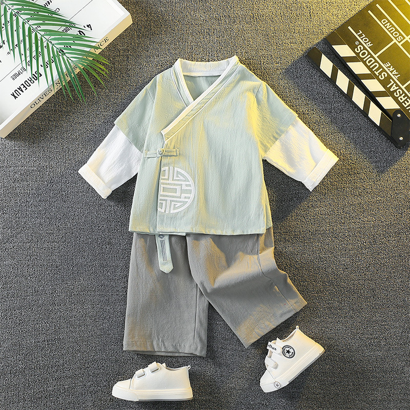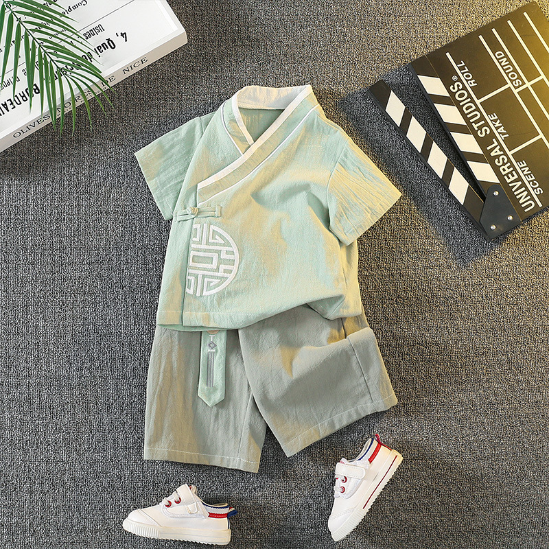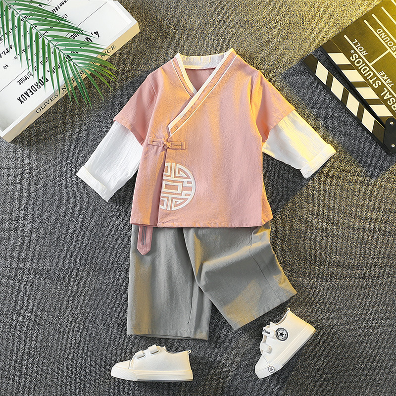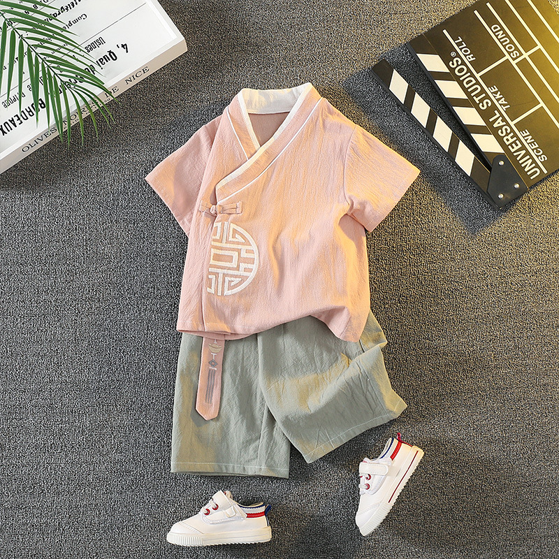 어린이 한푸 소년의 반팔 세트 소녀의 중국식 고대 당나라 세트 공연 세트 아기의 한 살 원피스 롱스토어 가기