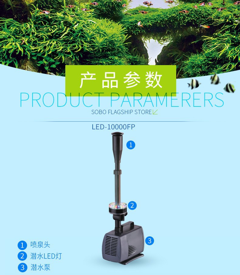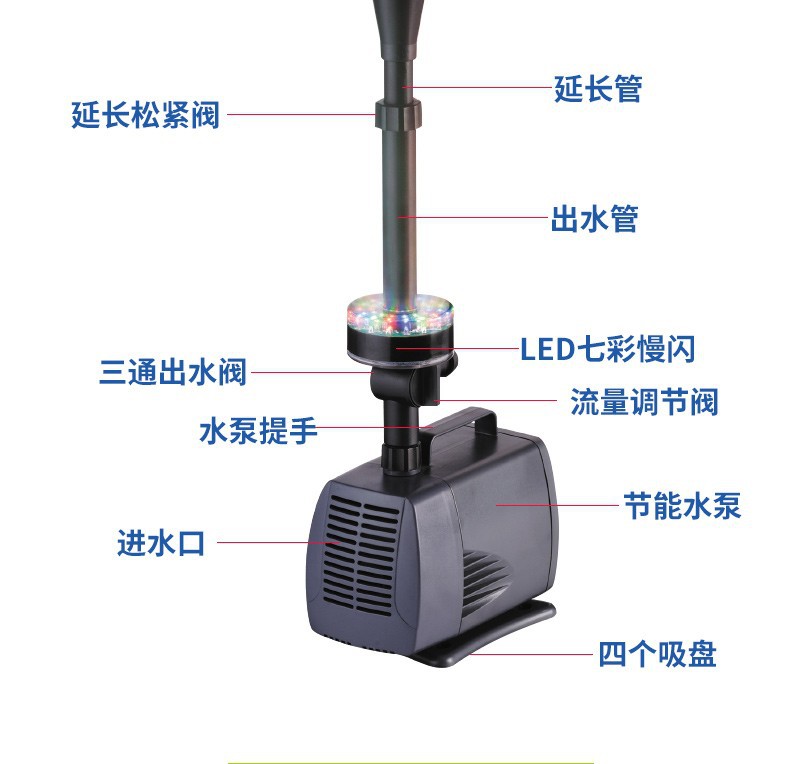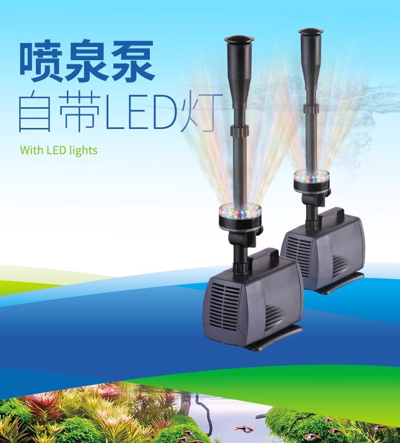 송바오 물고기 수영장 분수 펌프 어항 순환 펌프 컬러 조명 수영장 작은 분수 바위 잠수 펌프 풍경 분수 머리