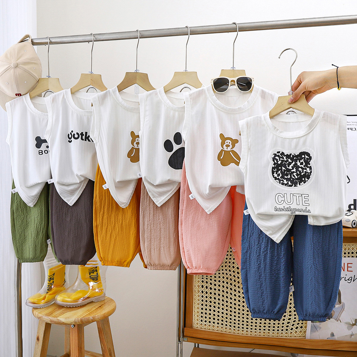 어린이 얇은 잠옷 소년과 소녀 여름 패션 홈 옷 어린이 통기성 옷 아기의 여름 옷