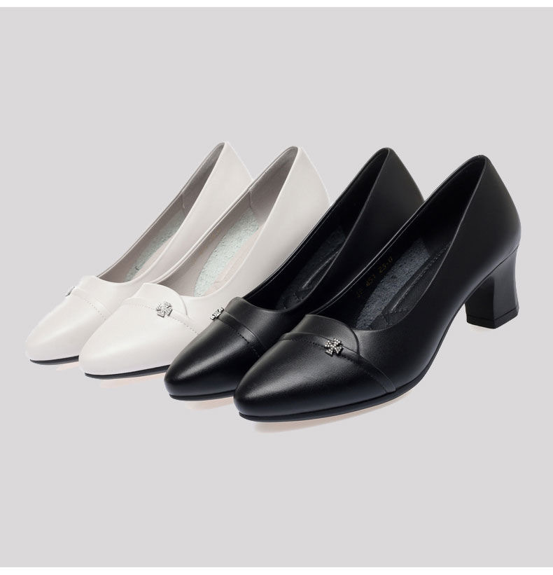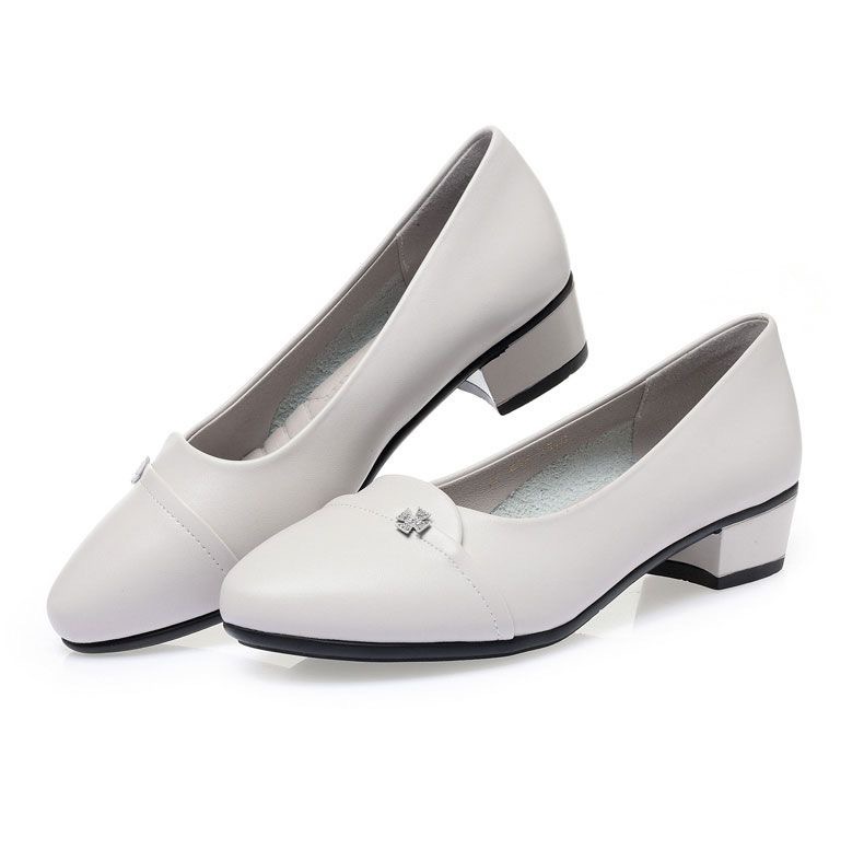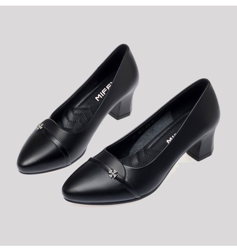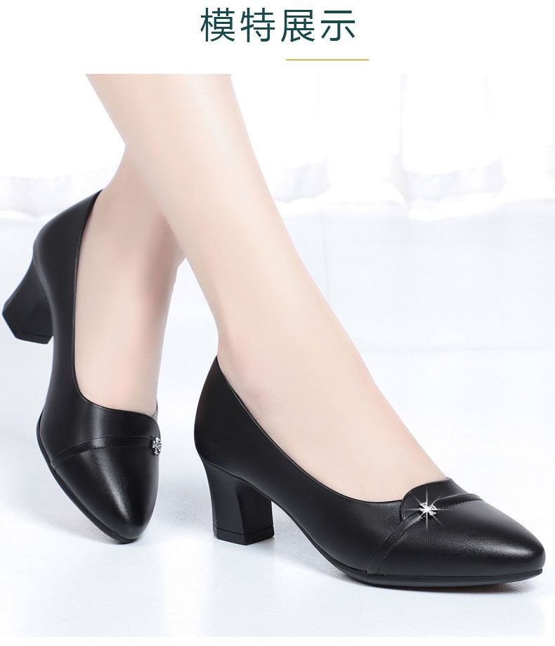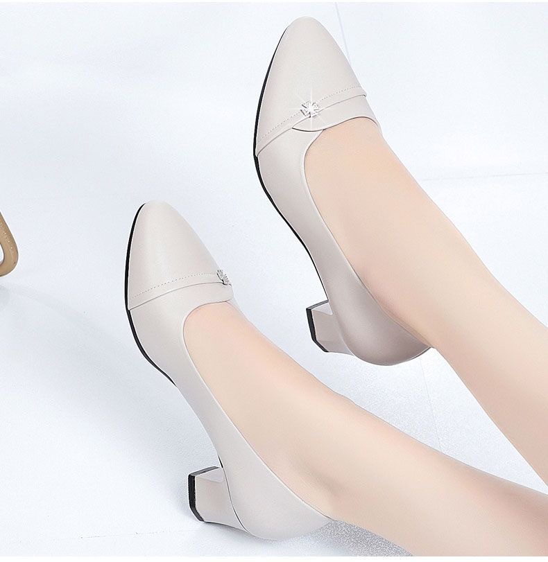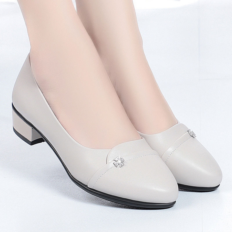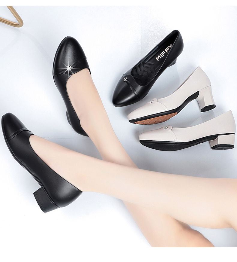 소프트 하단 소프트 가죽 청키 힐 미드 힐 싱글 레이어 신발 중년 엄마 2024 새로운 봄 및 가을 통근 모든 경기 캐주얼 싱글 레이어 신발 여성용