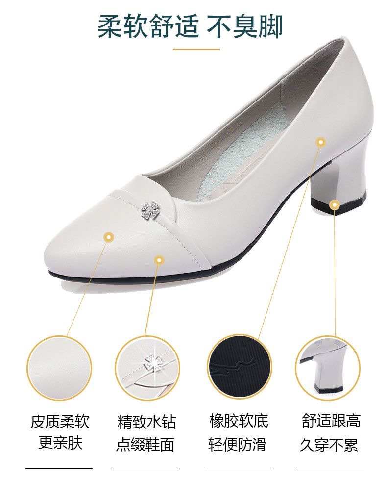소프트 하단 소프트 가죽 청키 힐 미드 힐 싱글 레이어 신발 중년 엄마 2024 새로운 봄 및 가을 통근 모든 경기 캐주얼 싱글 레이어 신발 여성용스토어 가기