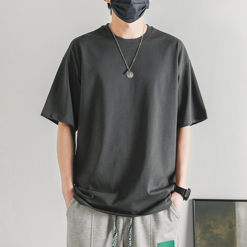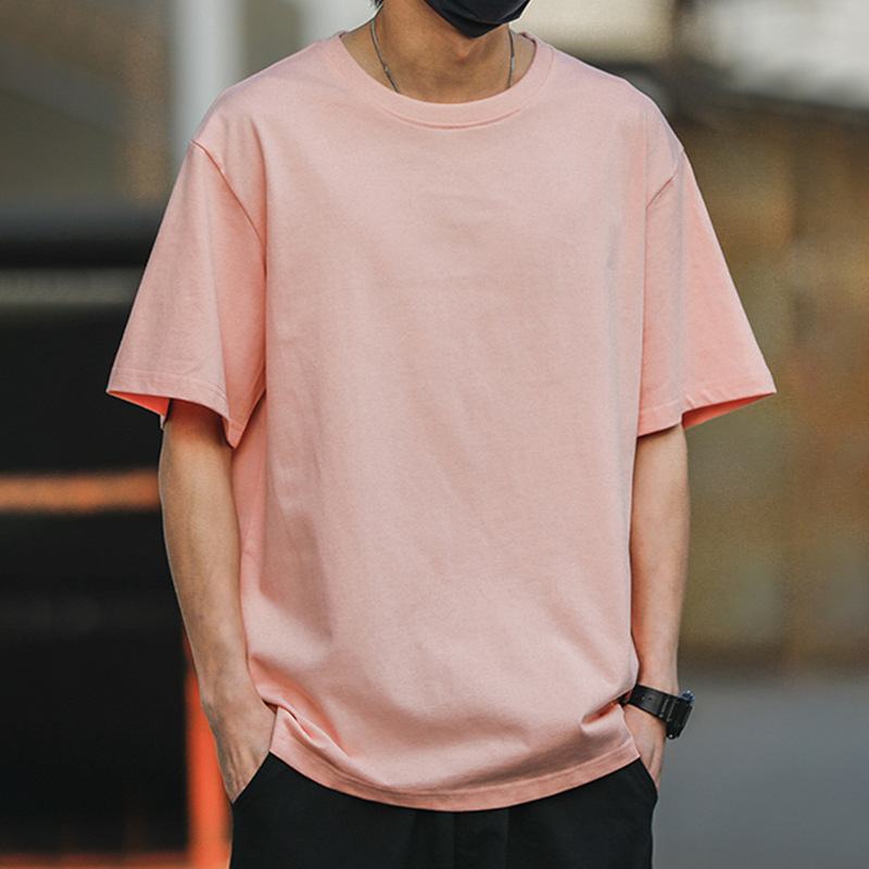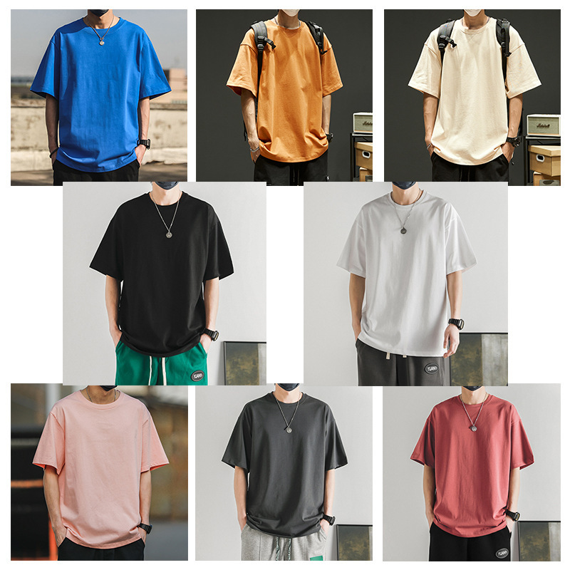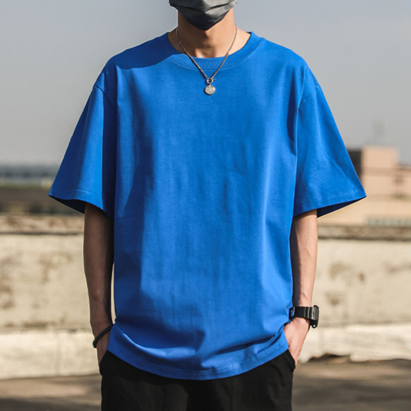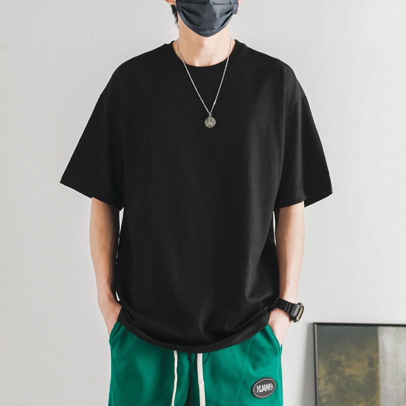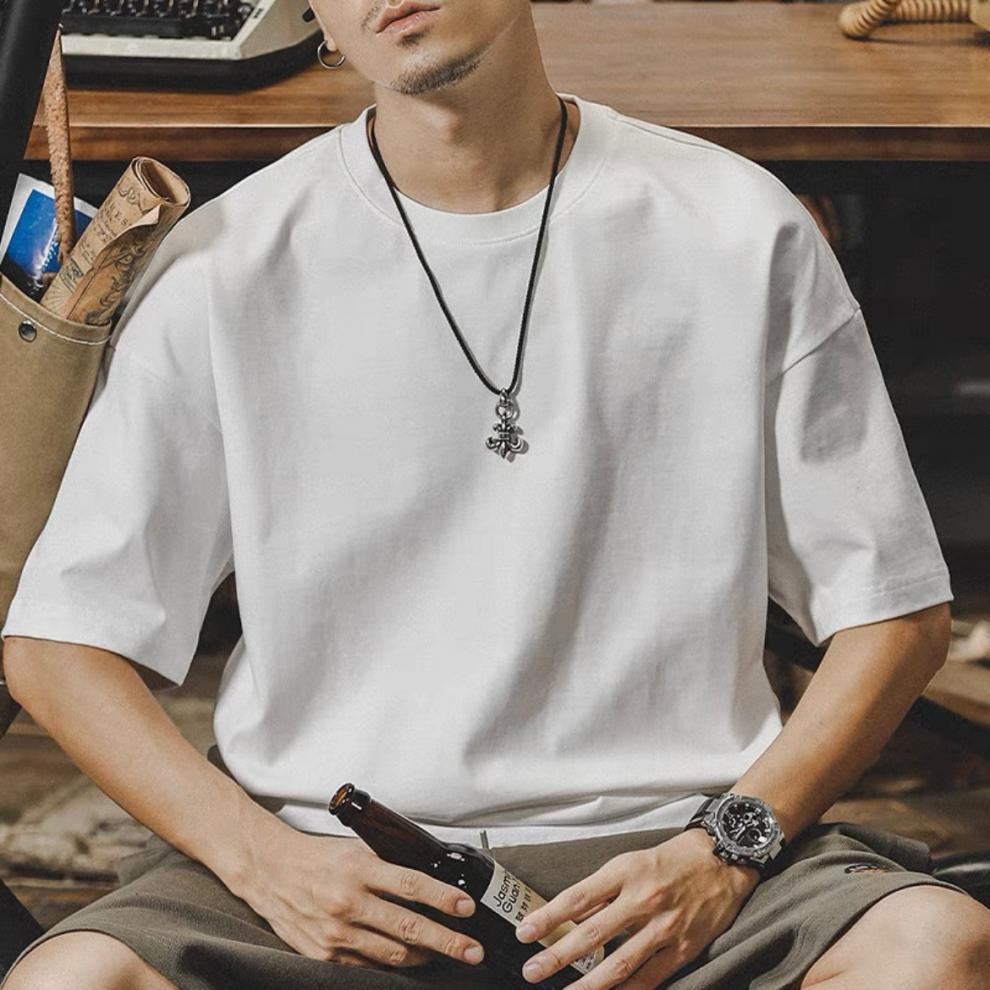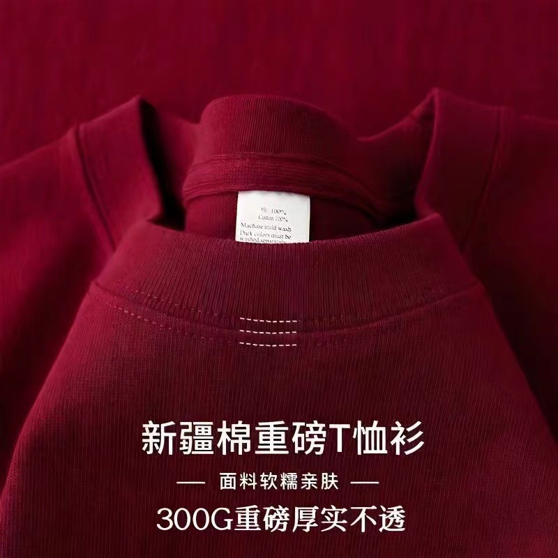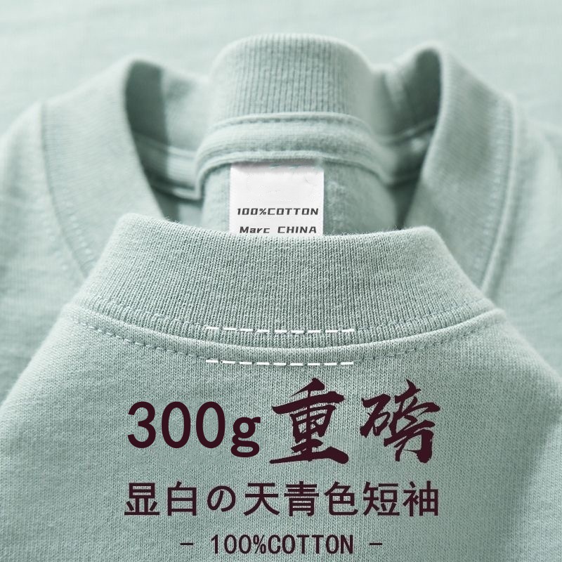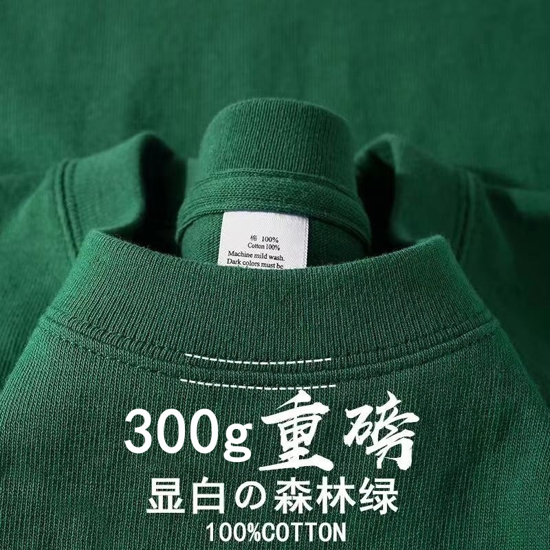 미국 300g 무거운면 반팔 티셔츠 남성용 둥근 목 느슨한 남성용 순수한 흰색 바닥 셔츠 2024 새 여름스토어 가기