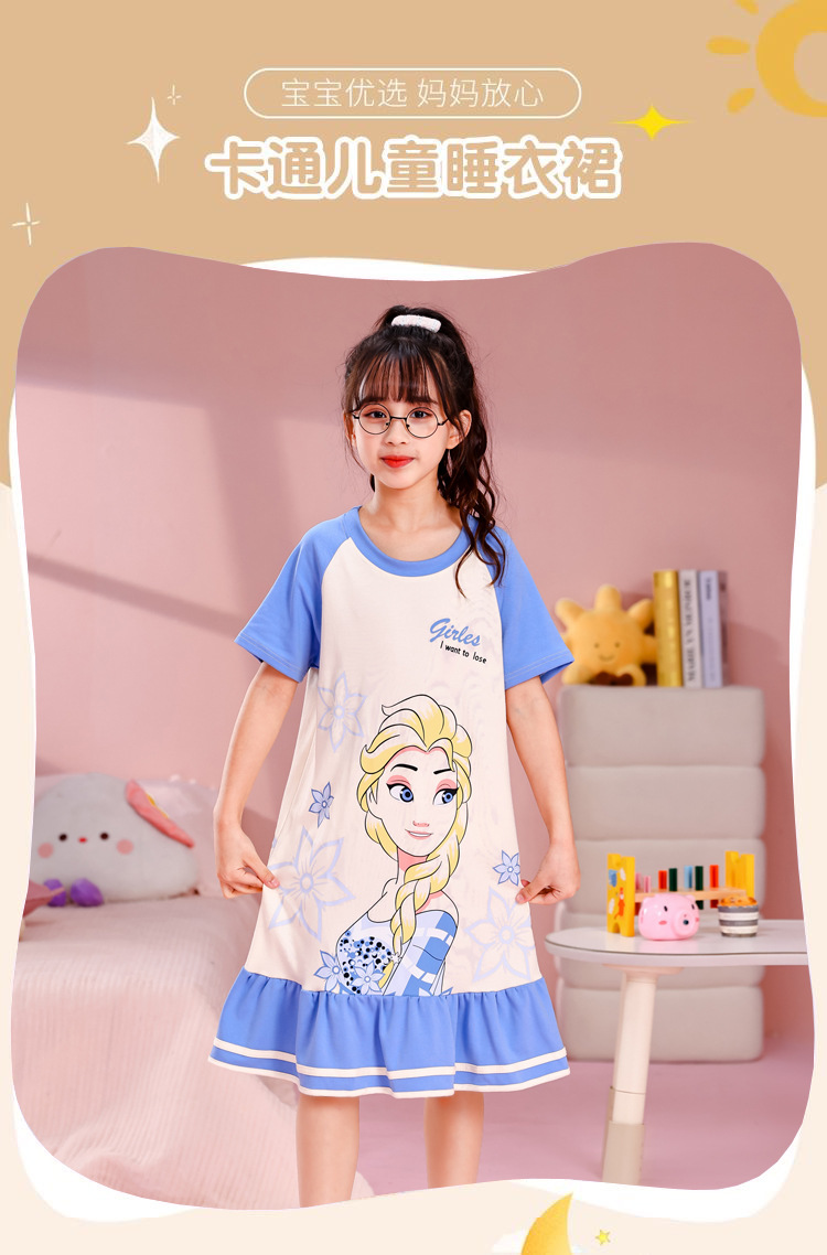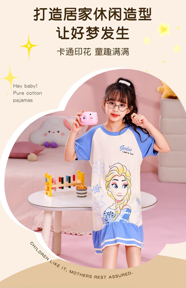 소녀 여름 잠옷 반팔 잠옷 소매 얇은 만화 어린이 복장 어린 소녀와 아기를위한 여름 에어컨 옷스토어 가기