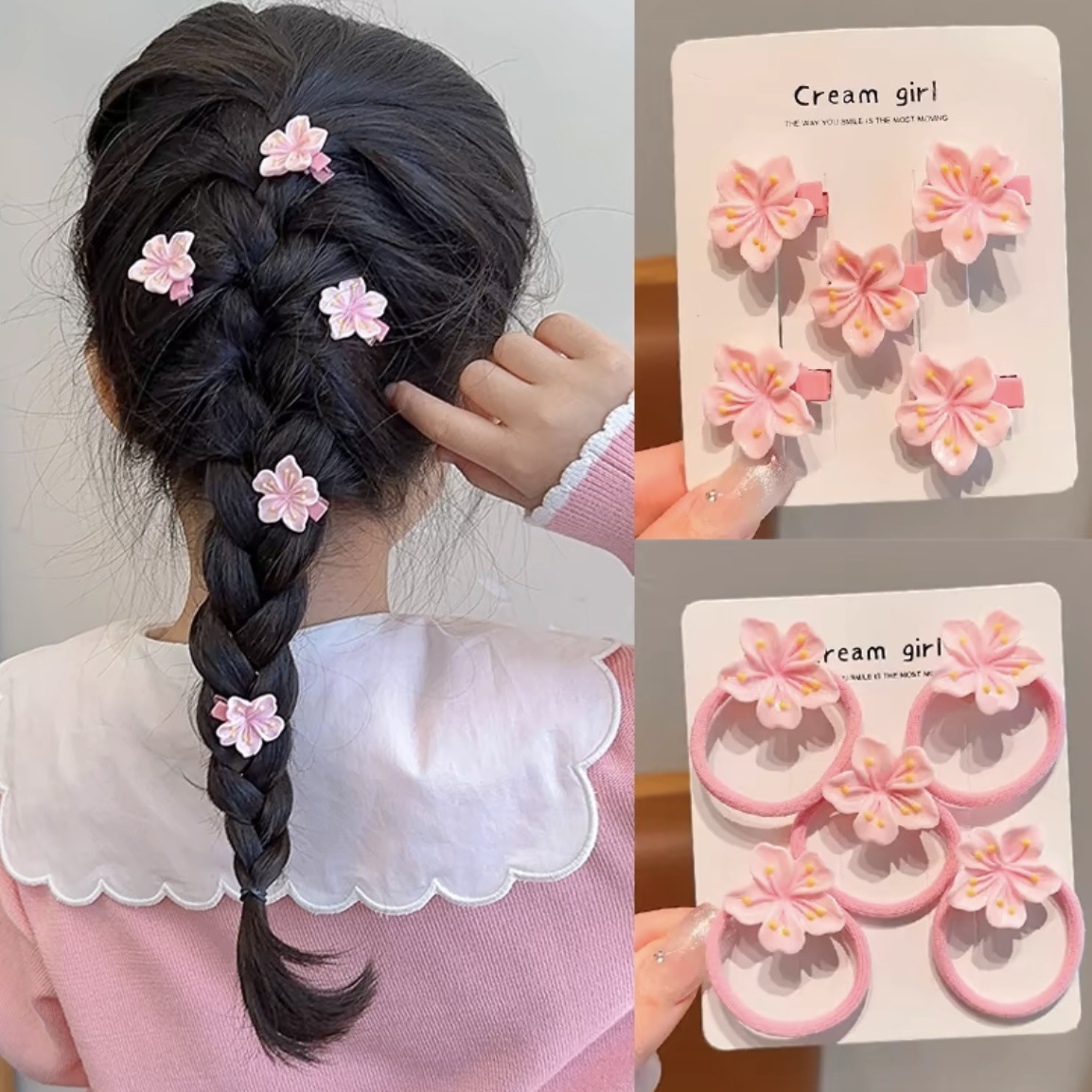벚꽃 머리핀 귀여운 달콤한 꽃 머리핀 어린 소녀 아무 해로운 머리 밧줄 머리 밧줄 아이들 핑크 헤드폰 클립스토어 가기
