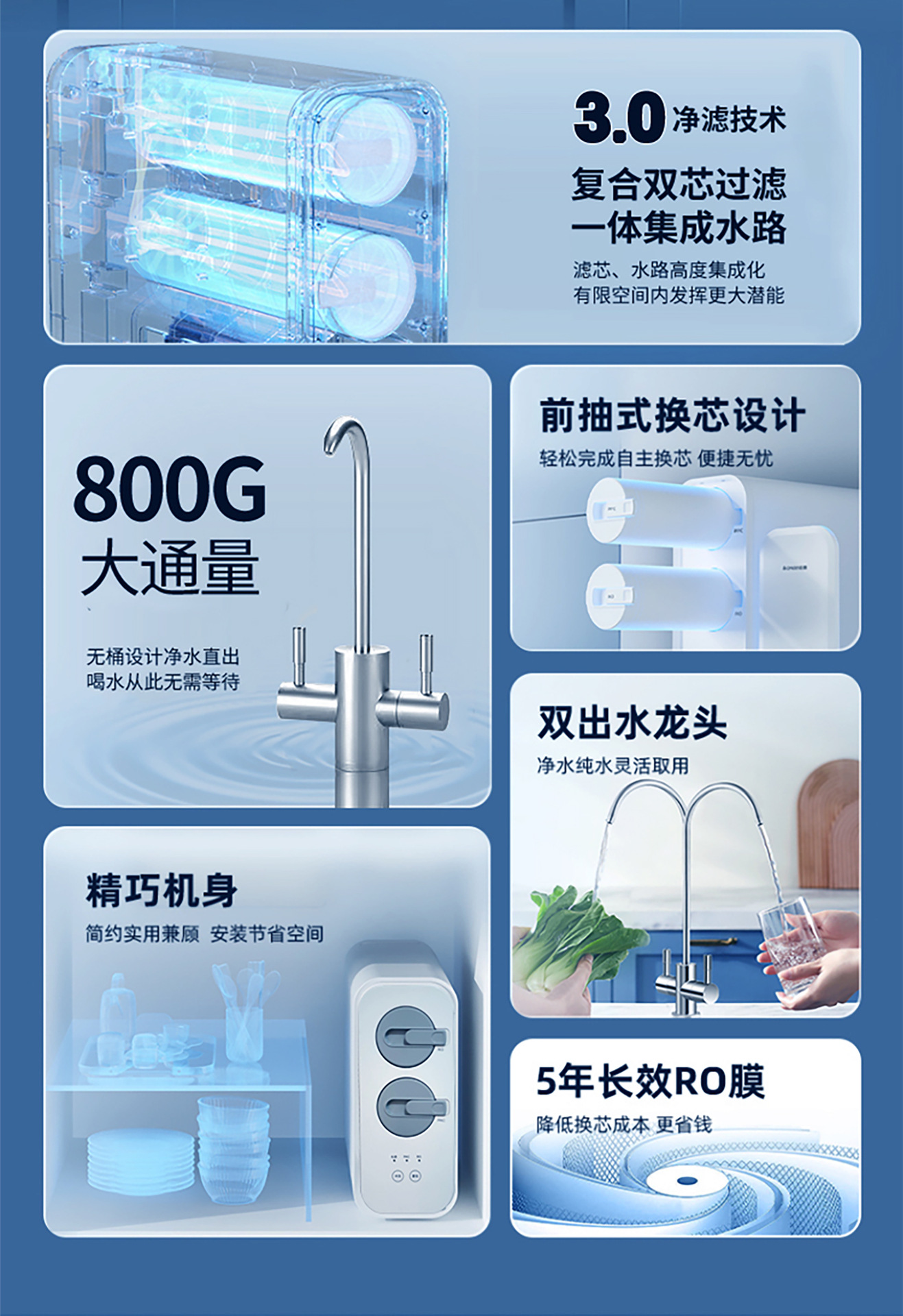 RO 두 배 물 800G 큰 흐름 직접 마시는 기계 제로 첸 물 가정용 정수기 지능형 주방 정수기 도매스토어 가기