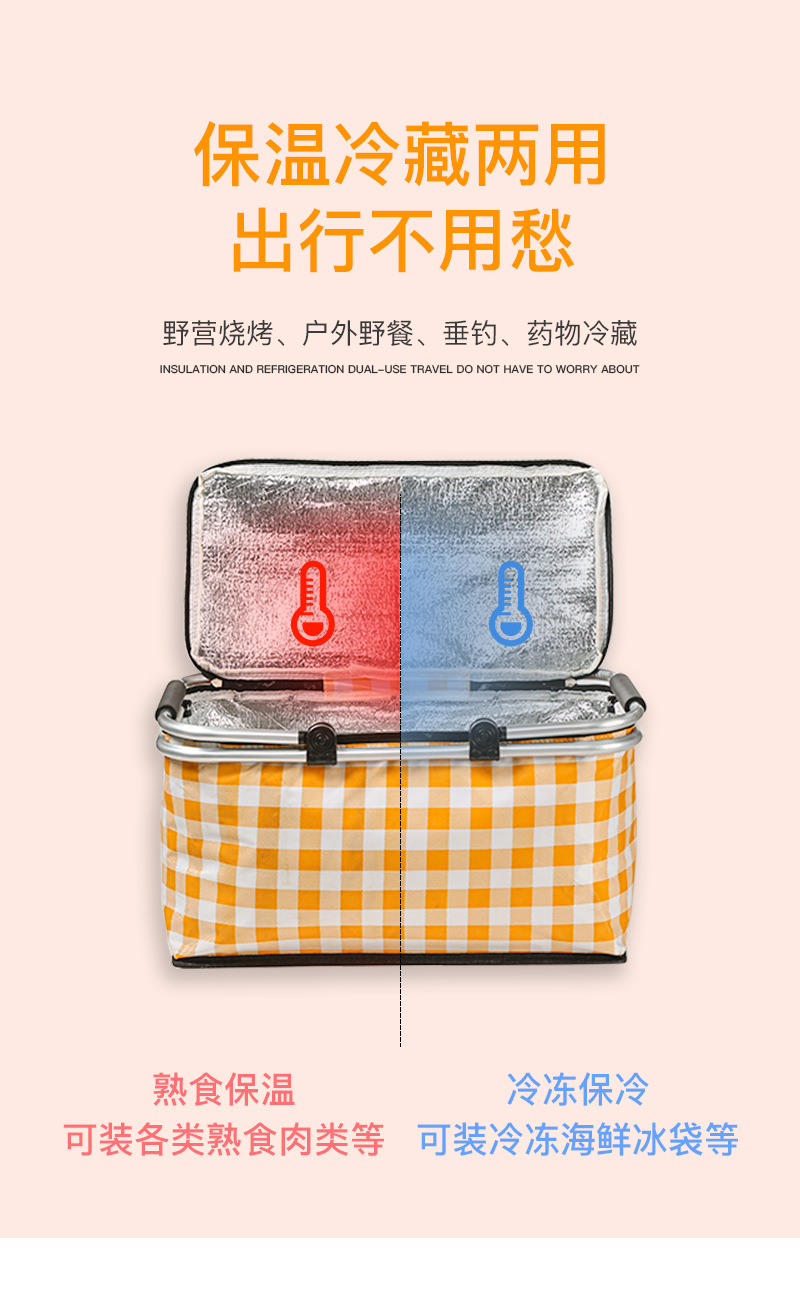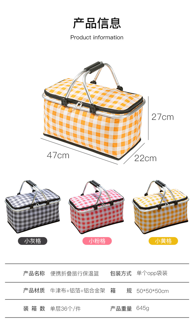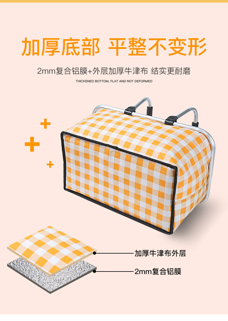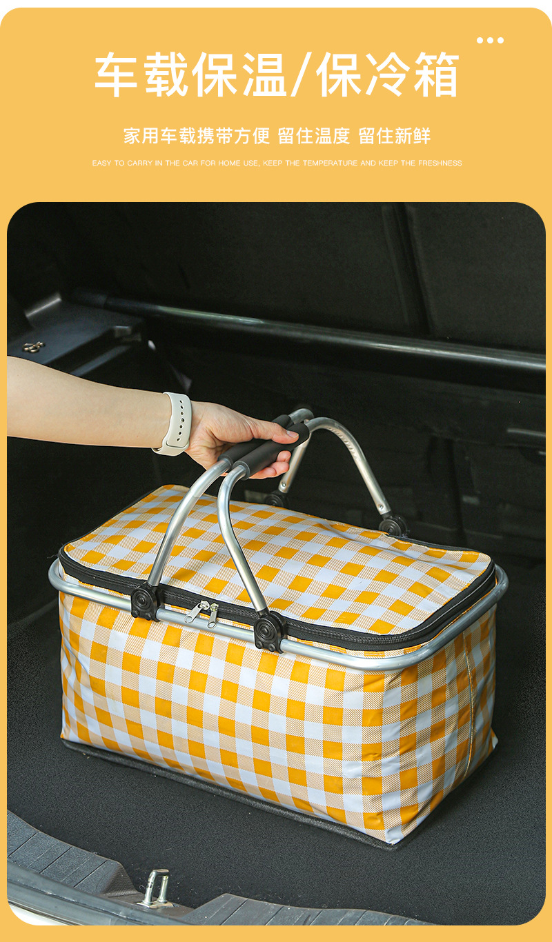 접이식 피크닉 바구니 대용량 야외 캠핑 단열 가방 휴대용 알루미늄 호일 두꺼운 패브릭 자동차 피크닉 가방 도매