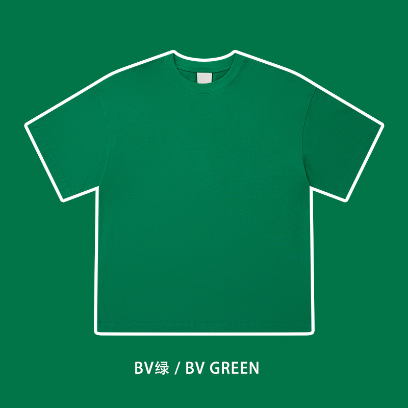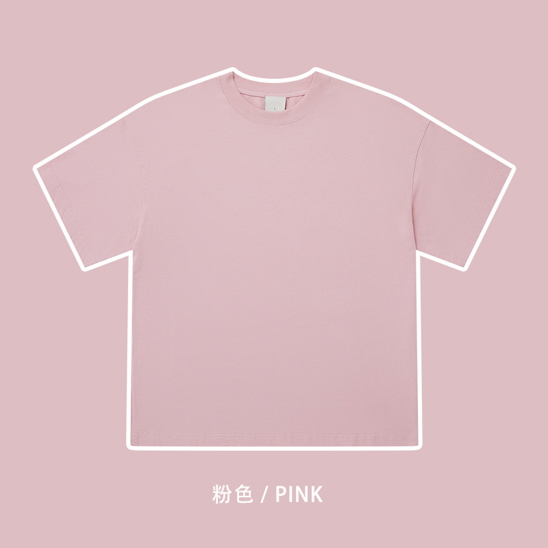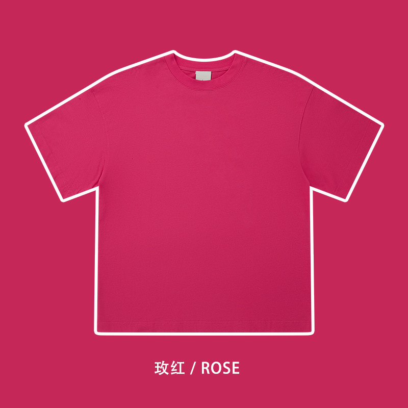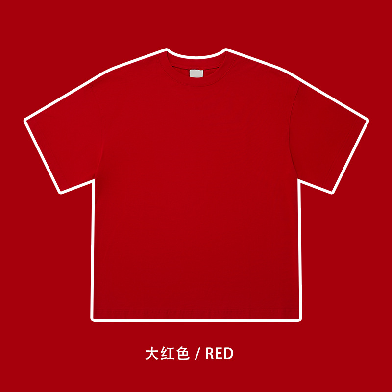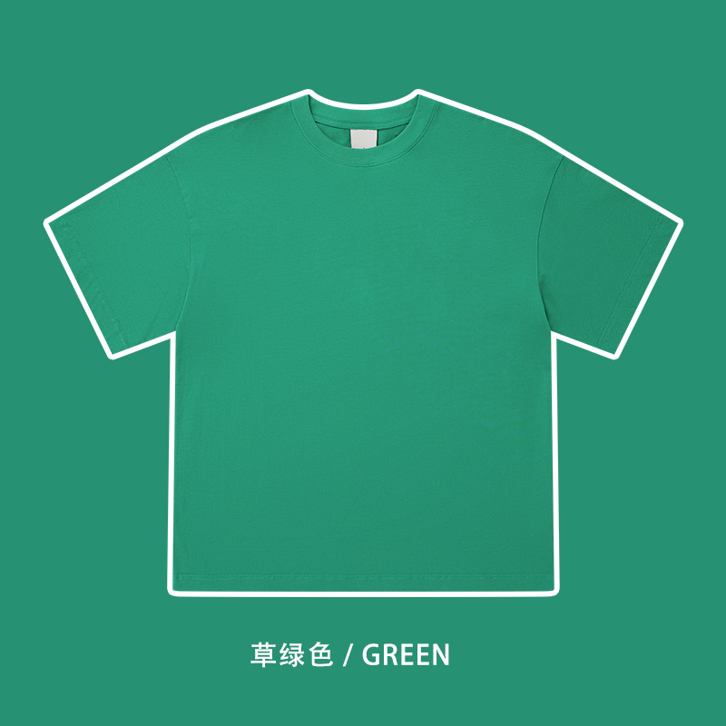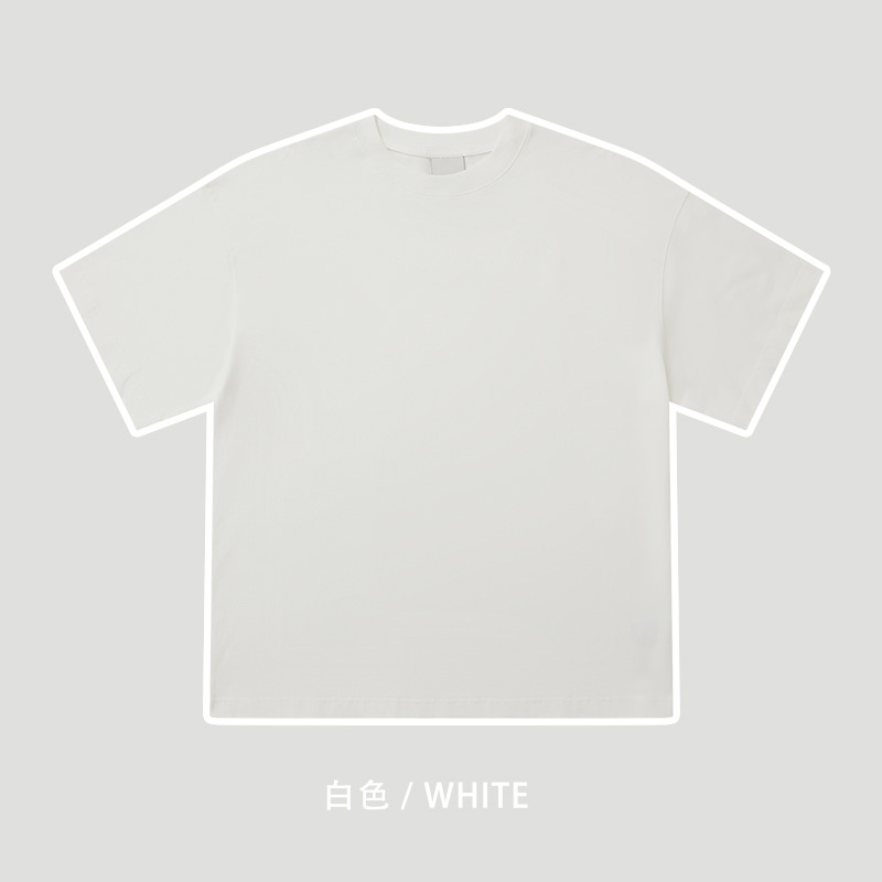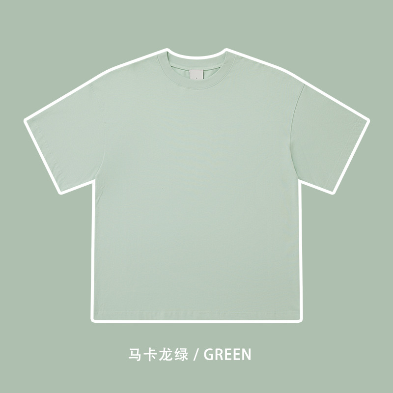 미국식 리틀 롱 커우 루즈 숄더코튼 짧은 소매 350g 두꺼운 남자 티셔츠 힙합 스트리트 조커