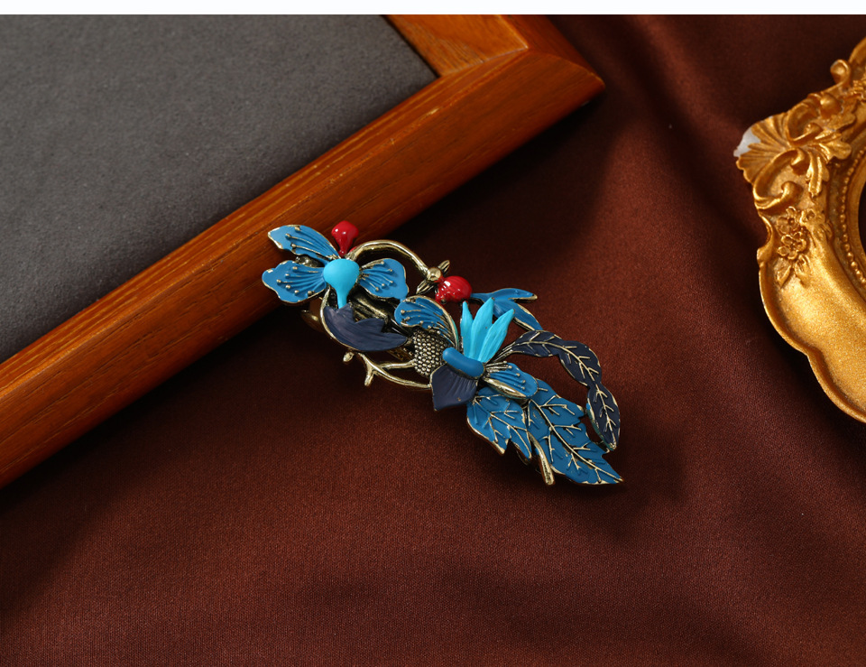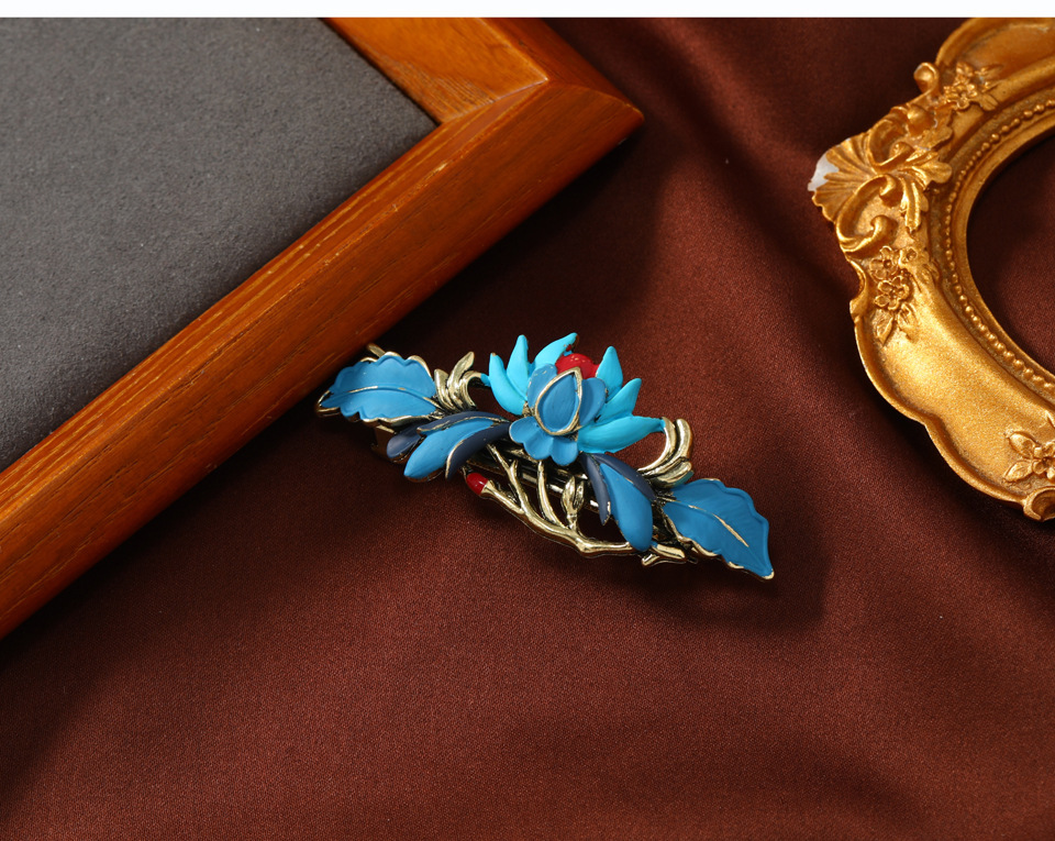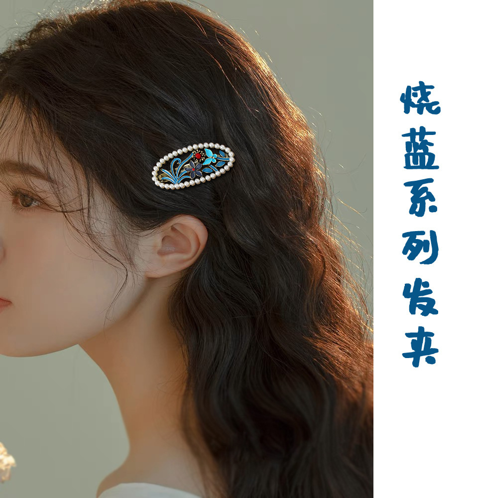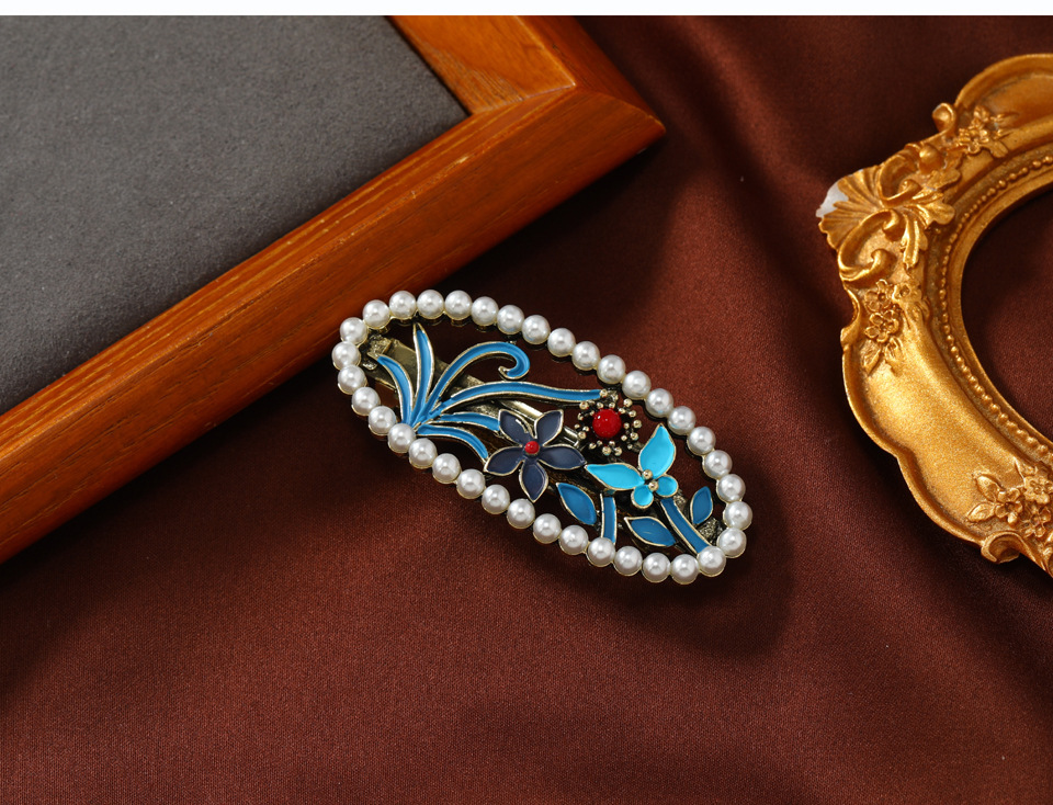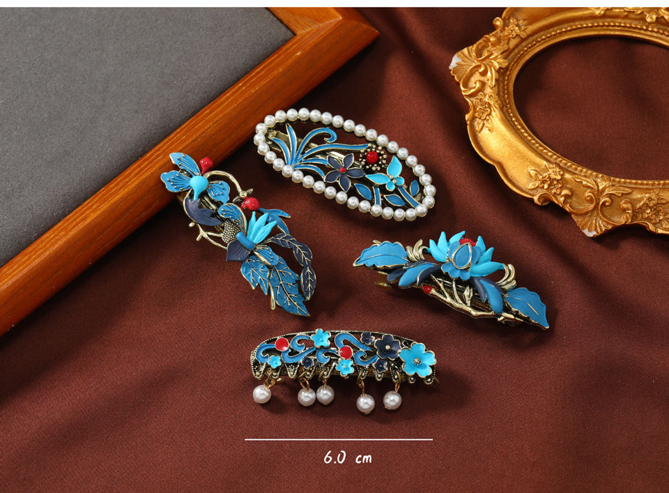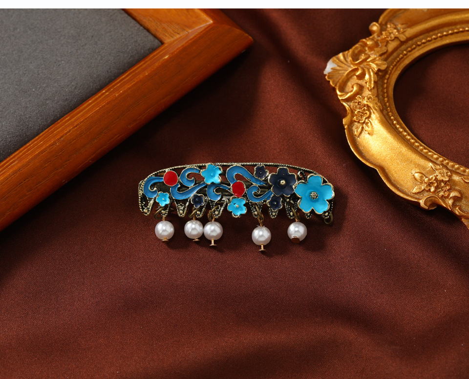 빈티지 국가 스타일 모조 불타는 푸른 꽃 봄 클립 여름 한후 머리 탑 클립 진주 술 헤어 액세서리 클립