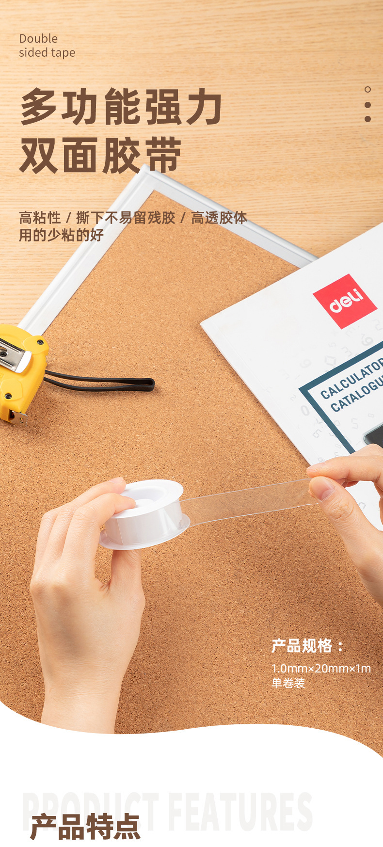델리 JL520/JL521 양면 투명 테이프 빨 나노 사무실 가정용 다기능 강한 테이프스토어 가기