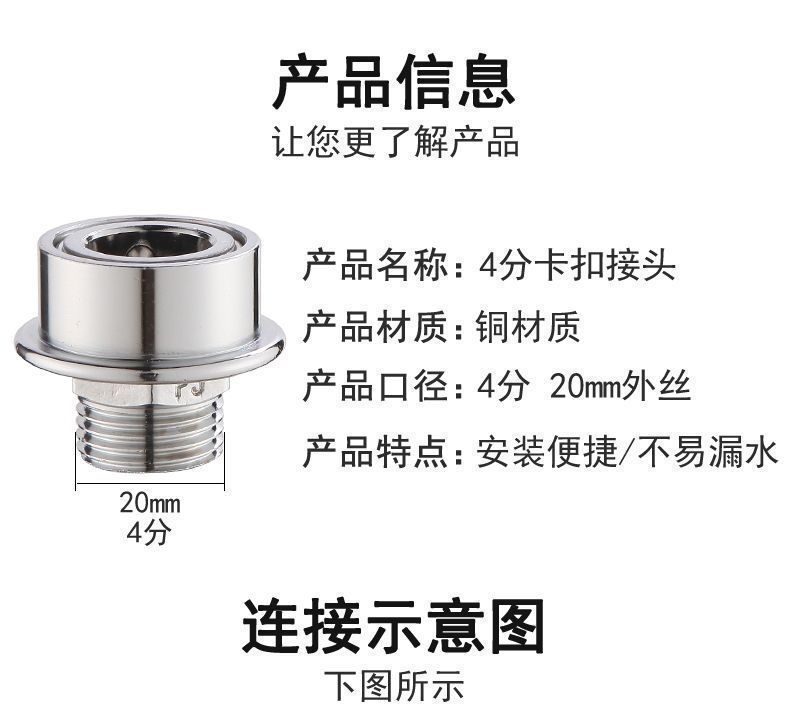 모든 구리 세탁기 물 입구 파이프 어댑터 식기 세척기 수도꼭지 물 입구 4 점에서 6 점까지의 빠른 연결 버클스토어 가기