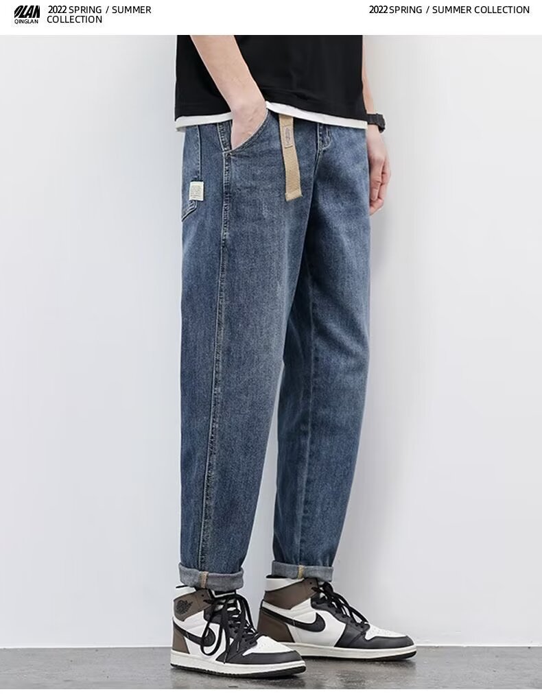 봄과 가을 청바지 남자의 느슨한 스트레이트 2024 여름 얇은 유행 브랜드 테이퍼 할란 남자의 캐주얼 발목 길이 바지스토어 가기
