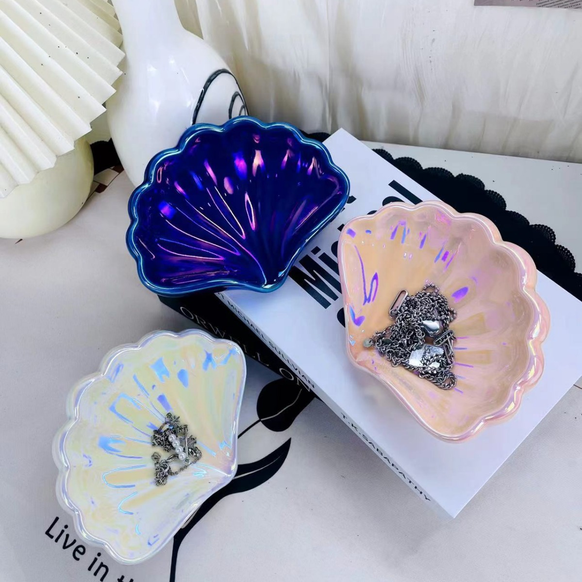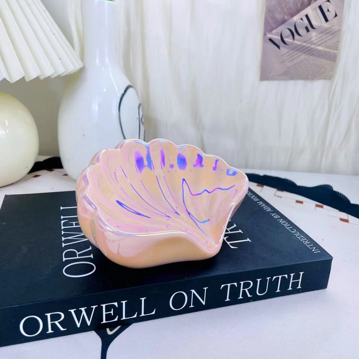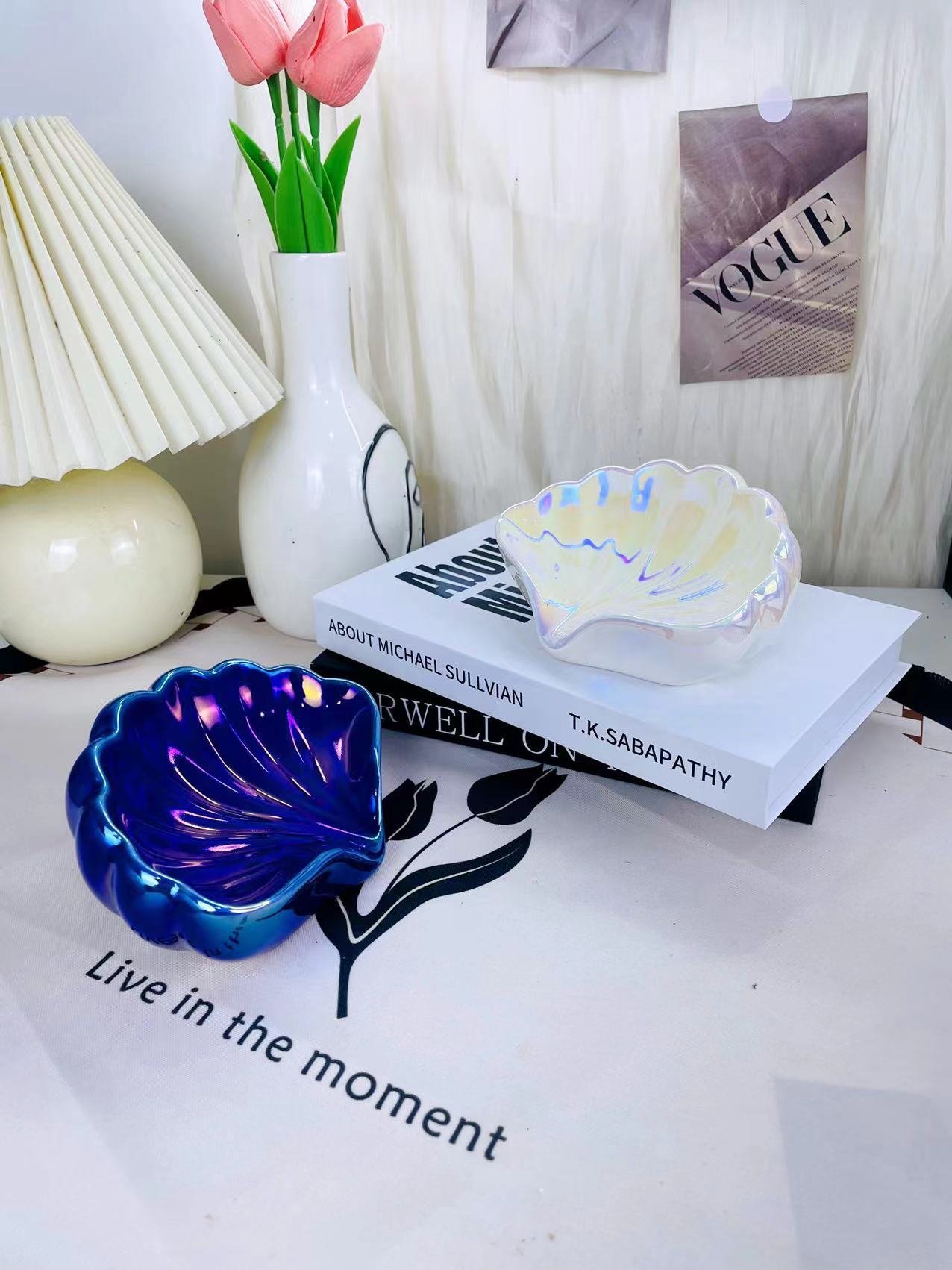가벼운 럭셔리 스타일 창조적 인 세라믹 가정용 비누 상자 쉘 배수 비누 상자 고급 비 천공 비누 랙 손 선물스토어 가기