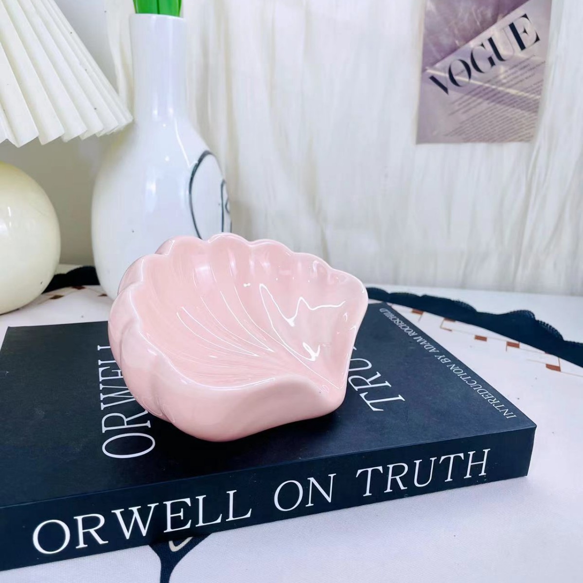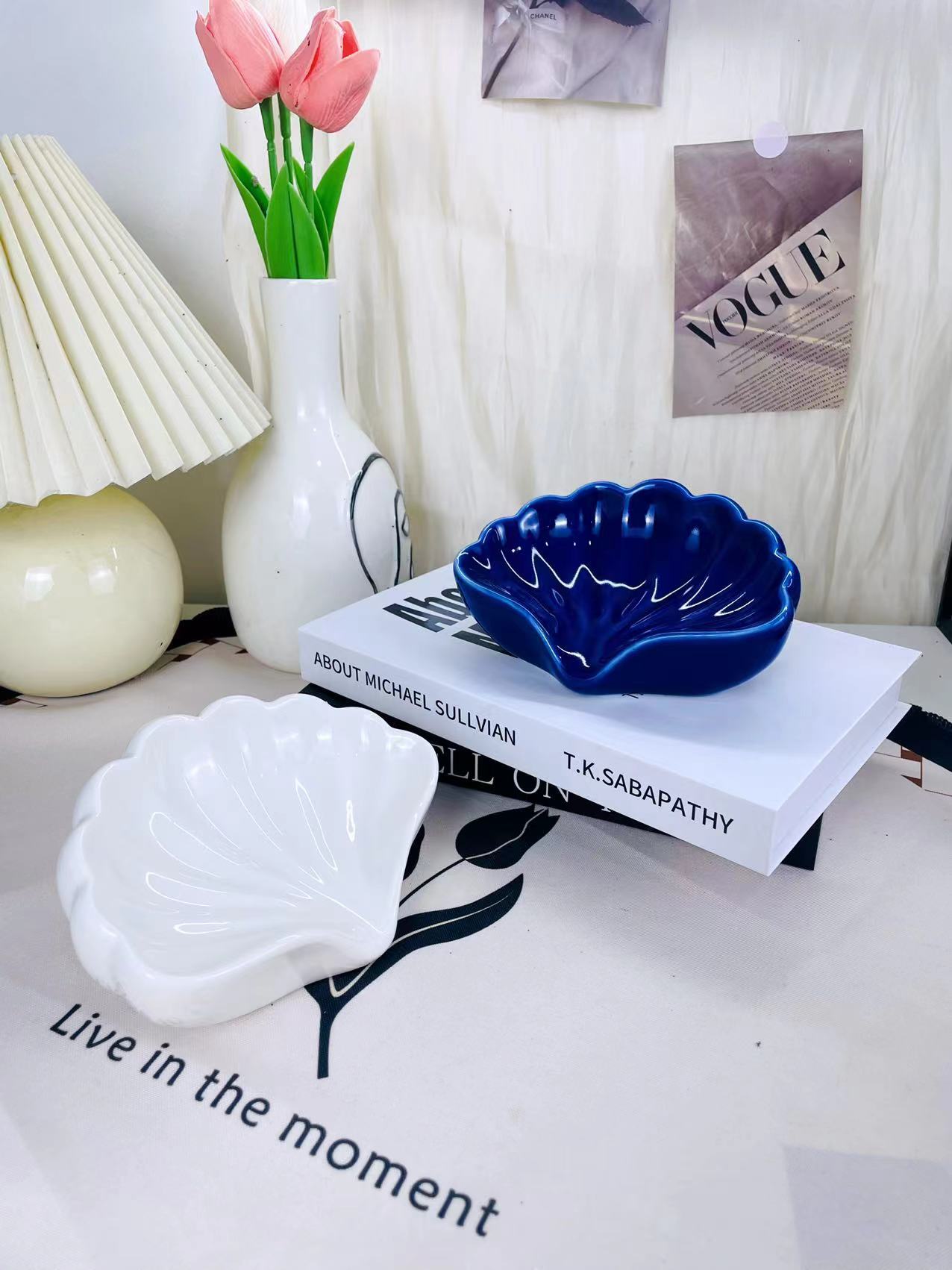 가벼운 럭셔리 스타일 창조적 인 세라믹 가정용 비누 상자 쉘 배수 비누 상자 고급 비 천공 비누 랙 손 선물