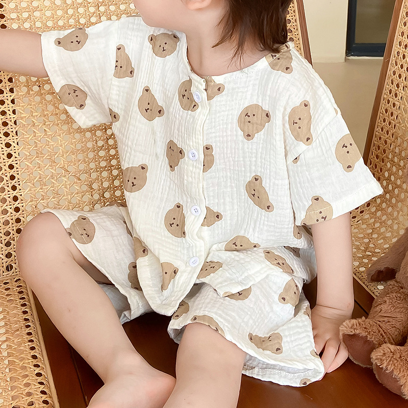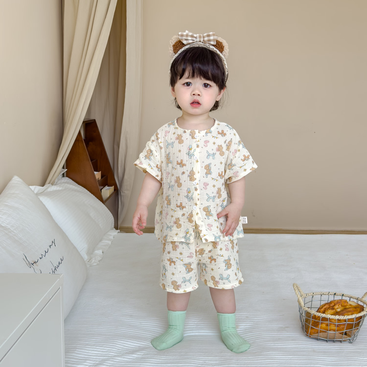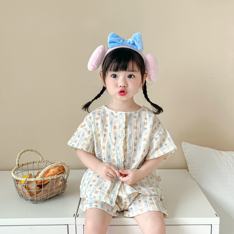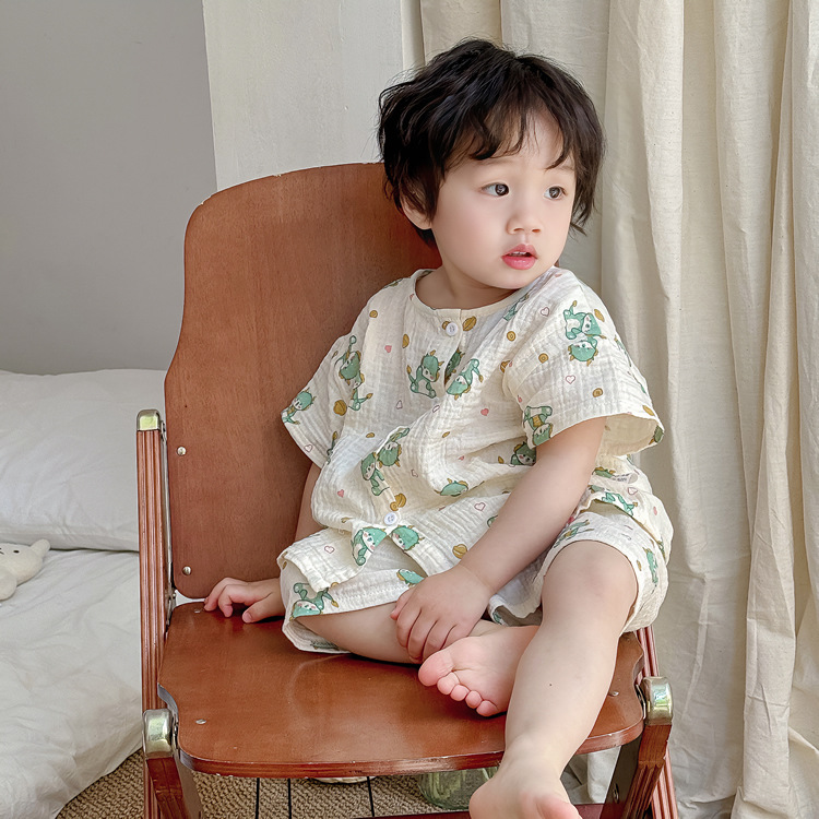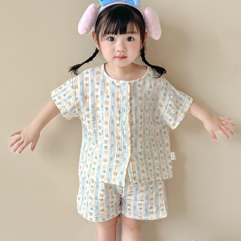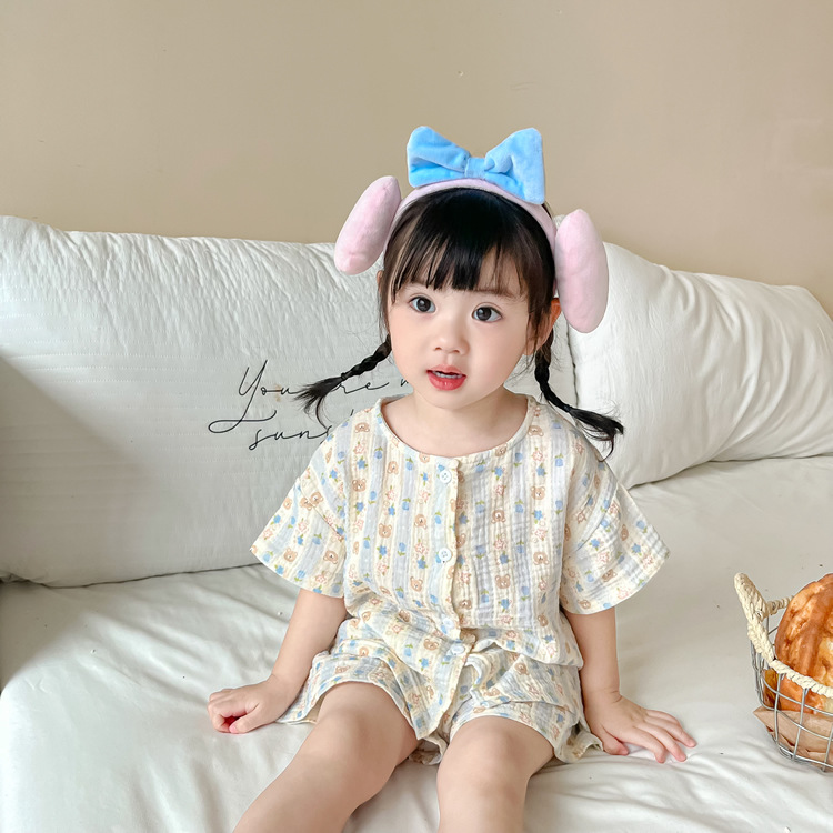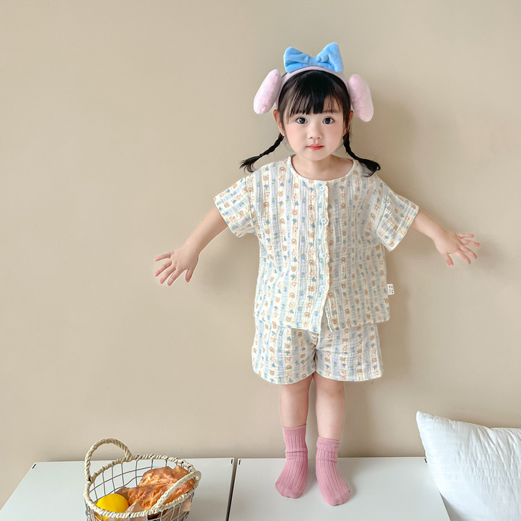 한국식 어린이 잠옷 세트 순면 얇은 아기 면 원사 홈 옷 숨 쉬는 짧은 소매 에어컨 소년 소녀 용 옷스토어 가기