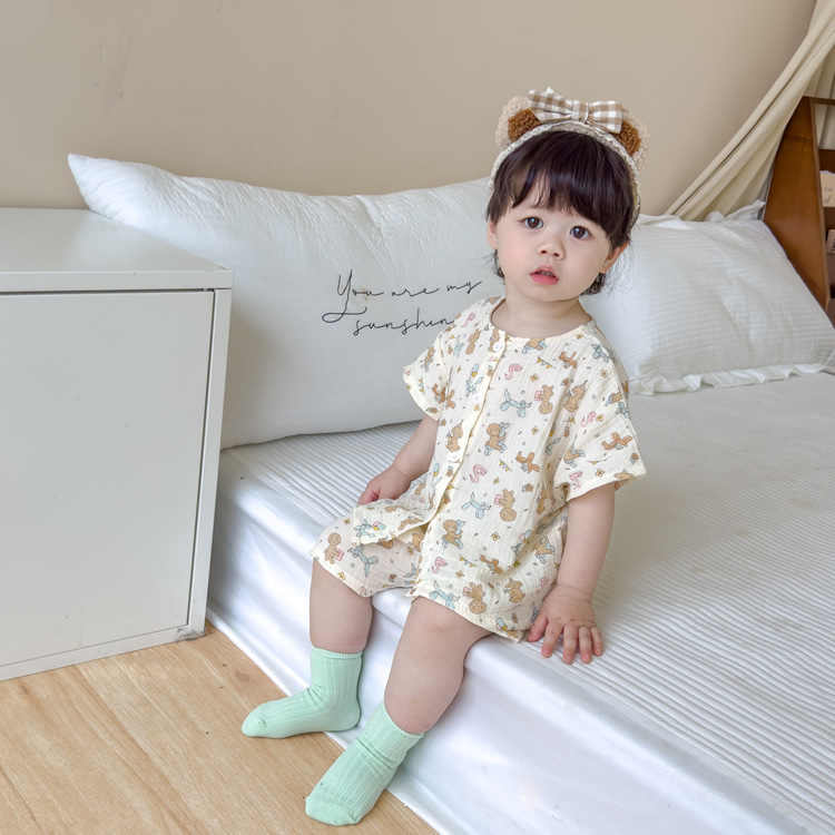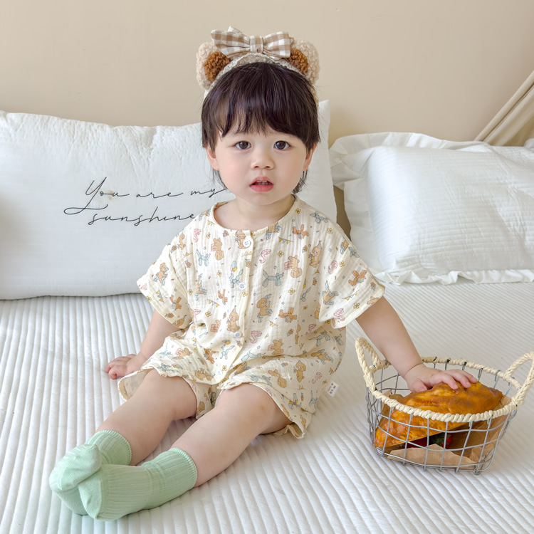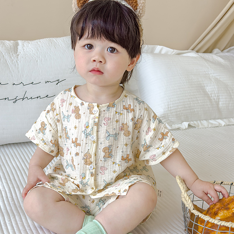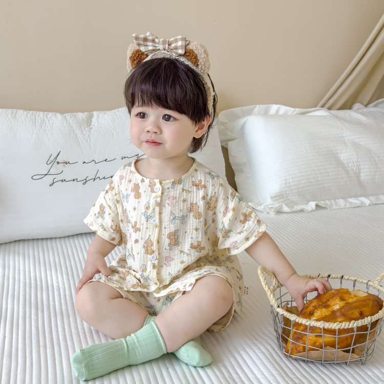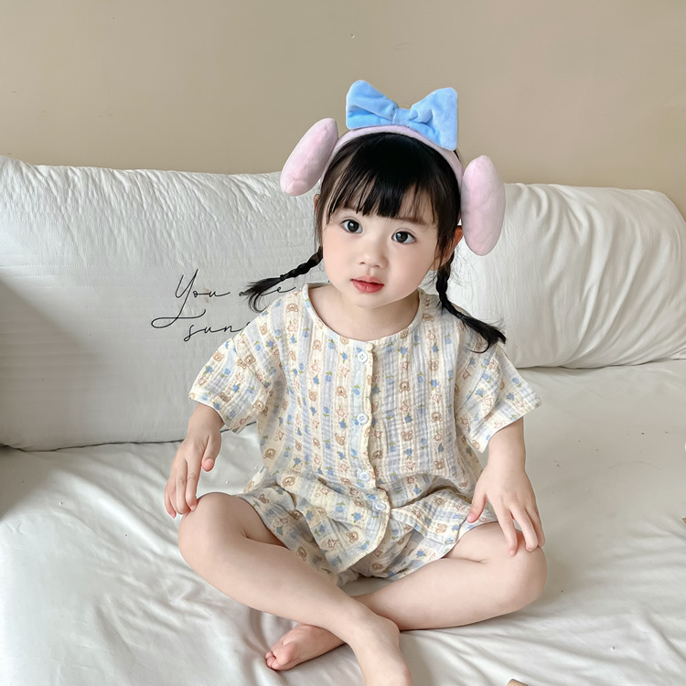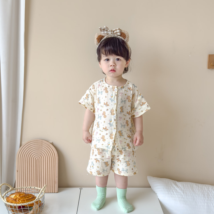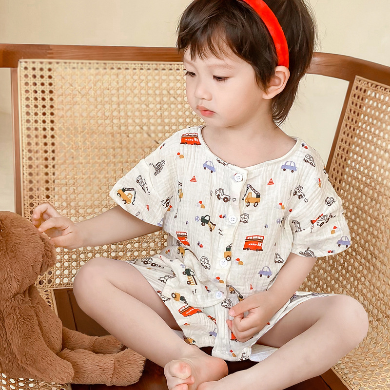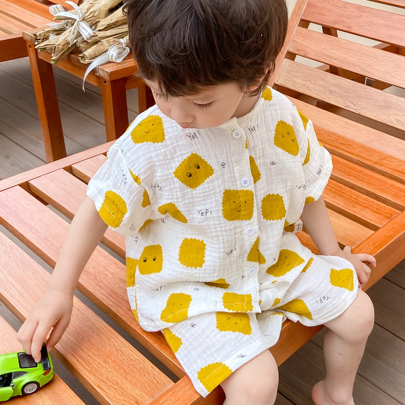 한국식 어린이 잠옷 세트 순면 얇은 아기 면 원사 홈 옷 숨 쉬는 짧은 소매 에어컨 소년 소녀 용 옷스토어 가기