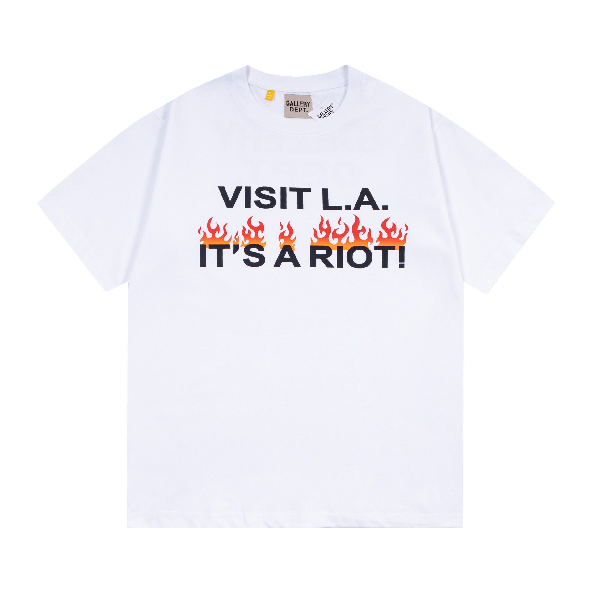 24S 국경 유럽 및 미국 패션 브랜드 갤러리 부서 불꽃 편지 인쇄 반팔 티셔츠 남성 및 여성 하이 스트리트 반소매 셔츠스토어 가기
