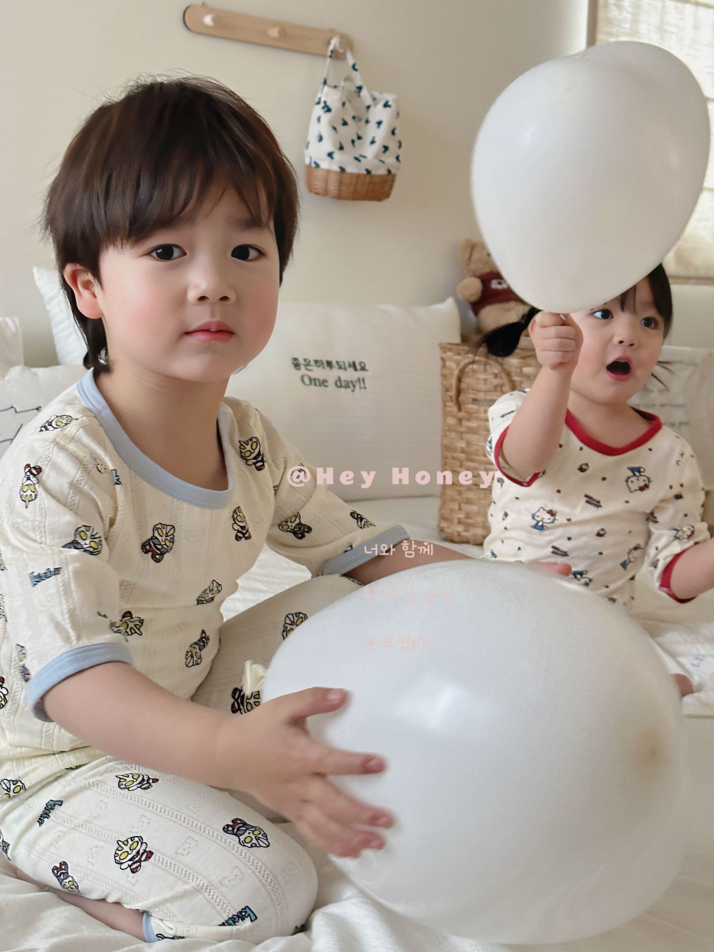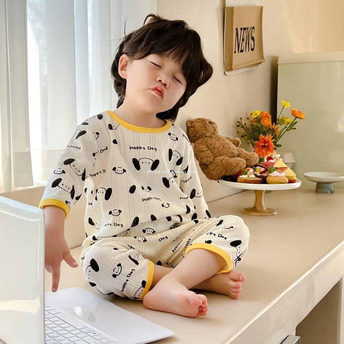 중공 통기성 100 순면 한국식 7 점 슬리브 에어컨 의류 A 남녀 아기 홈 의류 파자마 세트스토어 가기