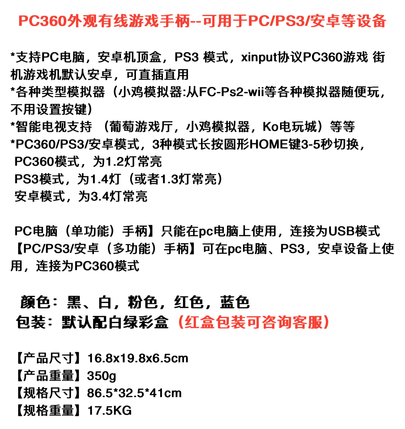 XBOX360 유선 올인원 노트북 스위치 게임 패드 드라이브 무료 USB 인터페이스 P3.