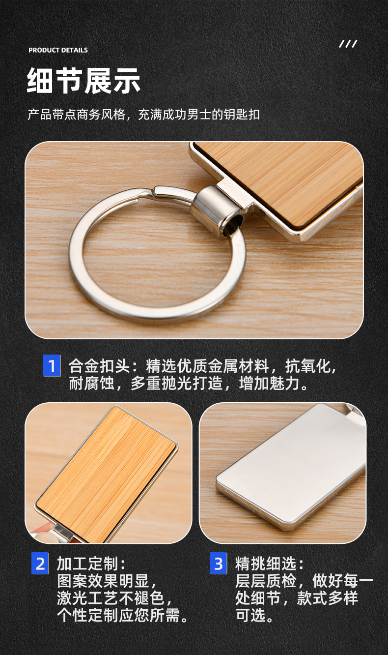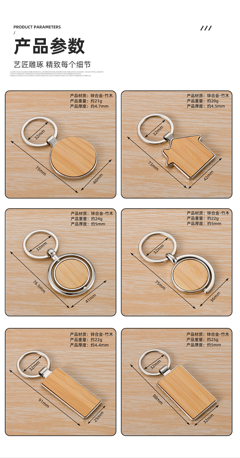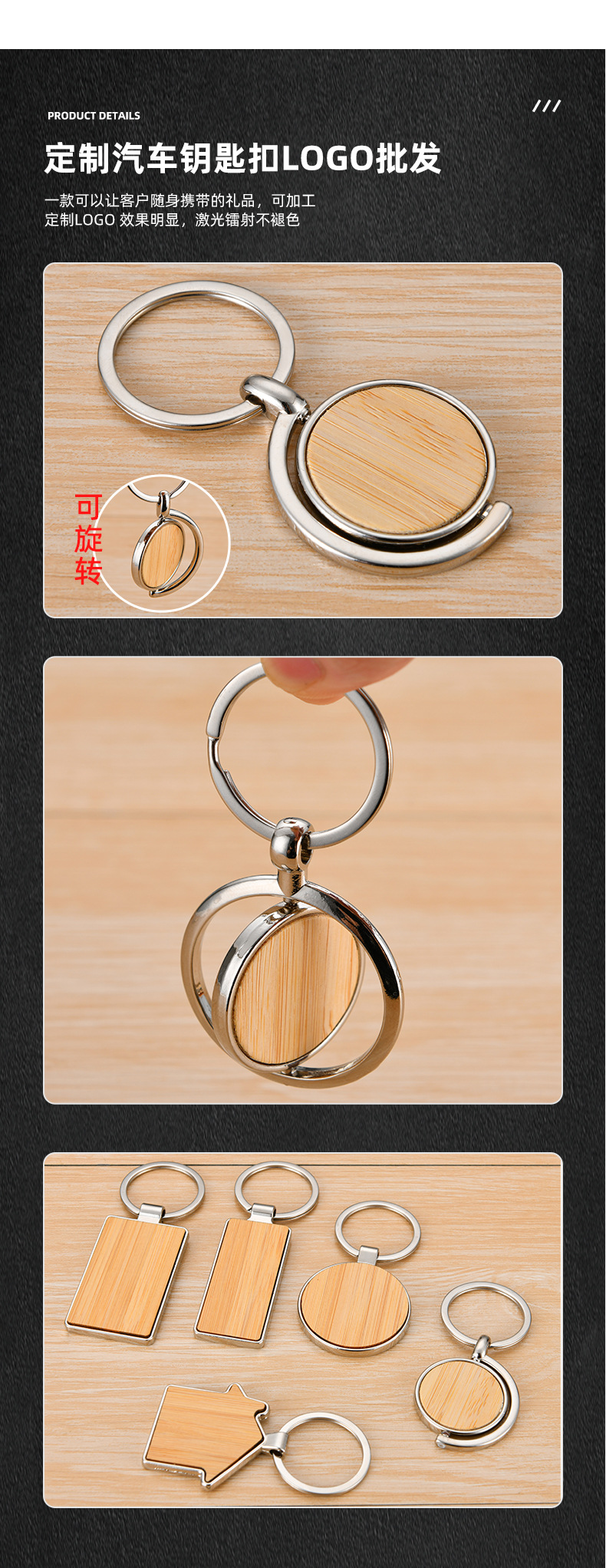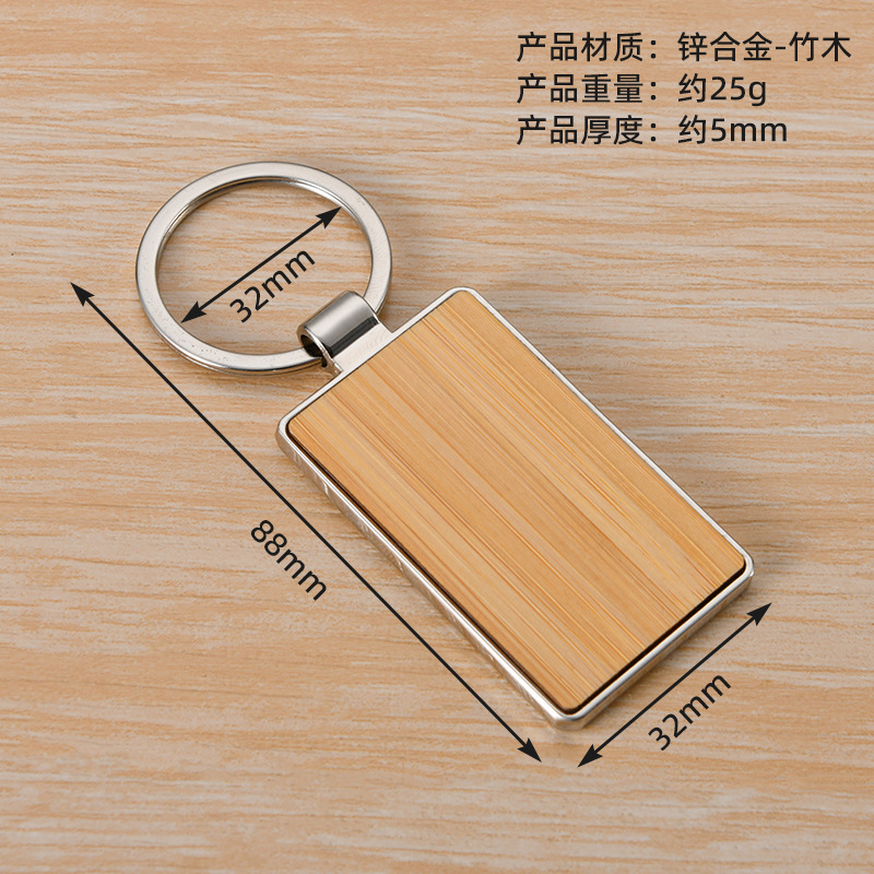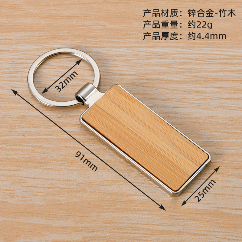 국경 창조적 인 금속 나무 키 체인 레이저 레터링 비즈니스 선물 대나무 너도밤 나무 키 체인