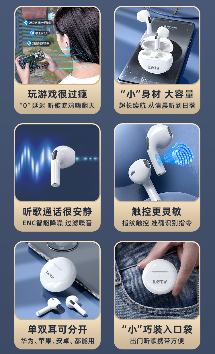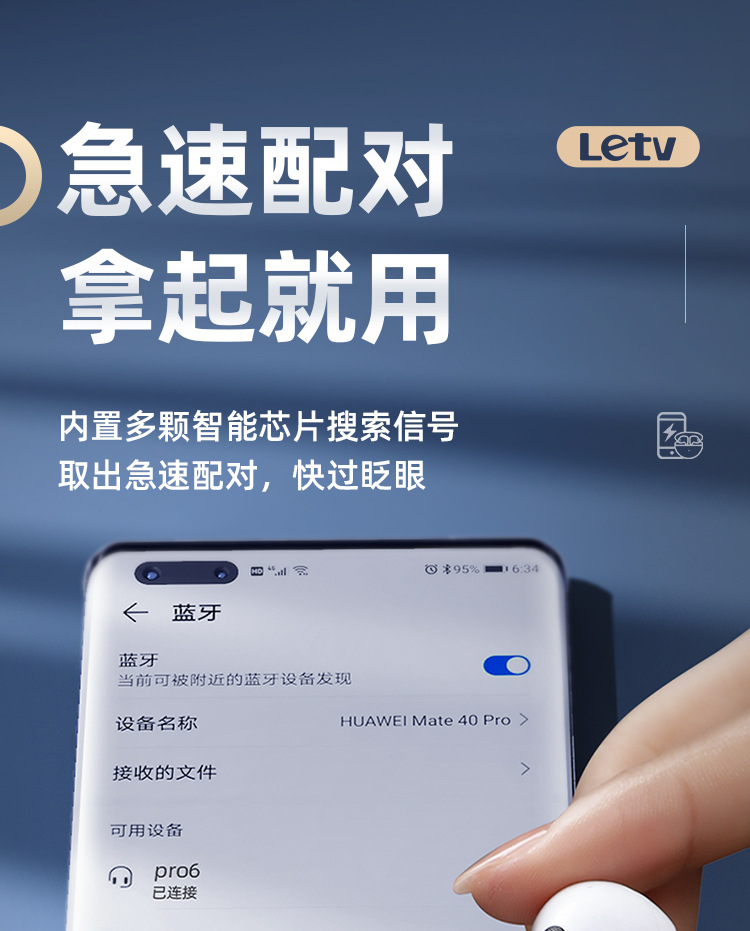 Letv 무선 블루투스 헤드셋 긴 내구성 pro6 소음 감소 반 귀 브랜드 정품 Huaqiang North