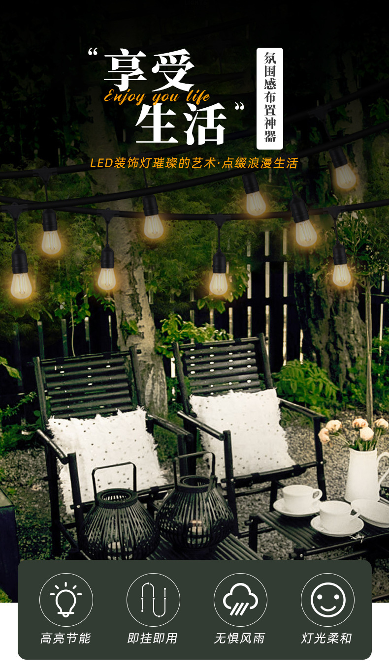 야외 캠핑 교수형 LED 문자열 안뜰 발코니 조명 크리스마스 장식 커튼 방수 E27 분위기 램프