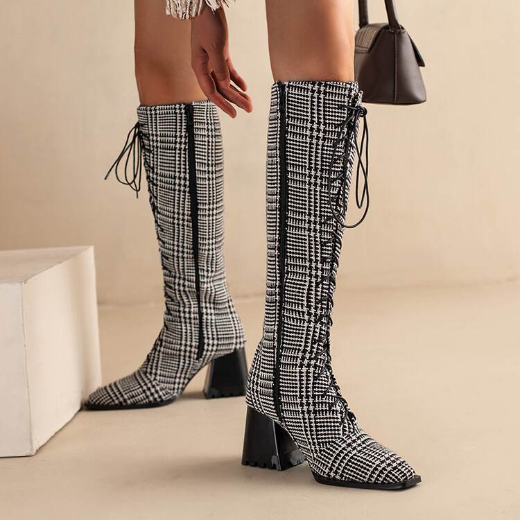2024 대외 무역 플러스 사이즈 레오파드 무늬 부츠 여성 유럽 역은 두꺼운 뒤꿈치를 가리키지만 무릎 부츠 패션 기사 부츠 6212스토어 가기