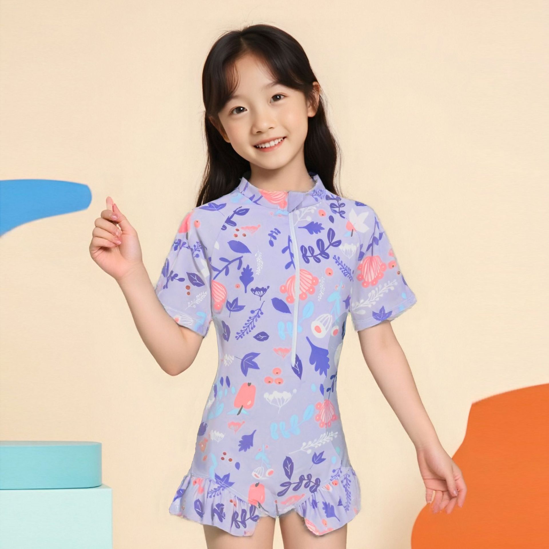 아동용 수영복, 여아용 수영복, 패셔너블한 만화 아동용 스포츠 원피스 새로운 자외선 차단제 속건성 수영복